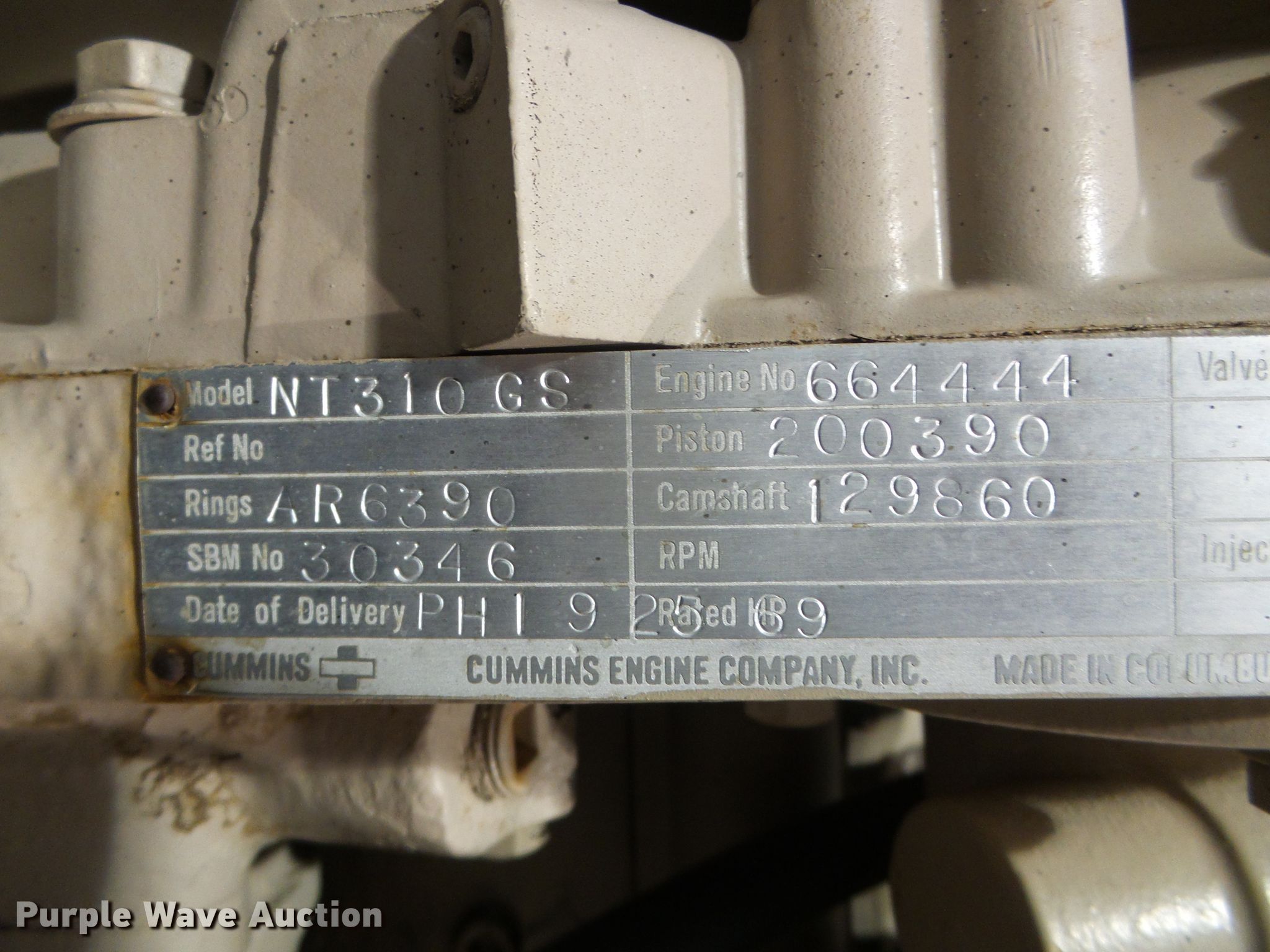 Cummins generator. 150 hours on meter. Engine Cummins NT310GS, Cylinders: 6, Fuel type: Diesel. Operational kVA: 21.9, kW: 175, Phase: Three, Electric start, Fuel tank. Trailer Overall length: 19', Overall width: 63", Ball hitch size: 2 5/16". Tires Tire size: 11L-15. Transfer of ownership documentation will be a bill of sale. City of Cimarron. 113 S Main St. Cimarron, KS 67835