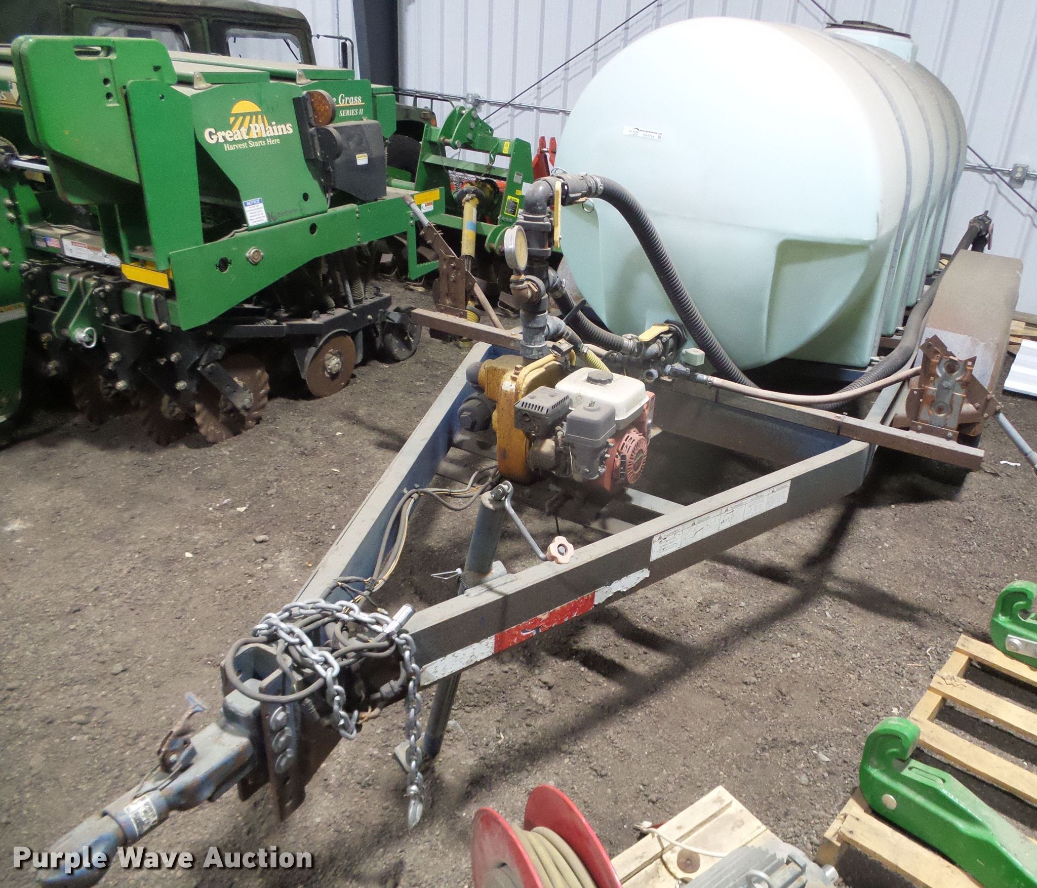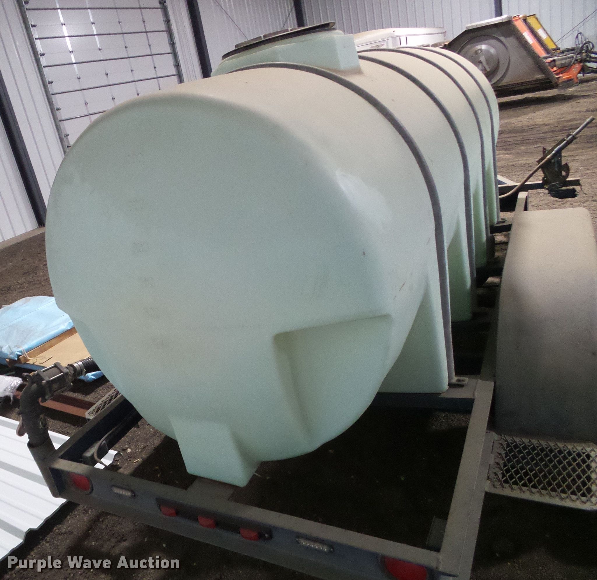 Purple Wave is selling a used Tank Trailer in Kansas. This item is a Schaben 1200 nurse tank trailer with the following: 19'L x 58"W overall, 1,200 gallon poly tank, Honda 5.5 gas engine, Monarch 2" transfer pump, 2" discharge hose, Side spray bar, 2 5/16" ball hitch, Spring suspension, Tandem axle, ST235/85R16 tires