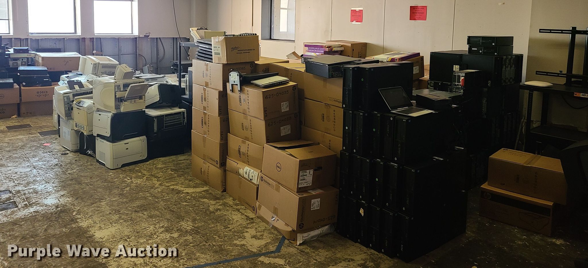 Purple Wave is selling a used Computers in Missouri. This item is a Computer equipment with the following: Monitors, Printers, Laptops, Computers and more, Unknown operating conditions