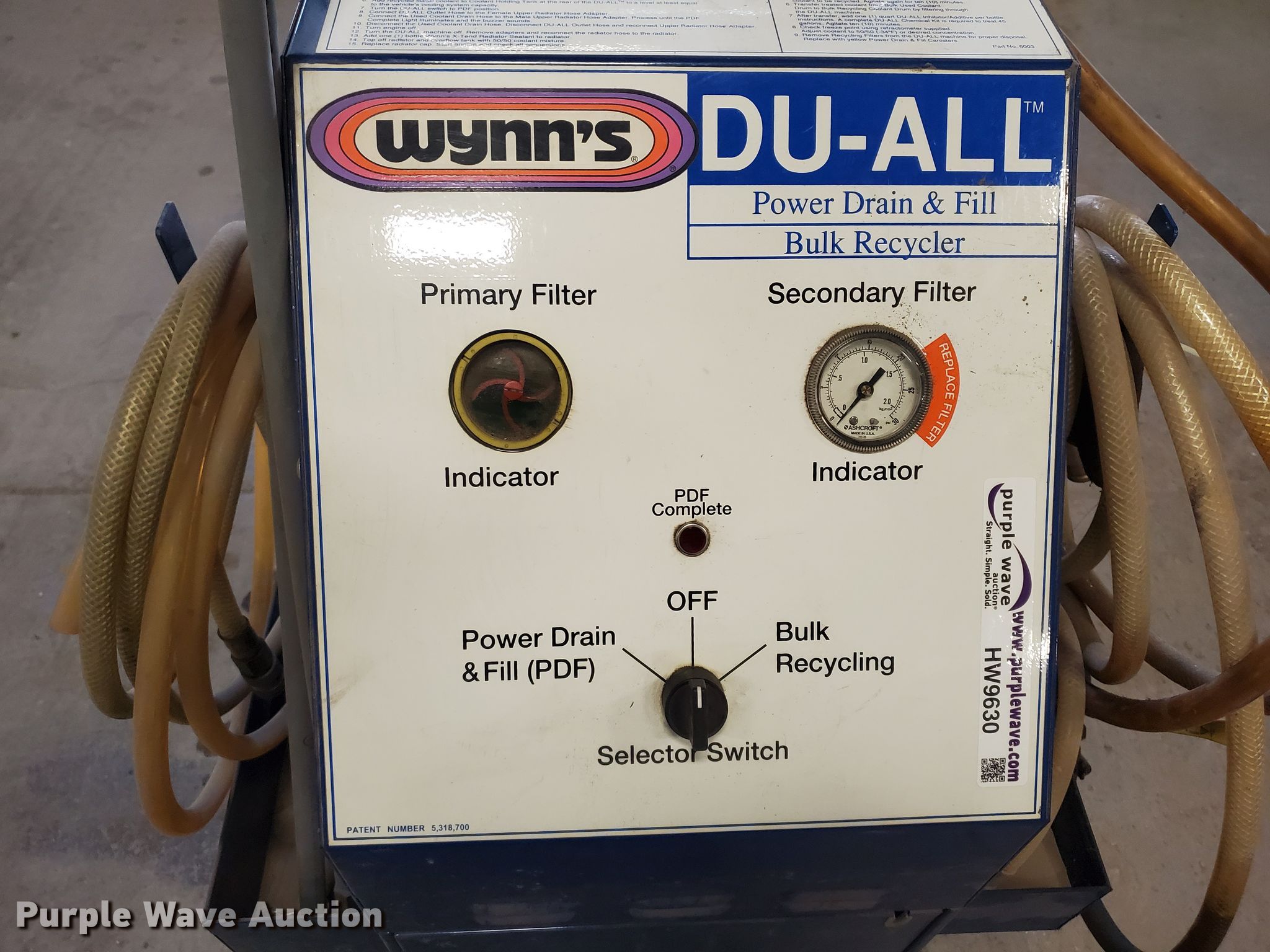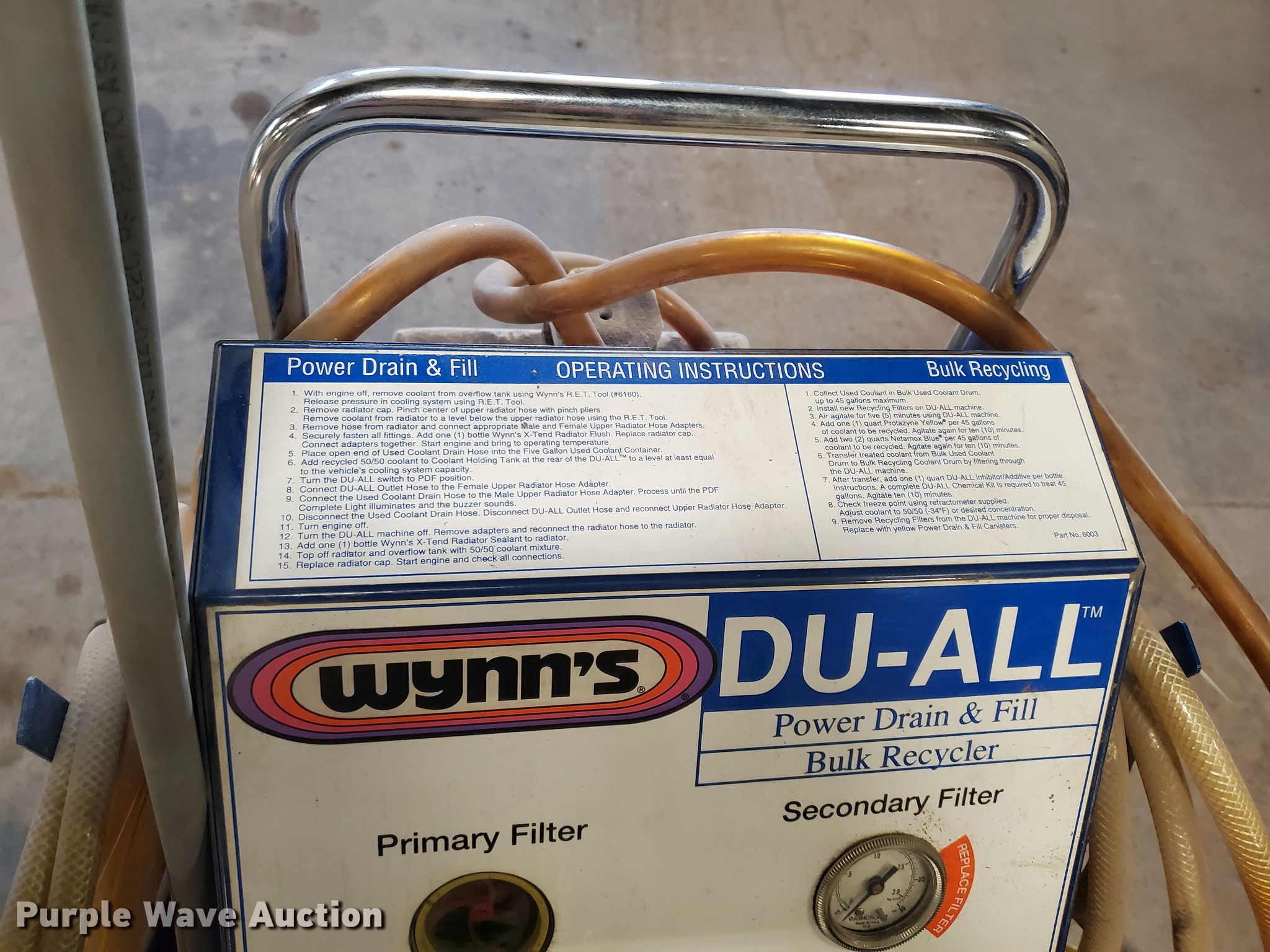 Purple Wave is selling a used Tools in Kansas. This item is a Wynn's Du-All bulk recycler with the following: Power drain and fill, Serial 15504