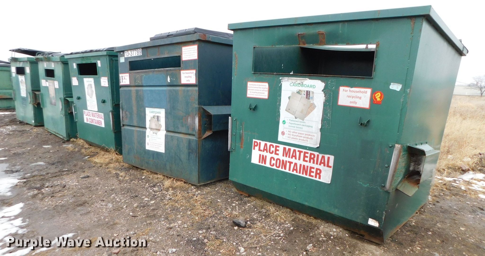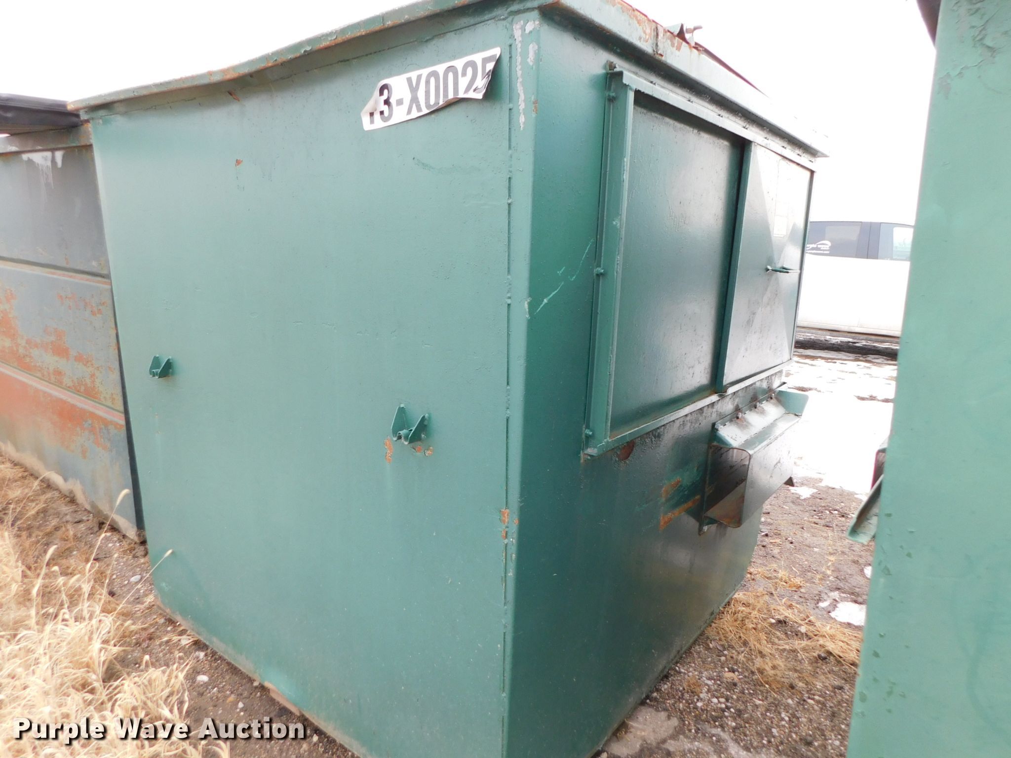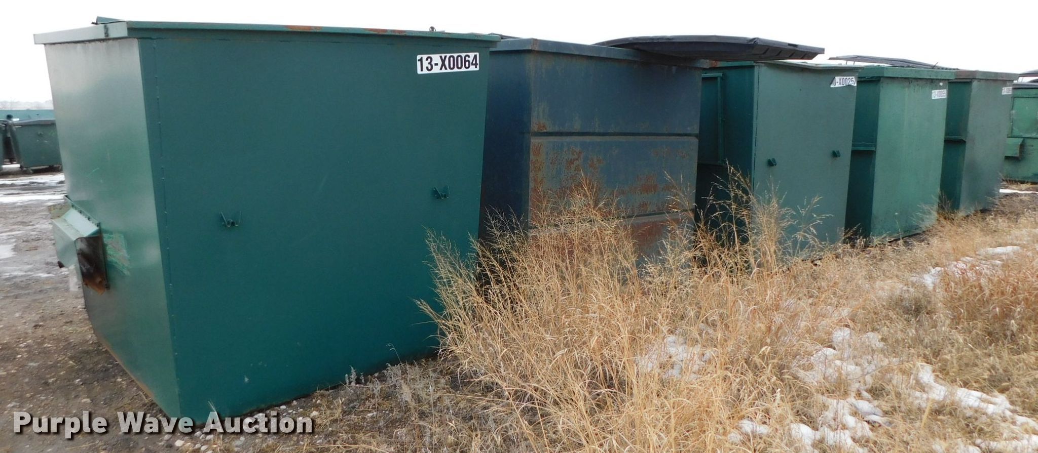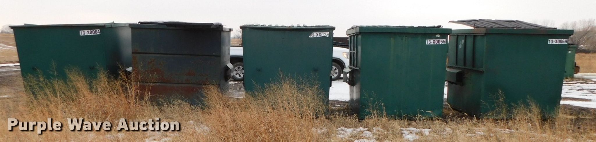 Purple Wave is selling a used Refuse or Compaction Equip. in Nebraska. This item is a (5) front load dumpsters with the following: Eight yd. capacity, Various sizes, Lot# 27, Unit# 13-X0069, 13-X0055, 13-X0025, 13-37789, 13-X0064