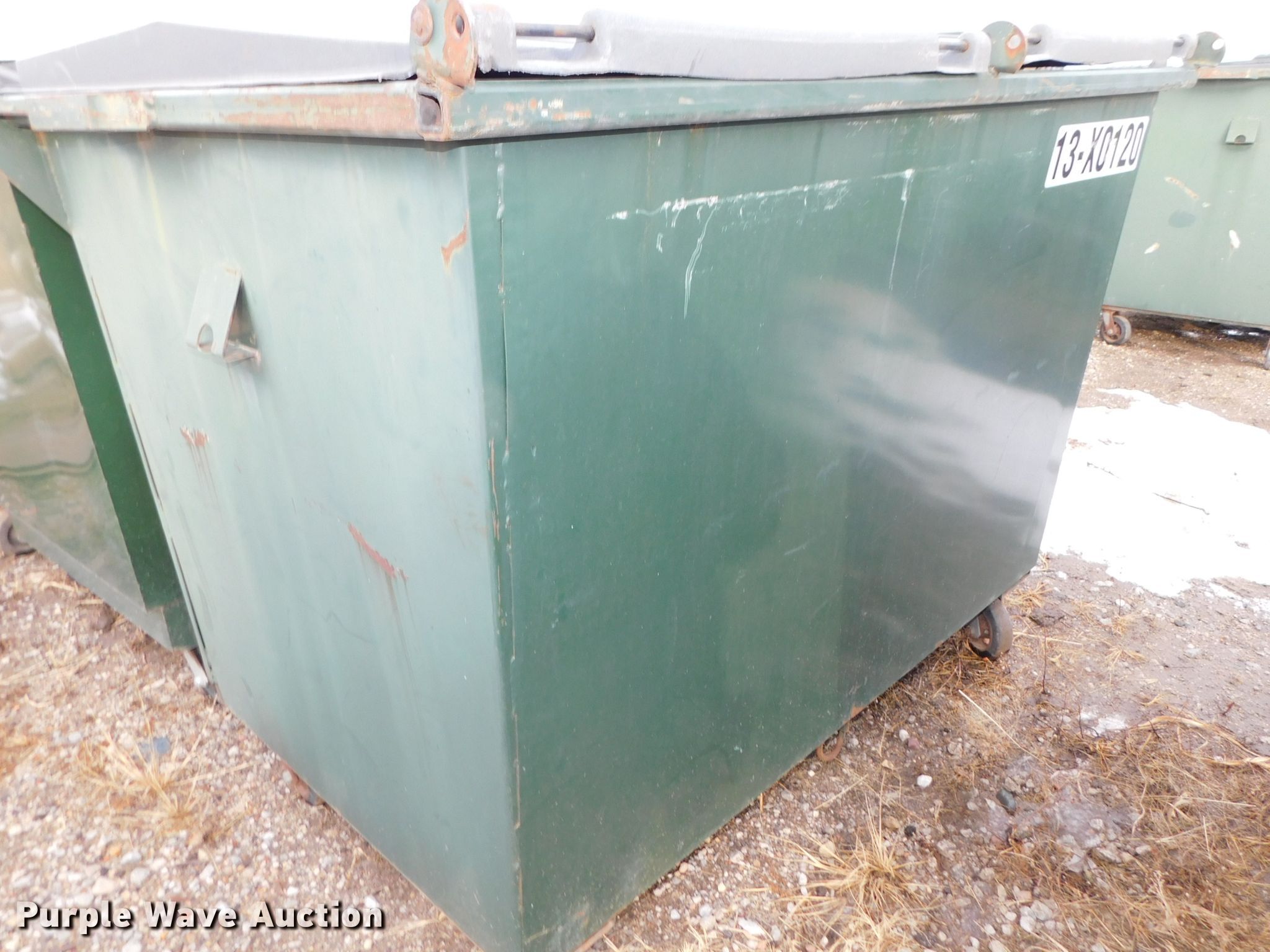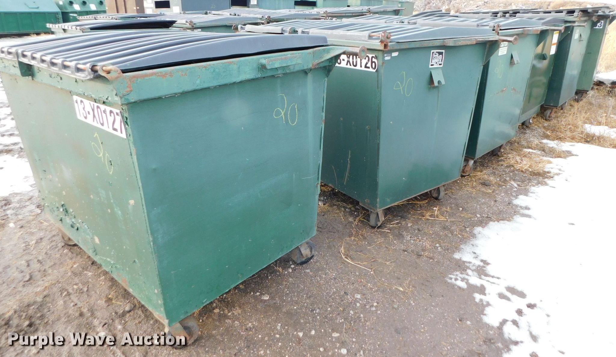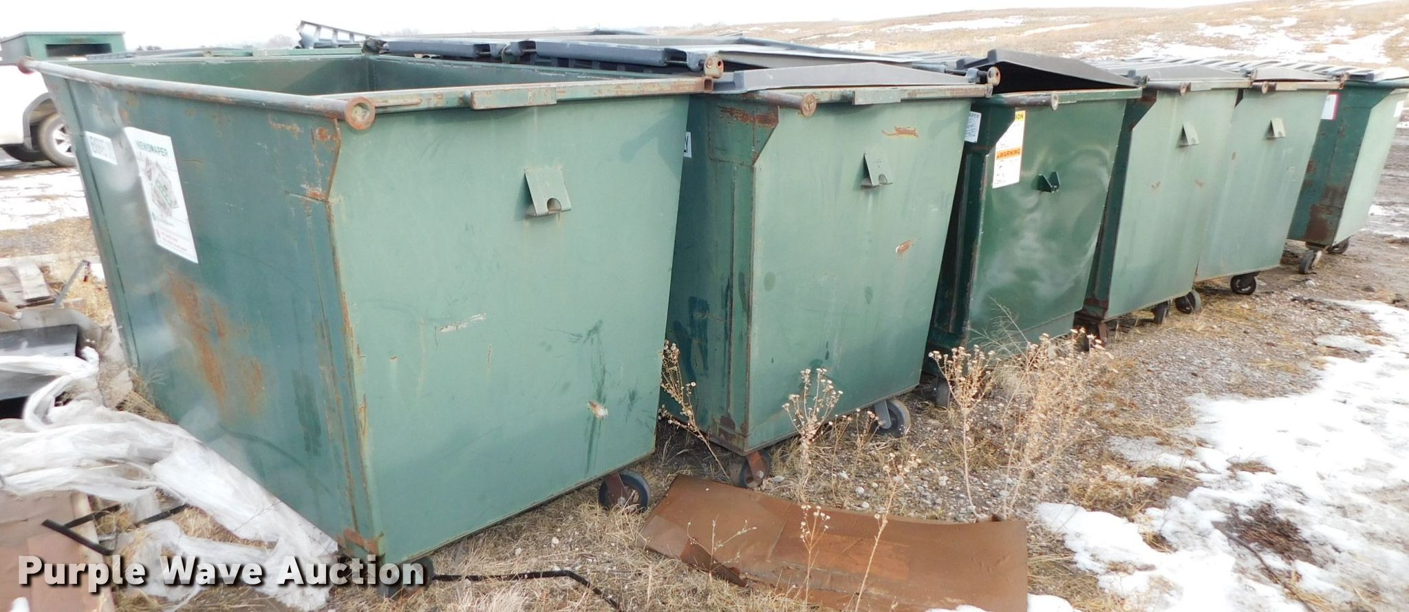 Purple Wave is selling a used Refuse or Compaction Equip. in Nebraska. This item is a (6) rear load dumpsters with the following: Two yd. capacity, Casters, Various sizes, Lot# 20, Unit# 13-X0127, 13-X0126, 13-X0120, 13-37821, 13-X0119, 13-X0003