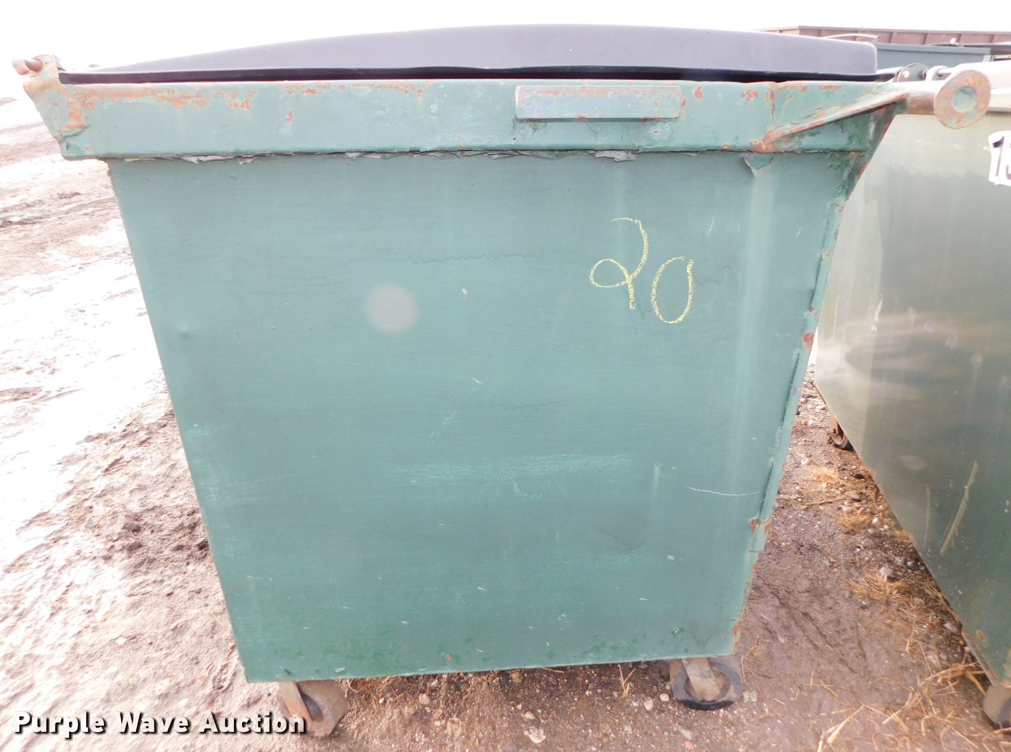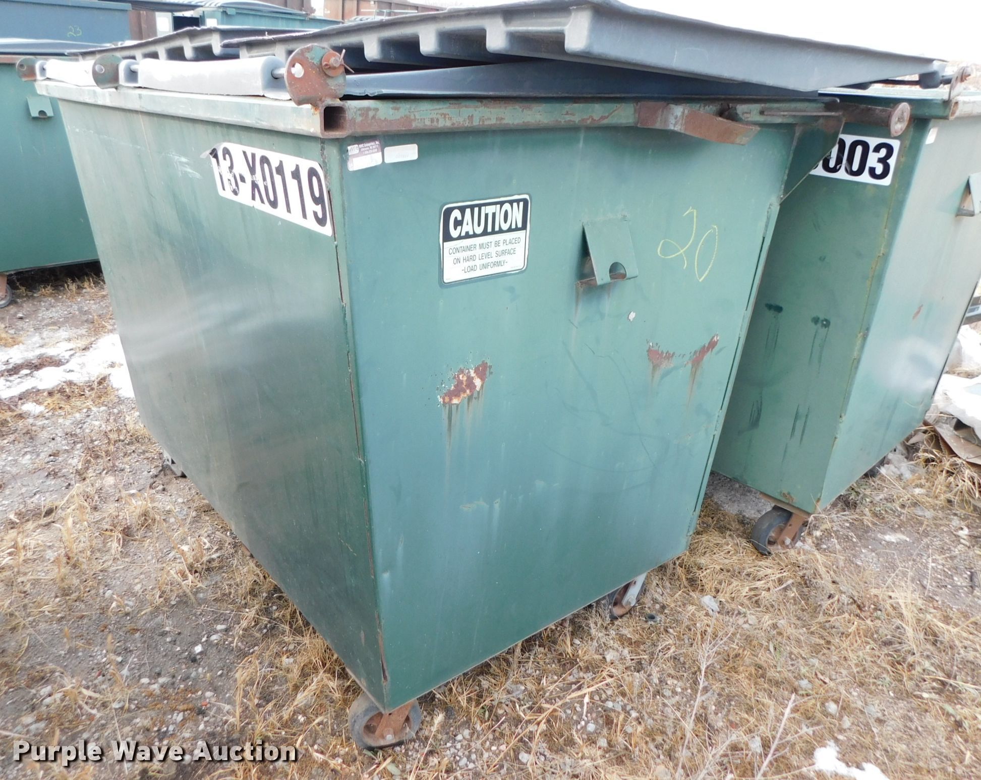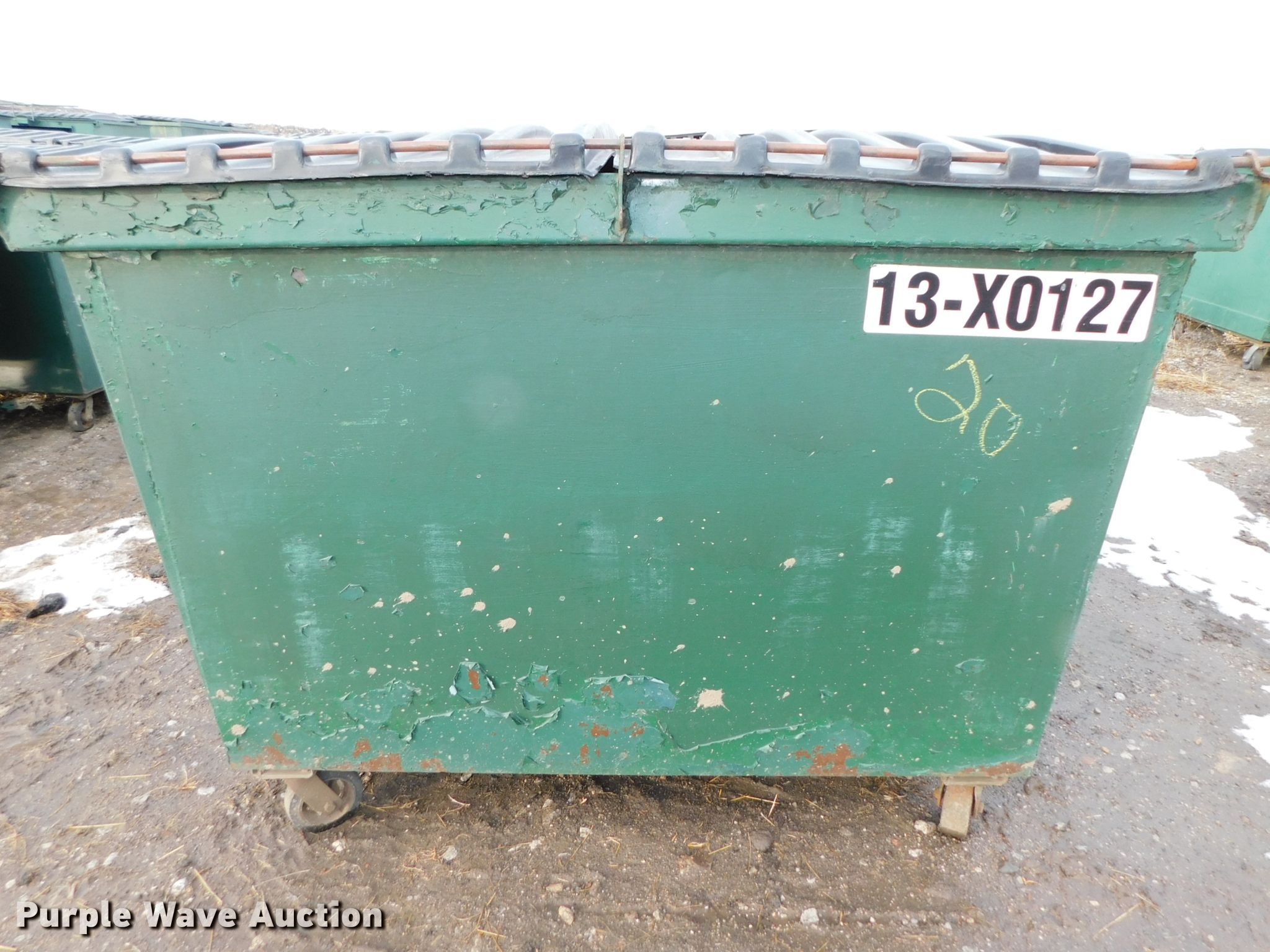 Purple Wave is selling a used Refuse or Compaction Equip. in Nebraska. This item is a (6) rear load dumpsters with the following: Two yd. capacity, Casters, Various sizes, Lot# 20, Unit# 13-X0127, 13-X0126, 13-X0120, 13-37821, 13-X0119, 13-X0003