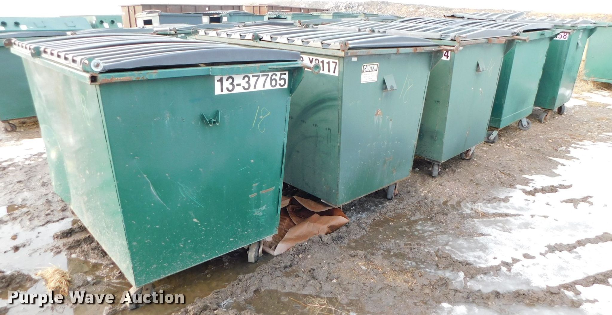 Purple Wave is selling a used Refuse or Compaction Equip. in Nebraska. This item is a (5) rear load dumpsters with the following: Two yd. capacity, Casters, Various sizes, Lot# 18, Unit# 13-37765, 13-X0117, 13-X0114, 13-X0108, 13-X0058
