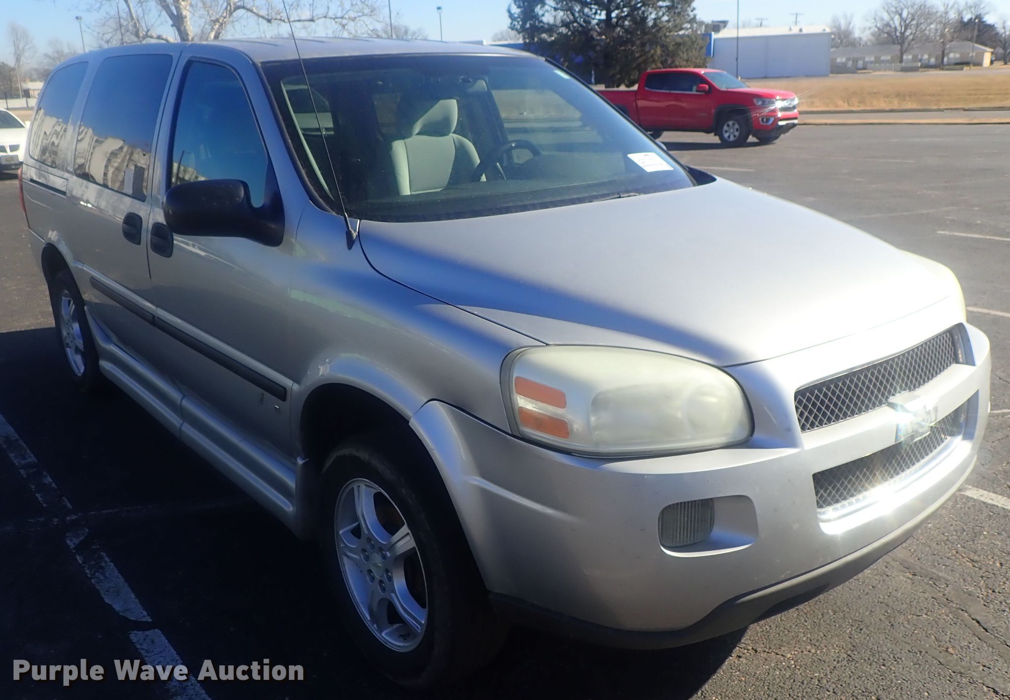 2008 Chevrolet Uplander handicap accessible van. 259,859 miles on odometer. Engine Displacement: 3.9L V6 DOHC 24V, Cylinders: 6, Fuel type: Gas. Transmission Automatic. Interior AC, Heat, Power windows, Power locks, Cruise control. Tires Size: 225/60R17. Notes Wheel chair ramp. Kansas title. Title distribution may be delayed up to 14 days from verification of funds. 1GBDV13118D171796. Wichita, KS 67204