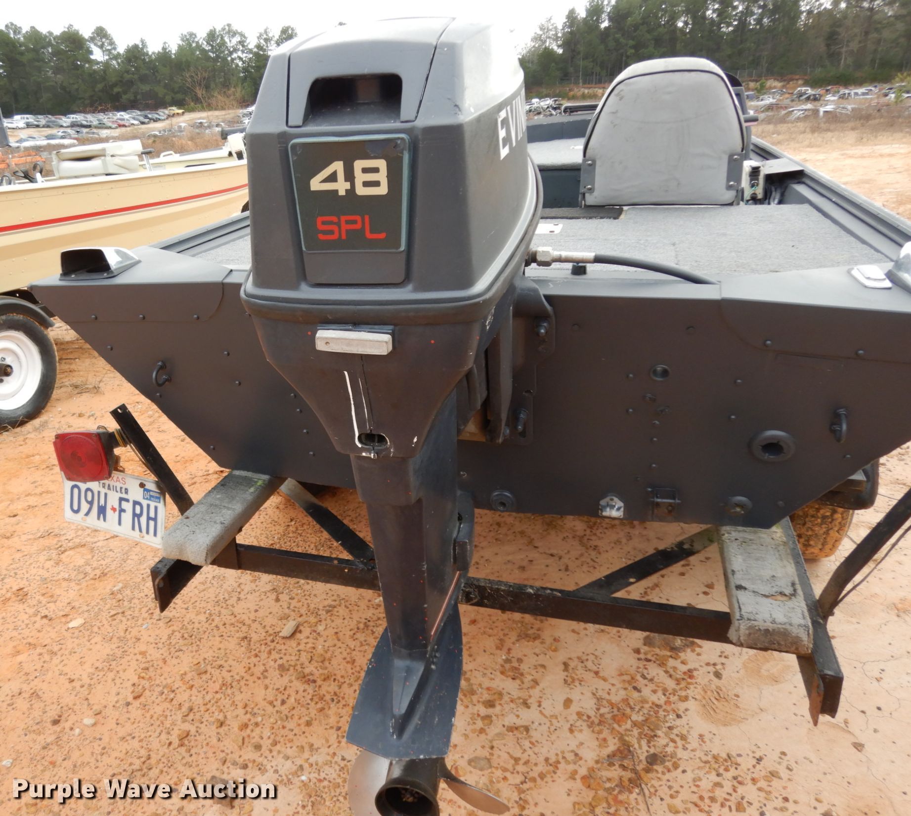 1990 Alumacraft Angler boat. Length: 16', Hull ID: ACBU1785C090. Engine Engine type: Outboard, Evinrude 48 SPL, Serial: G02526052, Cylinders: 2, Fuel type: Gas, HP: 48, Outdrive Propellor: Stainless steel. Operators station Capacity Person: 3, 350 lbs. Trailer Overall length: 19', Overall width: 74", Ball hitch size: 2", Axles: Single, Tire size: 175/80D13. Texas marinecraft title. Seller is a Texas licensed motor vehicle dealer. The buyer may be required to pay sales tax and/or registration fees to the dealer prior to taking possession. Title will be assigned and distributed by the dealer. Please contact the seller for distribution questions. Transfer of ownership documentation for the trailer will be a bill of sale which will be assigned and distributed by the seller. Kicking Boots. 11315 TX-64 W. Tyler, TX 75704