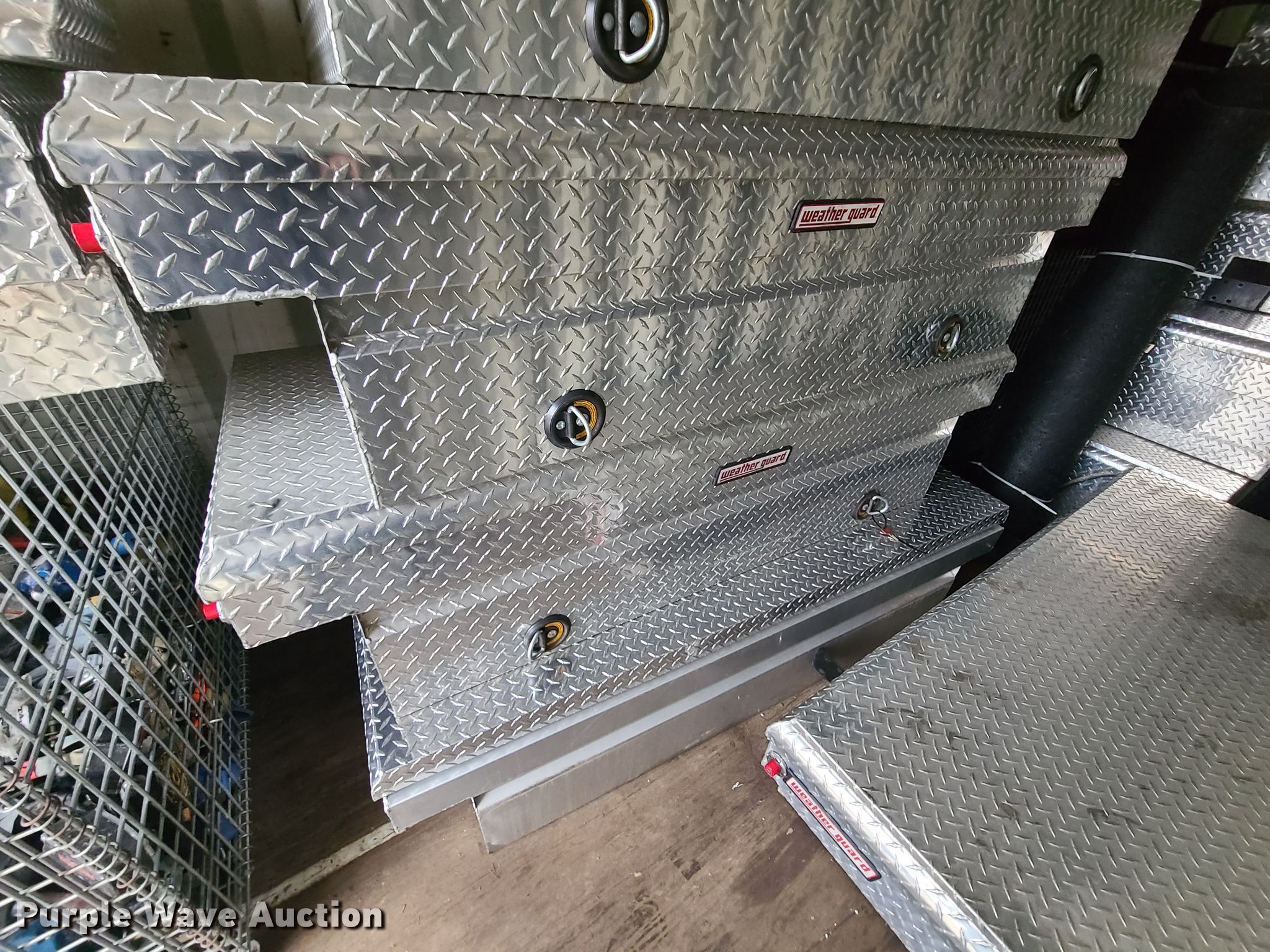 Automotive accessories. (13) Weather Guard tool boxes, (3) truck bed covers. MMC Contractors. 13800 Wyandotte St. Kansas City, MO 64145