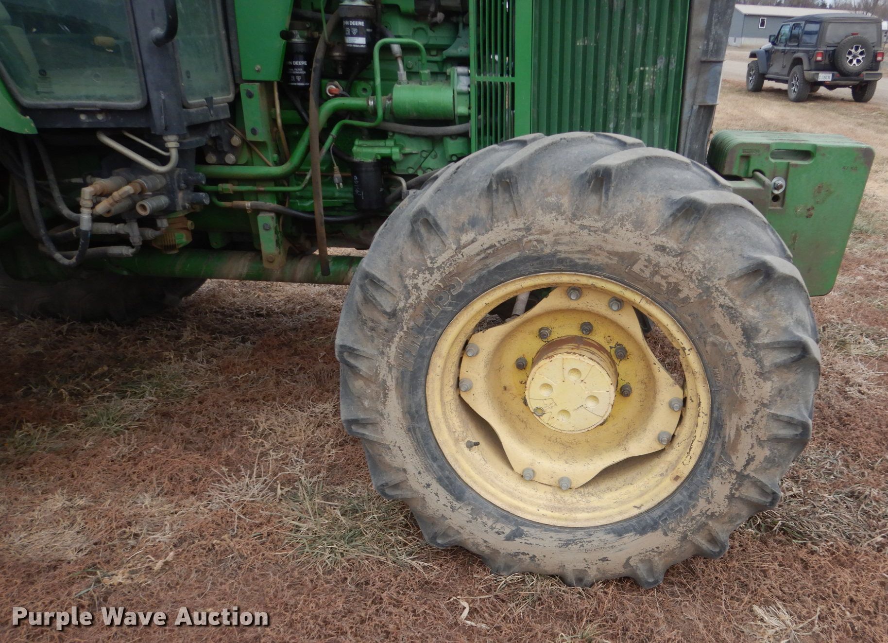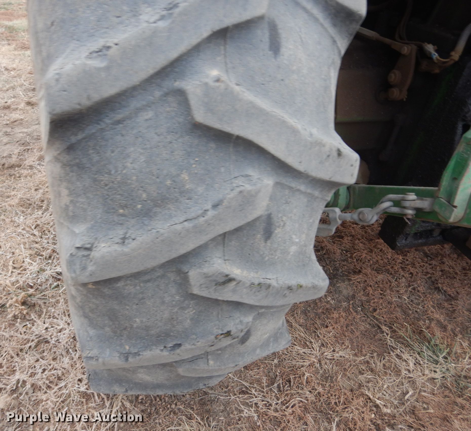 2007 John Deere 6403 MFWD tractor. 4,009 hours on meter, Serial: P06403X006149. Engine Displacement: 4.5L, Cylinders: 4, Fuel type: Diesel. Transmission Synchro, 9F - 3R. Operators station AC, Heat. Operational PTO: 1000, Three point, Seven pin outlet, Hydraulic remote sets Rear: 3, Loader controls: Joystick. Tires Front: 13.6-24, Rear: 18.4-34. Notes Suitcase weights not included. Hutterian Colony. 35271 270th St. Platte, SD 57369