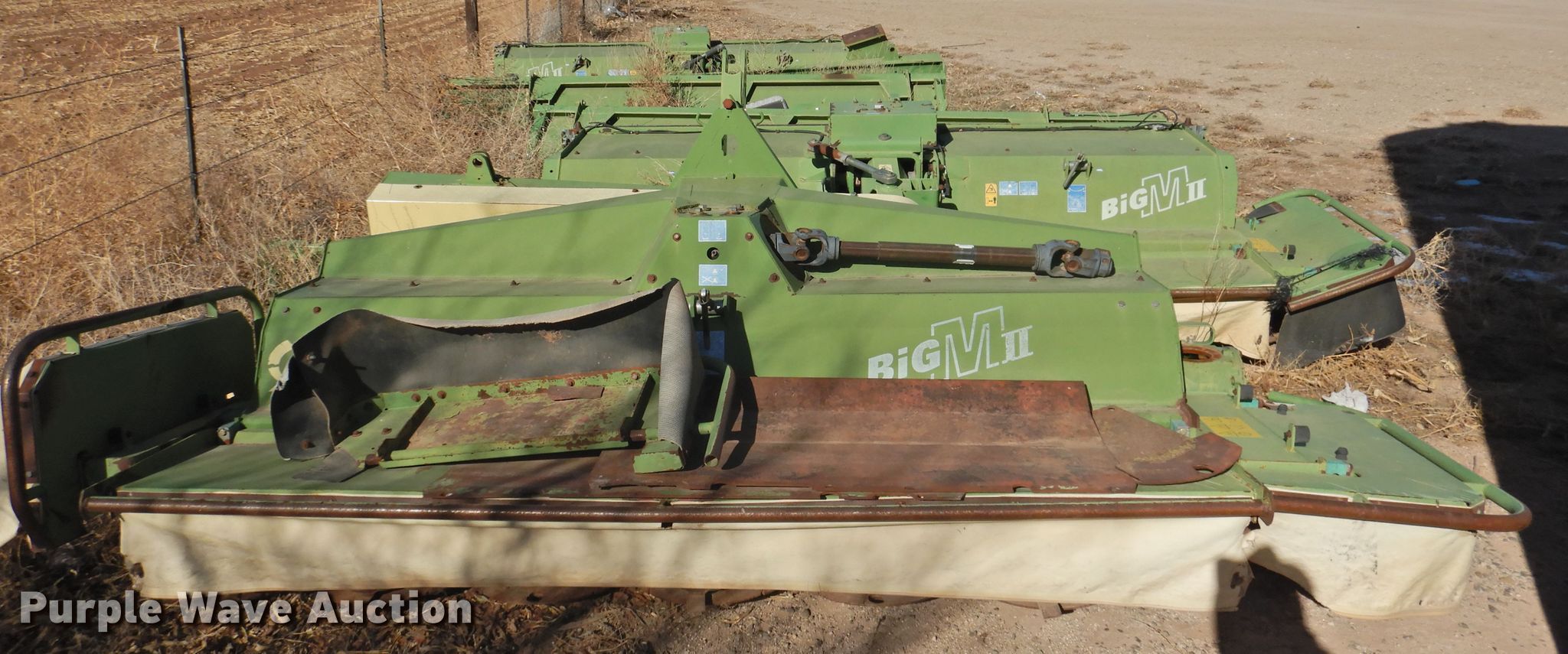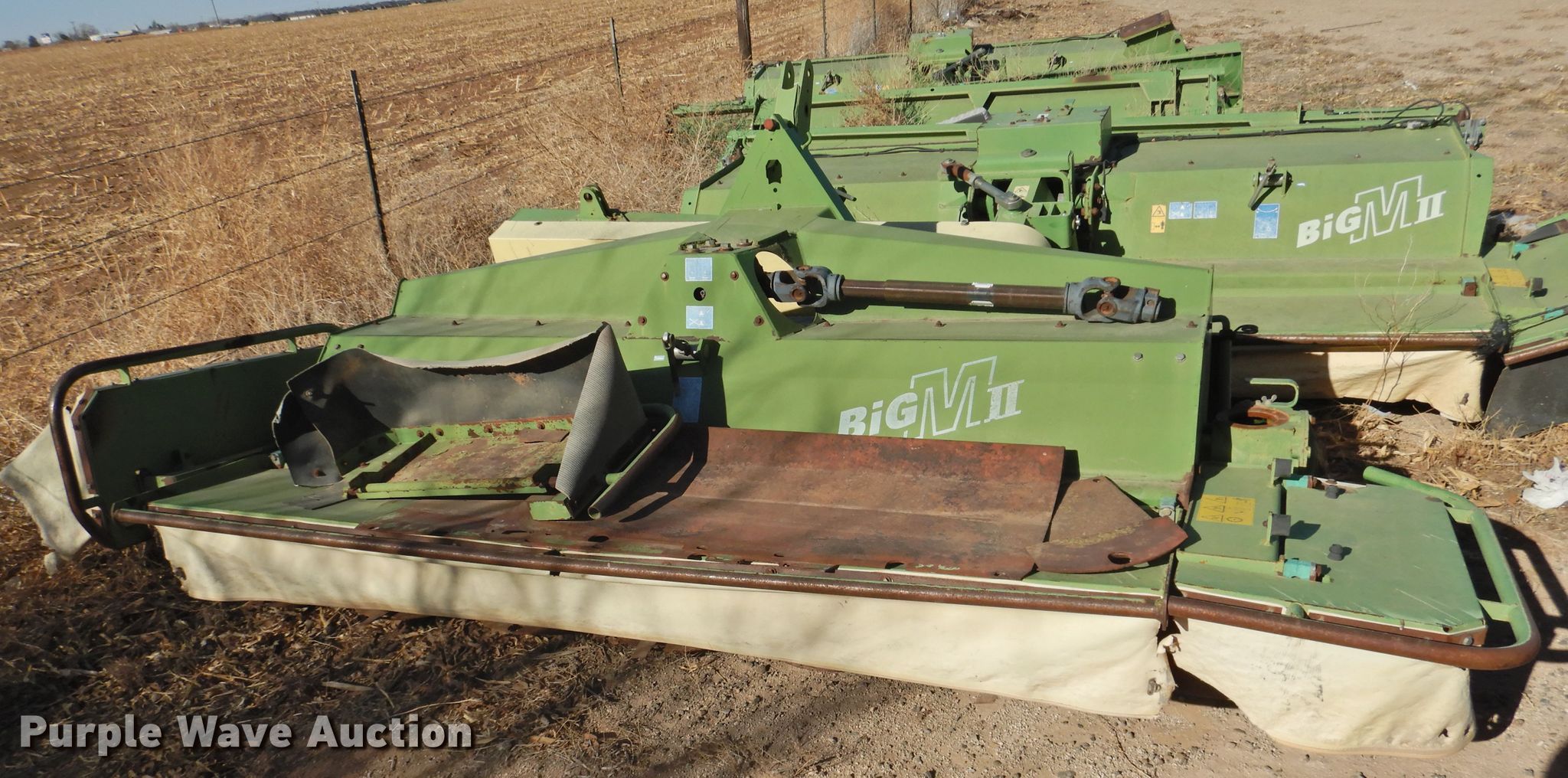 Purple Wave is selling a used Mower, Cutter, Shredder in Texas. This item is a (3) Krone Big M II flail mowers with the following: (2) mergers