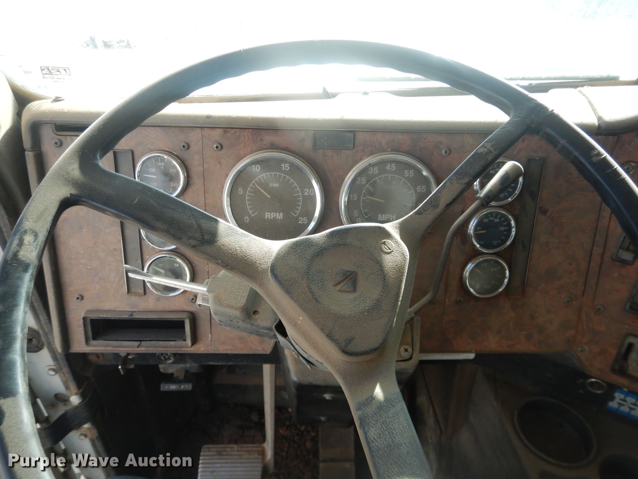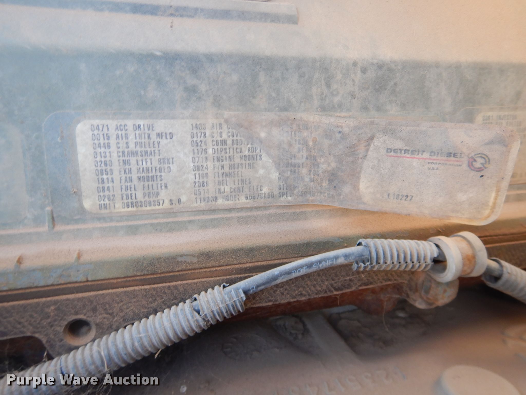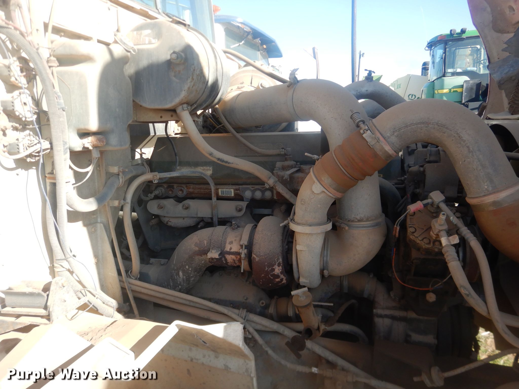 1997 International 9400 semi truck. 698,268 miles on odometer. Engine Detroit Diesel Series 60, Displacement: 12.7L, Cylinders: 6, Fuel type: Diesel. Transmission Manual, Speed: 10. Chassis Axles: Tandem, Differential lock: Inter-axle, Suspension: Air Dump valves, Brakes: Air, Wet kit. Interior AC, Heat, Heated mirrors, Cruise control, Sleeper Sleeper length: 37", Beds: Single, Rear climate control. Operational Fifth wheel type: Air operated, Sliding, Fuel tank: Dual. Tires Front: 11R24.5, Rear: 15.5/80R20. Notes Non-operational unit. Texas title. 2HSFHAMR0VC019768. McCracken Farm Services Inc.. 200 Walnut Rd. Hereford, TX 79045