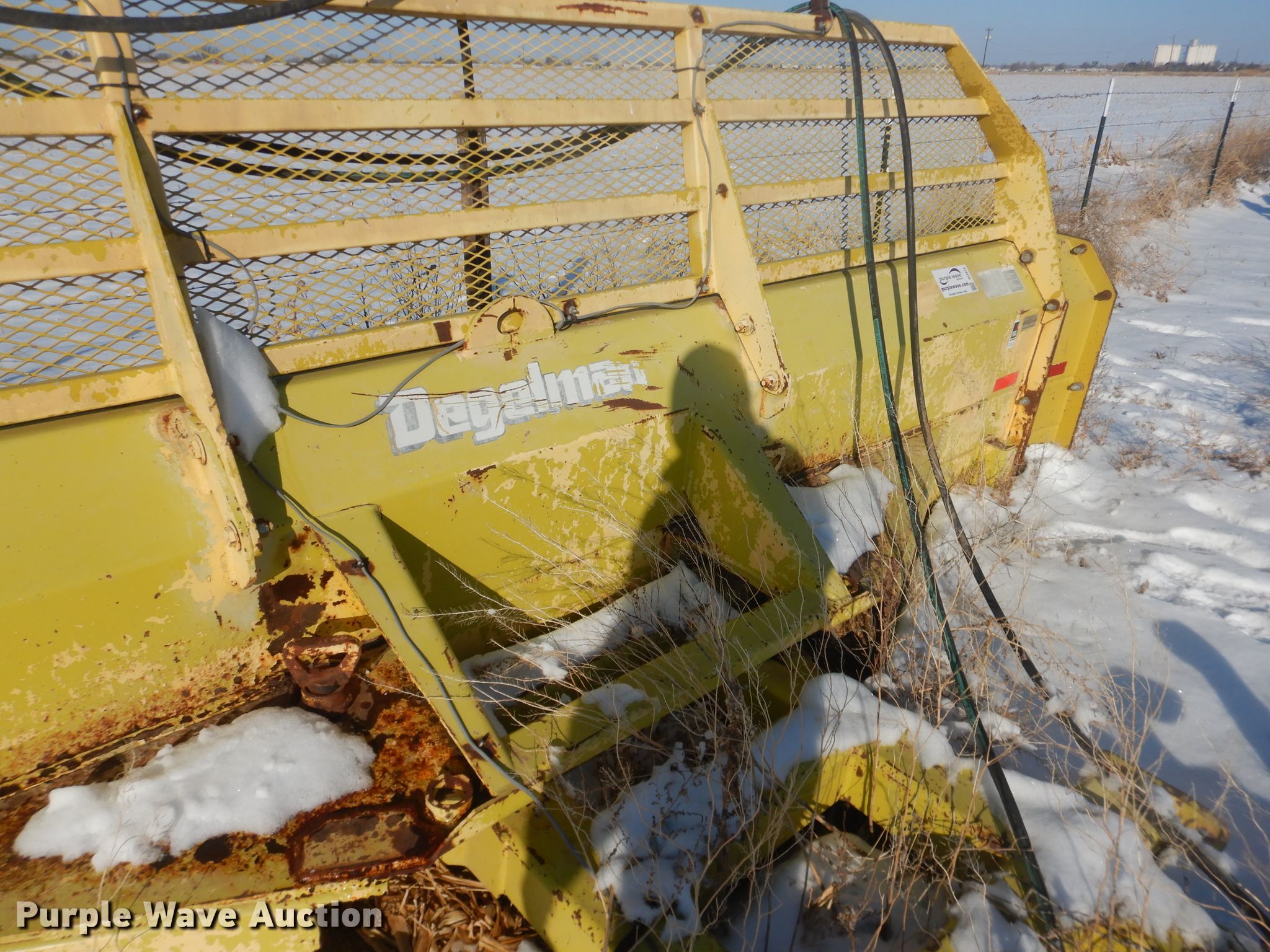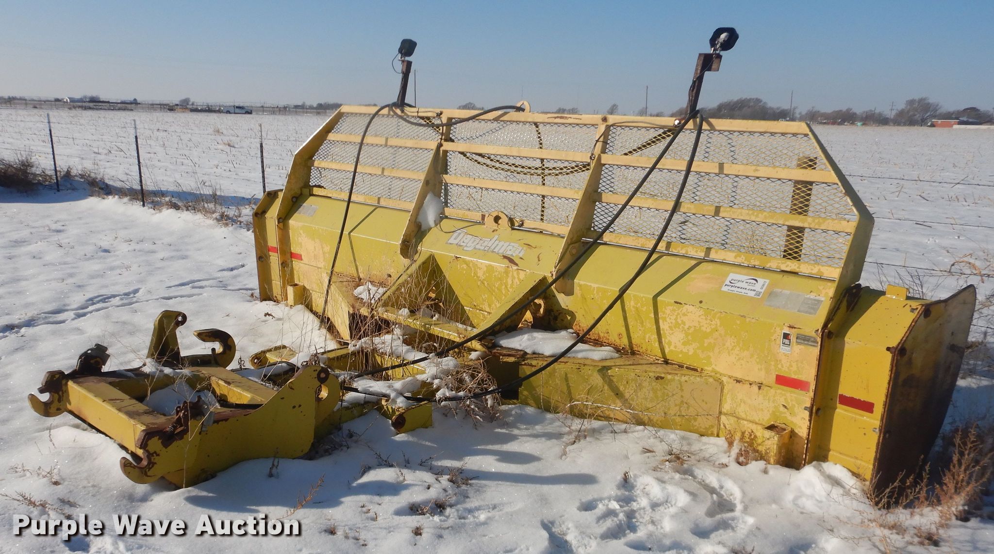 Purple Wave is selling a used Ag Tractor Loader or Attach. in Texas. This item is a Degelman 14-1 silage/dozer blade with the following: 14'W x 36"H, 12"W side extensions, 26"H top extension, Fits John Deere 9400 tractors, Serial 20630
