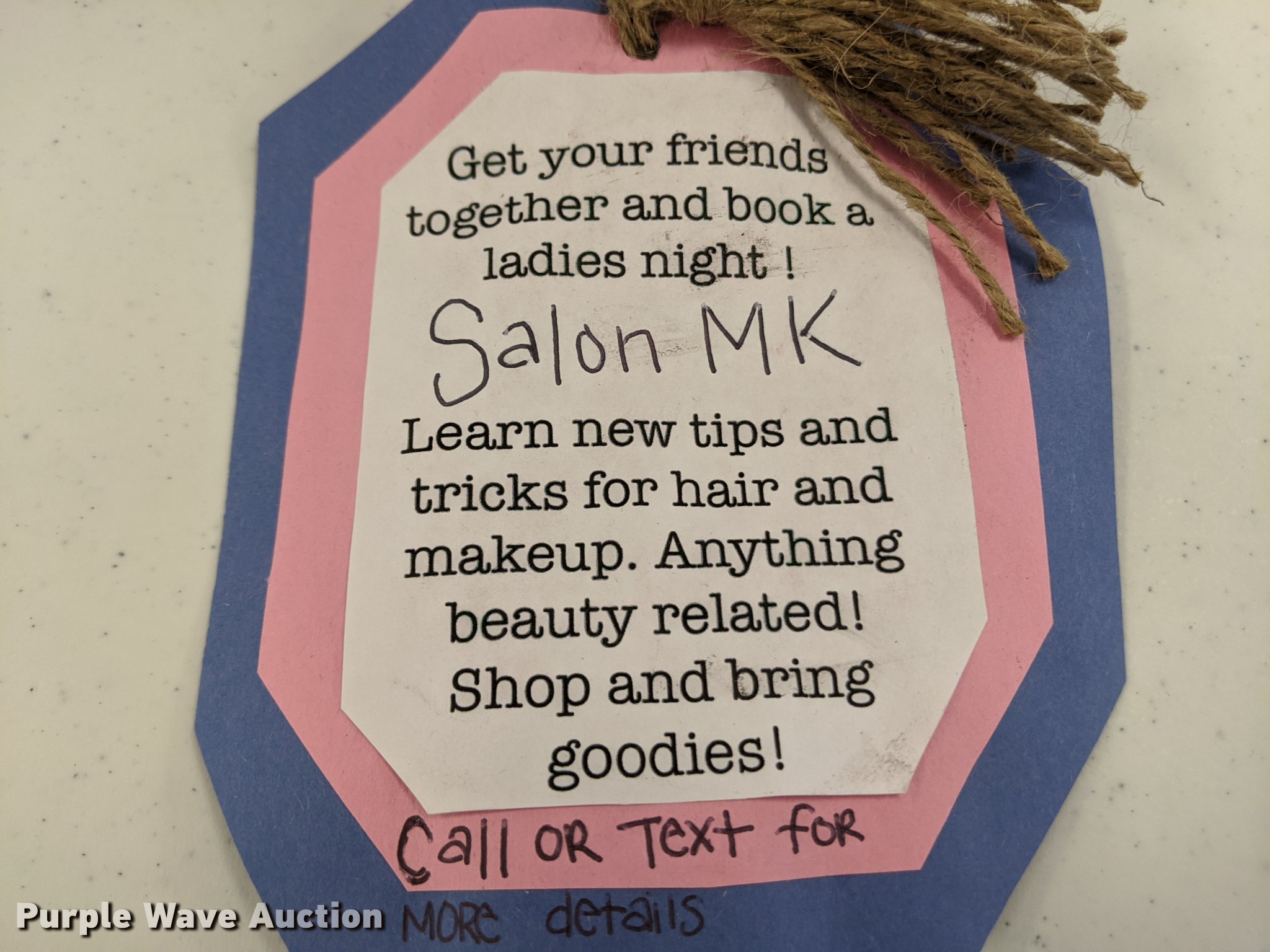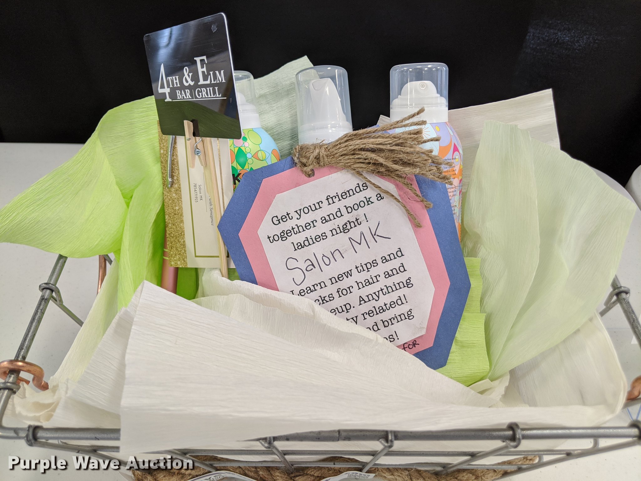 Purple Wave is selling a used All Other Household Items in Kansas. This item is a Ladies Night with the following: Get 10-15 friends together to pamper yourself at Salon MK while sipping on wine and enjoying a gourmet charcuterie board and end with a night cap and 4th and Elm with a $100 gift certificate