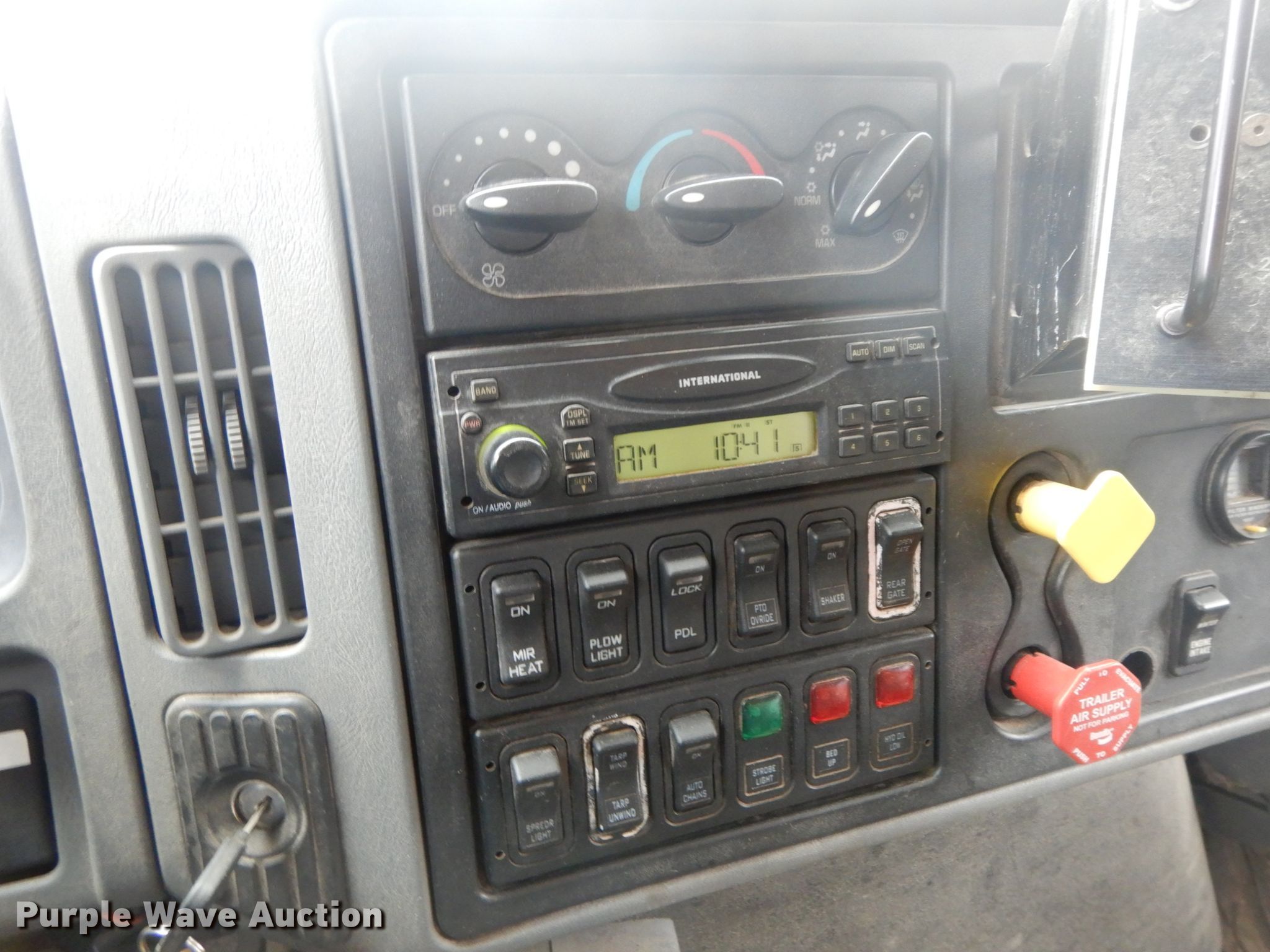 2006 International 7400 dump truck. 205,759 miles on odometer, Engine hours: 11,550, MODOT ID: 7524. Engine Displacement: 9.3L L6, Cylinders: 6, Fuel type: Diesel. Transmission Automatic. Chassis Axles: Tandem, Suspension: Walking beam, Brakes: Air, Front mount PTO, GVWR: 25,402 lbs, Wheelbase: 190". Interior AC, Heat, Power windows, Cruise control. Operational Dump bed 13' L x 96" W, Side height: 36", Bed type: Steel, Roll tarp, Ram: Single , End gate: Air operated, Spreader, Plow Width: 132". Tires Front: 315/80R22.5, Rear: 11R22.5. Notes Dash warning indicator: ABS. Missouri title. 1HTWHAZTX6J204235. Missouri Department of Transportation (MODOT). 52 Business US-54. Eldon, MO 65026