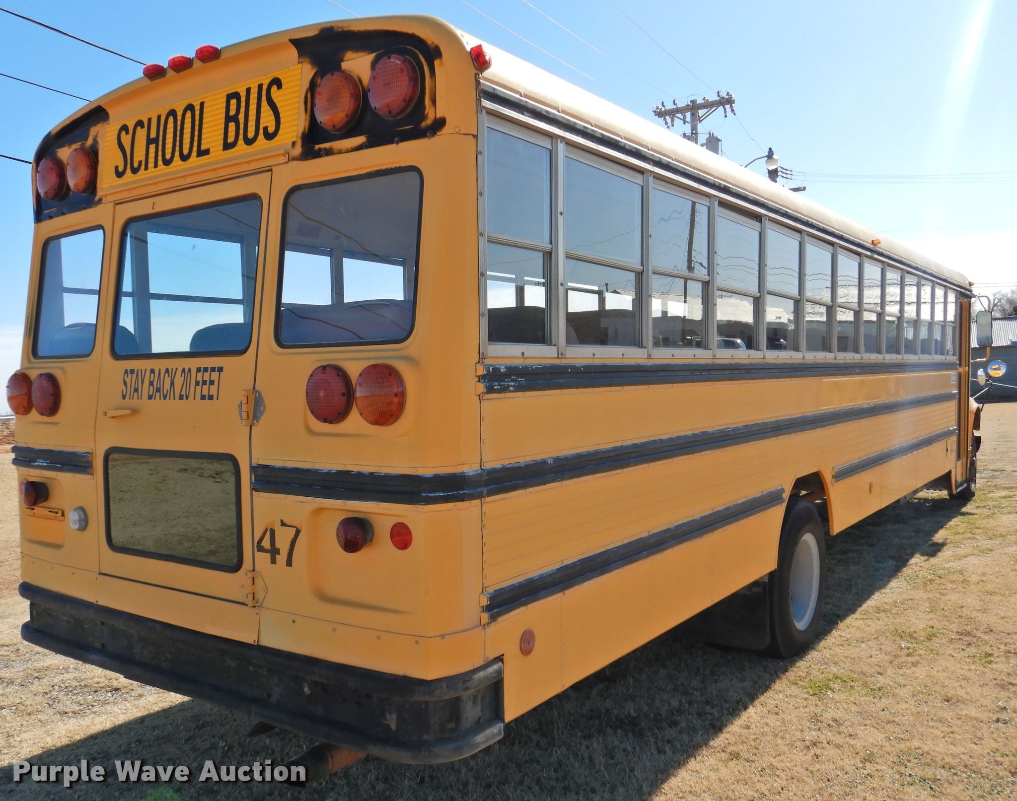Purple Wave is selling a used Bus in Oklahoma. This item is a 1992 International 3800 school bus with the following: 98,839 miles on odometer, Unit #: 47