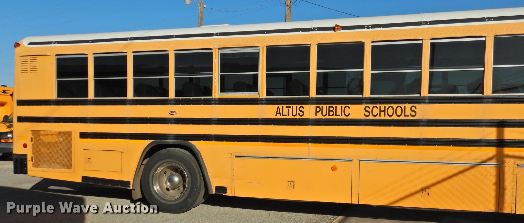 2005 Blue Bird All American school bus. 157,173 miles on odometer, Unit #: 44. Engine Caterpillar C7, Serial: KAL6300, Displacement: 7.2L L6, Cylinders: 6, Fuel type: Diesel, HP: 275. Transmission Allison , Automatic. Chassis Axles: Single, Suspension: Air, Brakes: Air, GVWR: 36,200 lbs. Interior AC, Heat, Heated mirrors, Cruise control, Auxiliary controls, Electric passenger sliding door, Passengers: 46, Seats Adult seats: 23. Tires Size: 11R22.5. Title distribution may be delayed up to 14 days from verification of funds. 1BABNBKA45F228397. Altus Public Schools. 400 N Park Ln. Altus, OK 73521