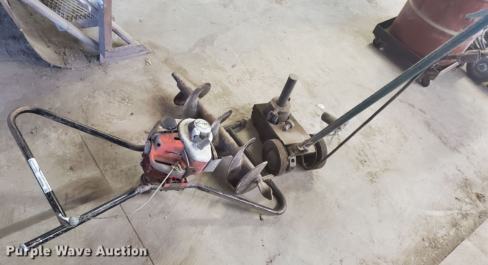 Purple Wave is selling a used Tools in Kansas. This item is a Stihl post hole auger with the following: Gas engine, 10" diameter bit, Floor jack, Unknown operating condition