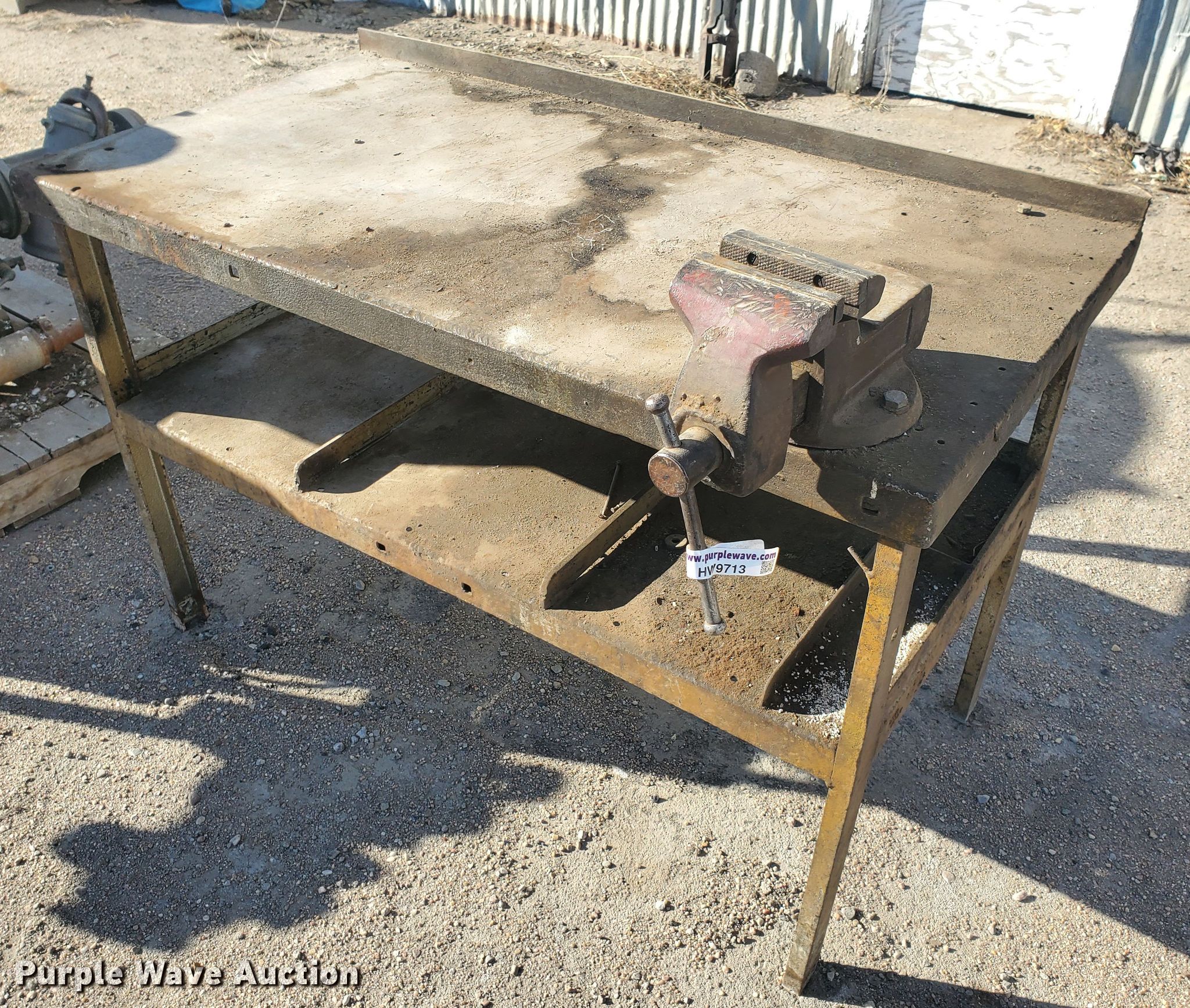 Purple Wave is selling a used Tools in Kansas. This item is a Work bench with the following: 50"L x 26"W, Vise