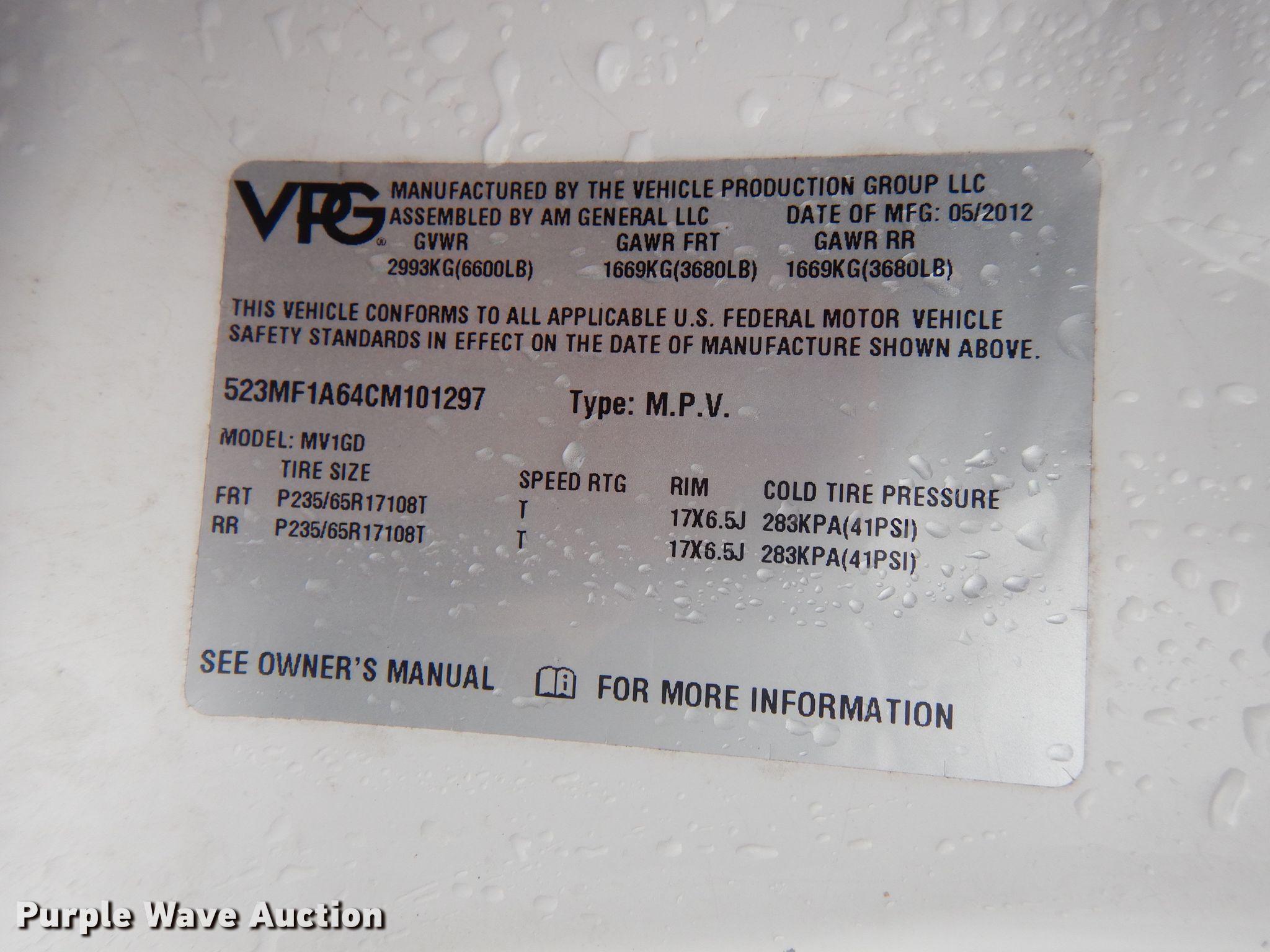 Purple Wave is selling a used Compact Pickup or Van in Oklahoma. This item is a 2012 VPG MV-1 handicap accessible van with the following: 186,142 miles on odometer, Unit #: 466