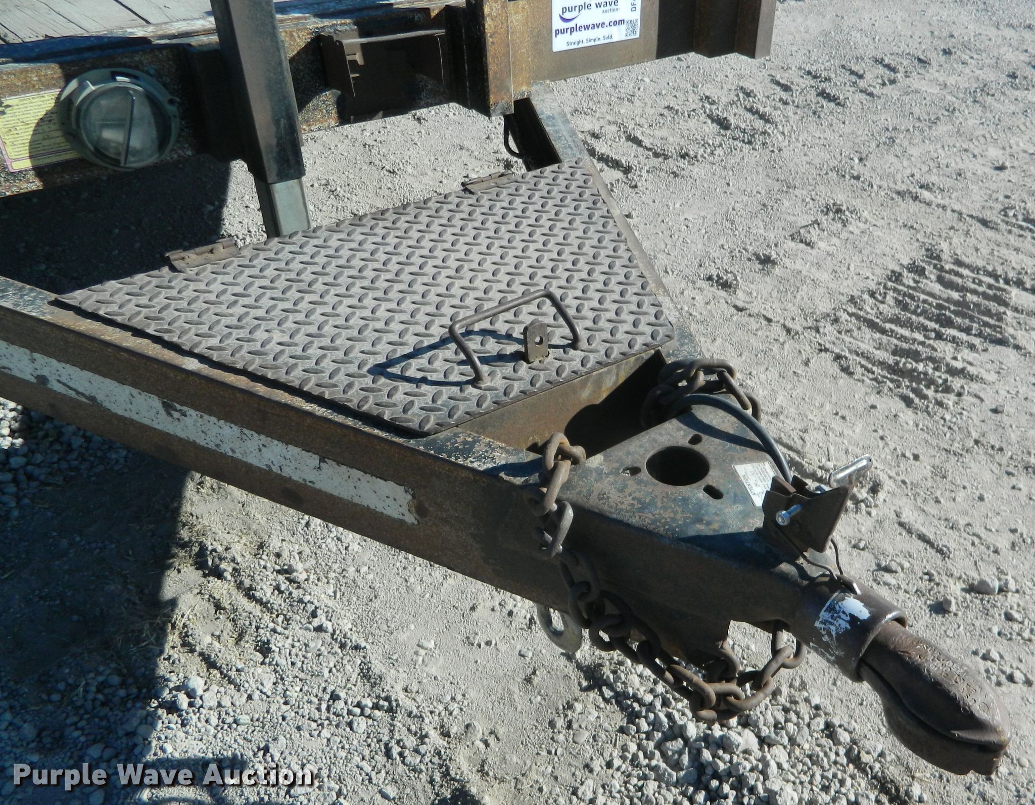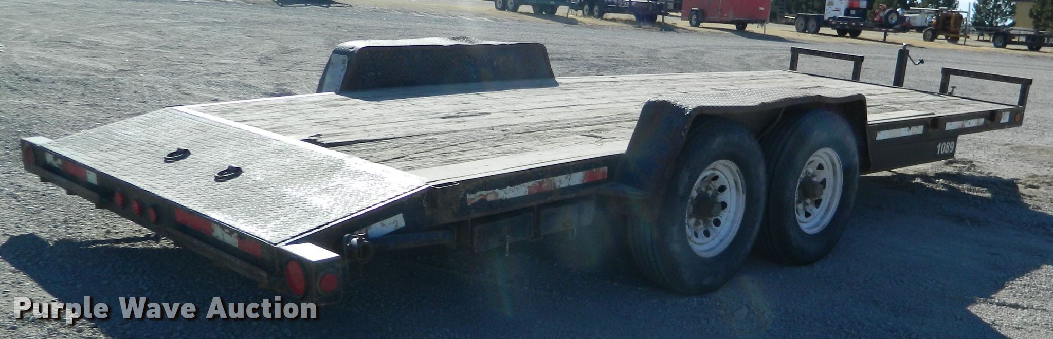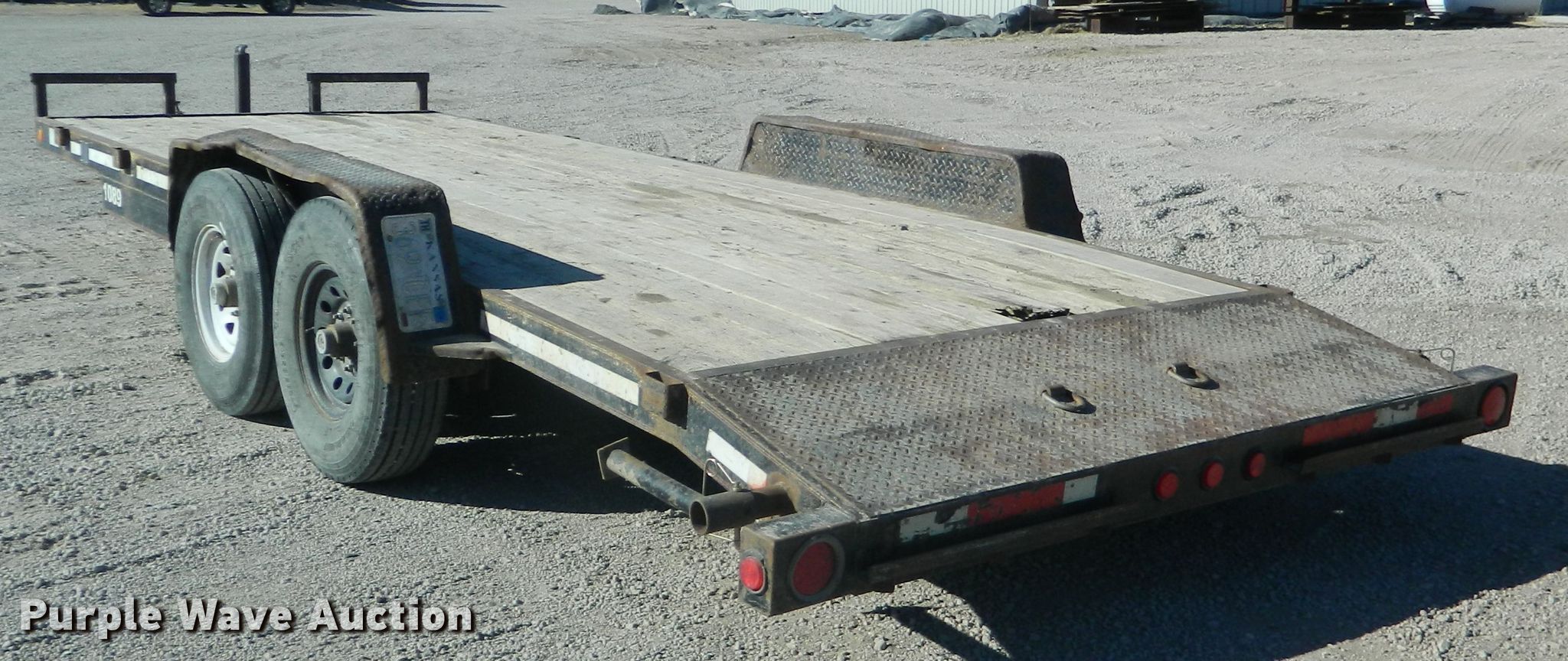 Purple Wave is selling a used Car or Utility Trailer in Kansas. This item is a 2002 Eagle utility trailer with the following: 22'6"L x 103"W overall, 18'L x 82"W deck, 5'L ramps, Wood deck, 2 5/16" ball hitch, Spring suspension, Electric brakes, Tandem axle, Steel wheels, 235/85R16 tires, GVWR 12,500 lbs, GAWR 6,000 lbs, Chains and boomers not included