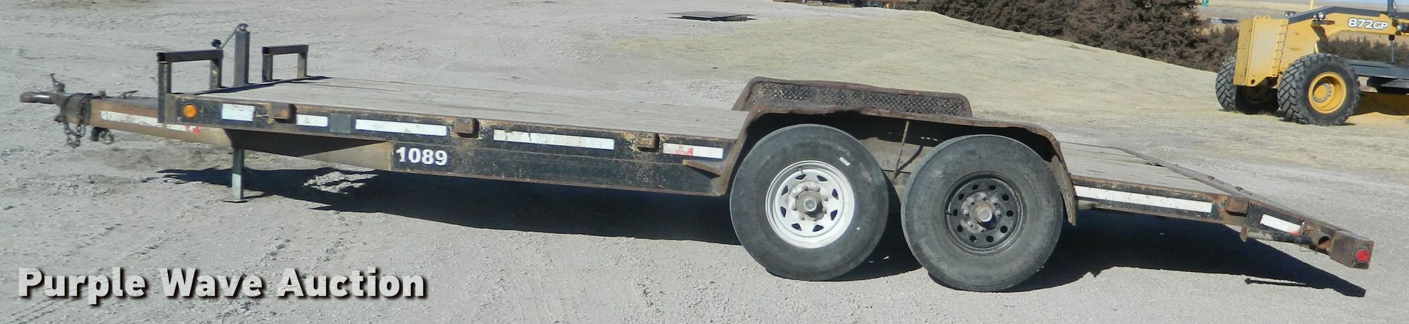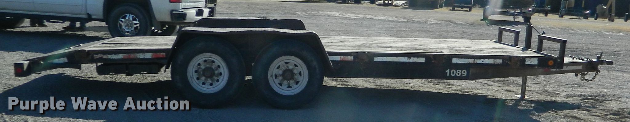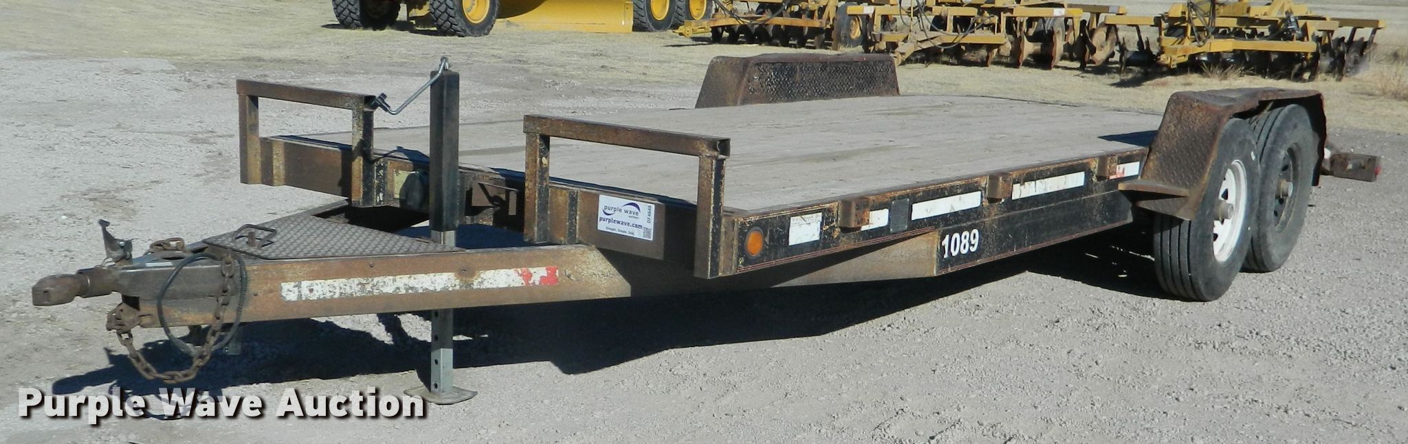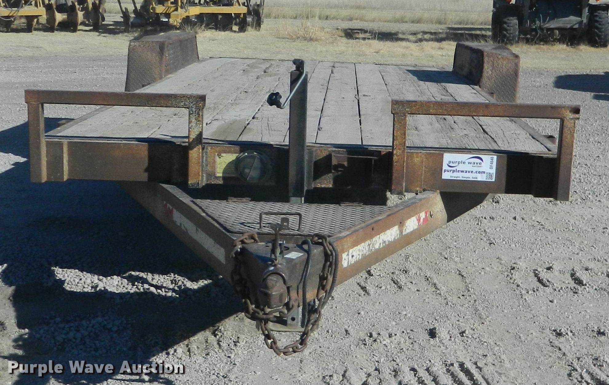 Purple Wave is selling a used Car or Utility Trailer in Kansas. This item is a 2002 Eagle utility trailer with the following: 22'6"L x 103"W overall, 18'L x 82"W deck, 5'L ramps, Wood deck, 2 5/16" ball hitch, Spring suspension, Electric brakes, Tandem axle, Steel wheels, 235/85R16 tires, GVWR 12,500 lbs, GAWR 6,000 lbs, Chains and boomers not included