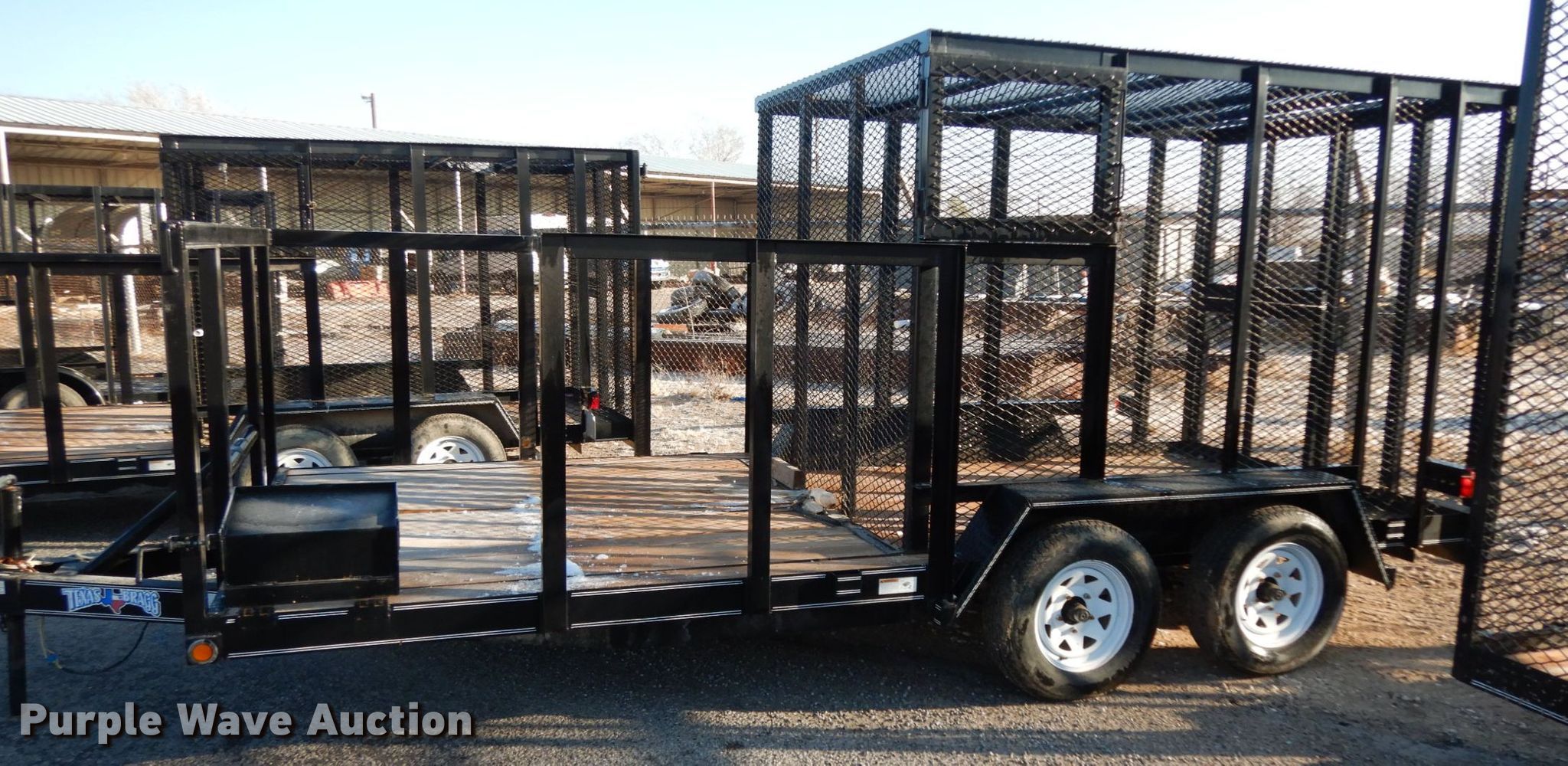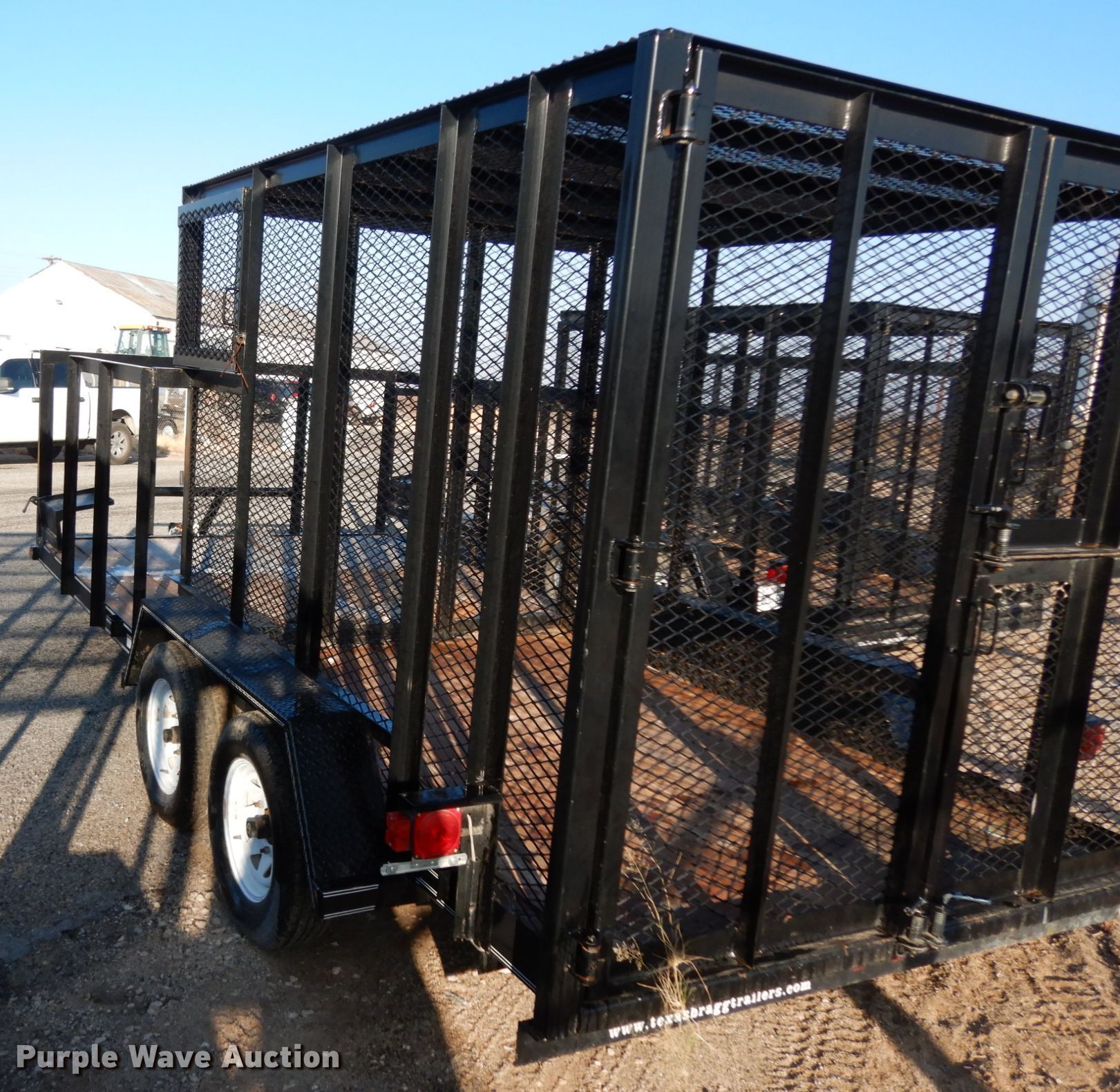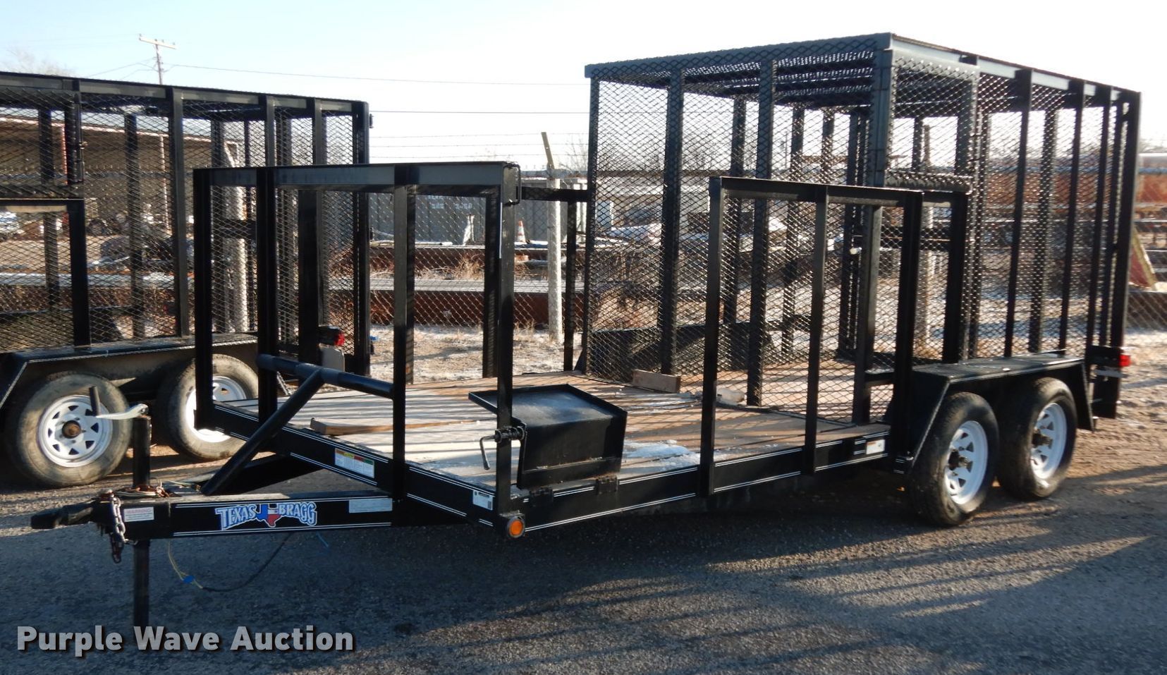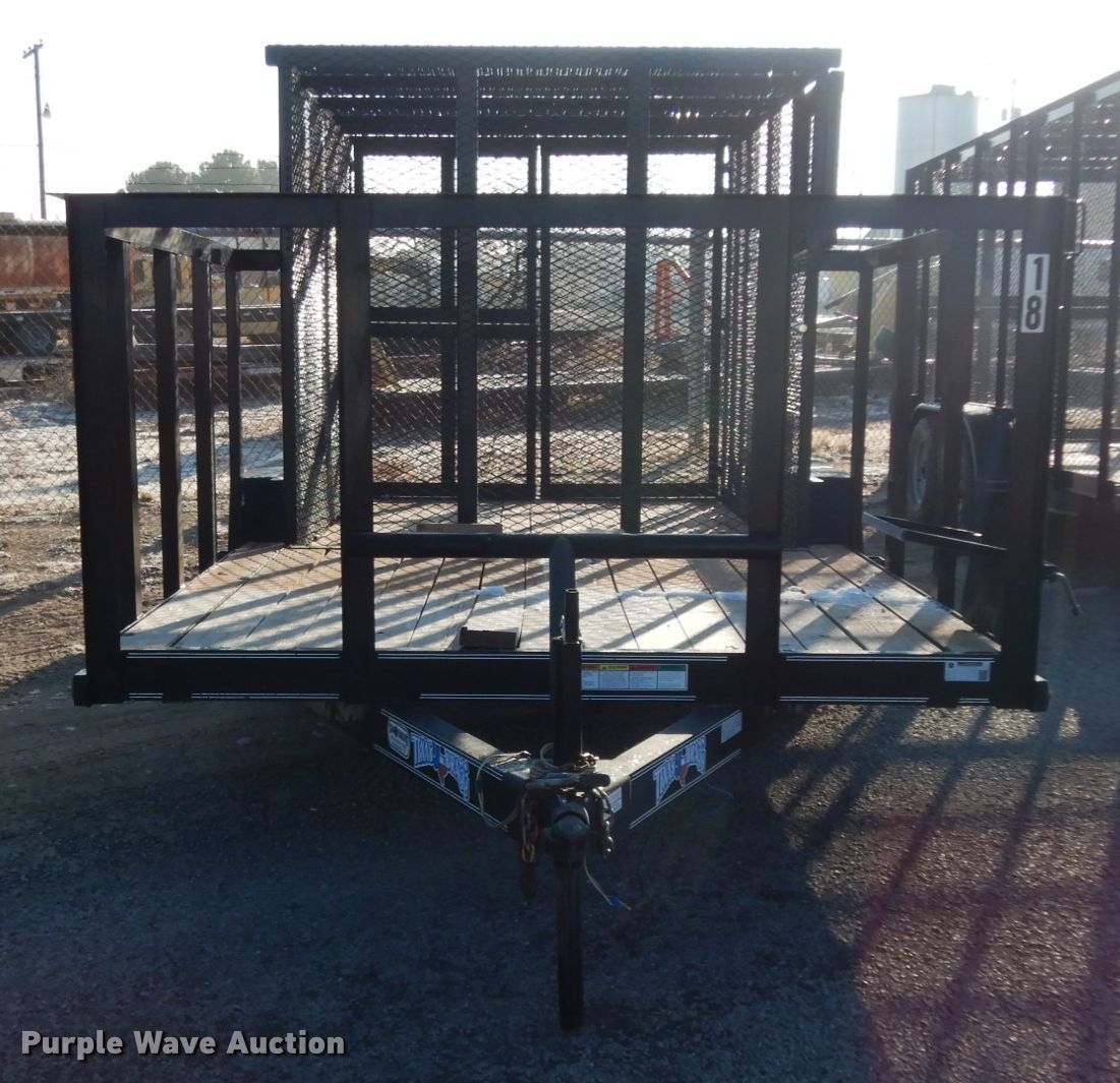 Purple Wave is selling a used Car or Utility Trailer in Texas. This item is a 2017 Texas Bragg utility trailer with the following: 20'L x 8'W overall, 5'8" side height, 2" ball hitch, Single leg landing gear, Spring suspension, Tandem axle, 205/75D15 tires, GVWR 4,500 lbs, GAWR 3,500 lbs
