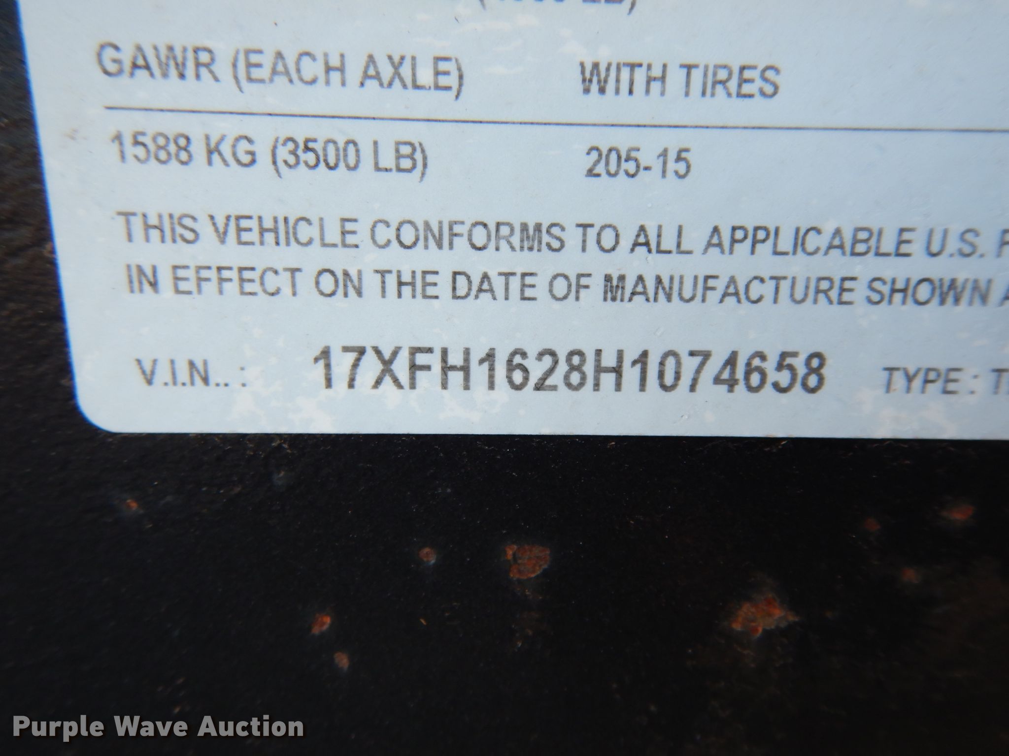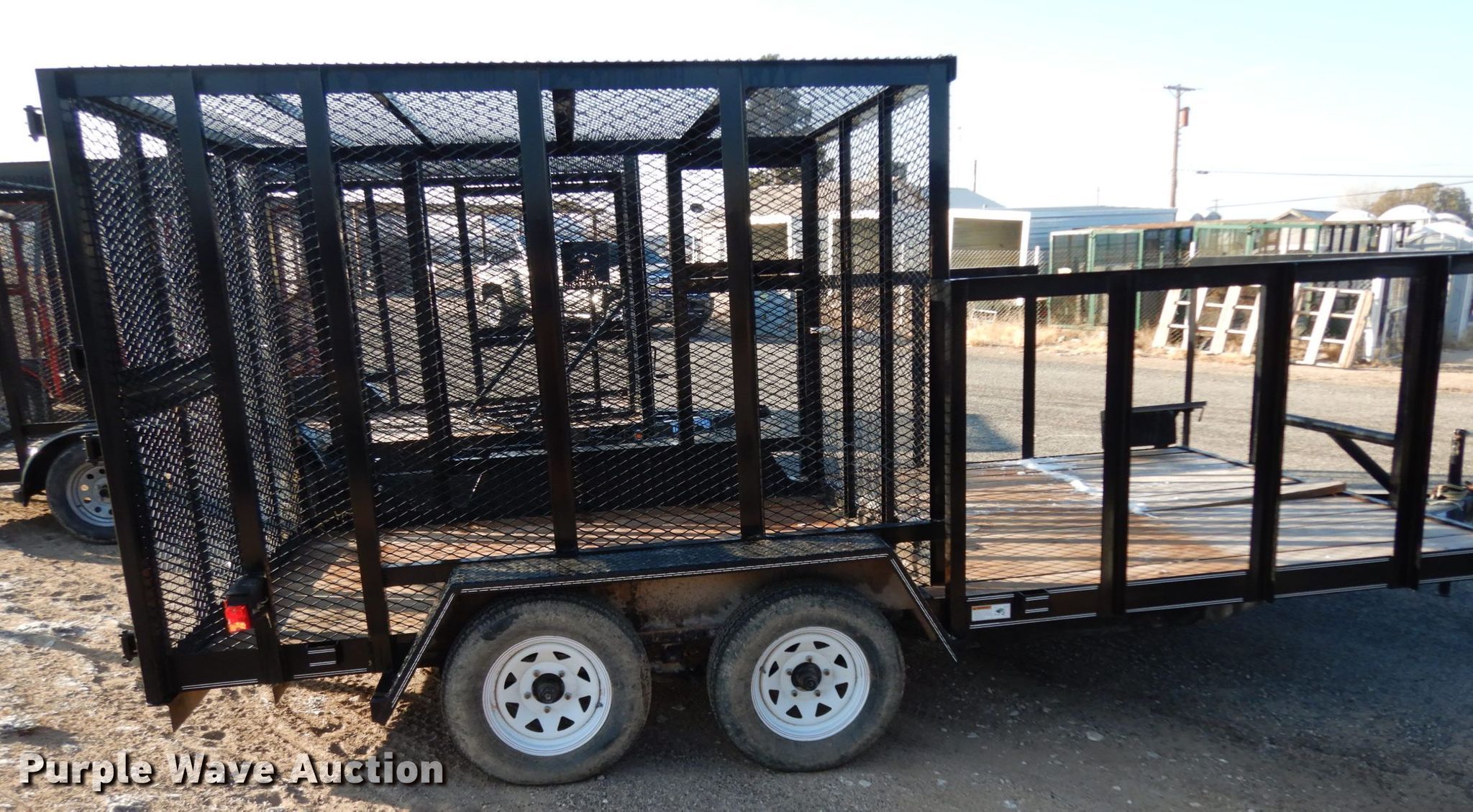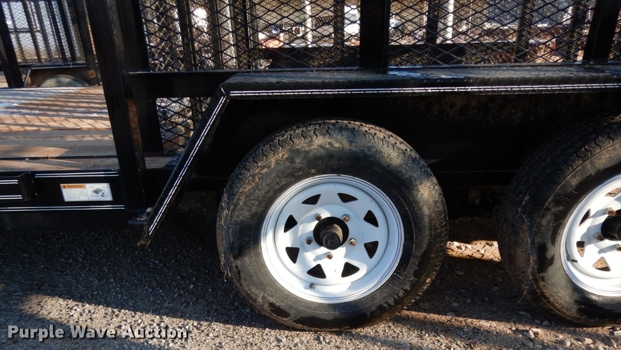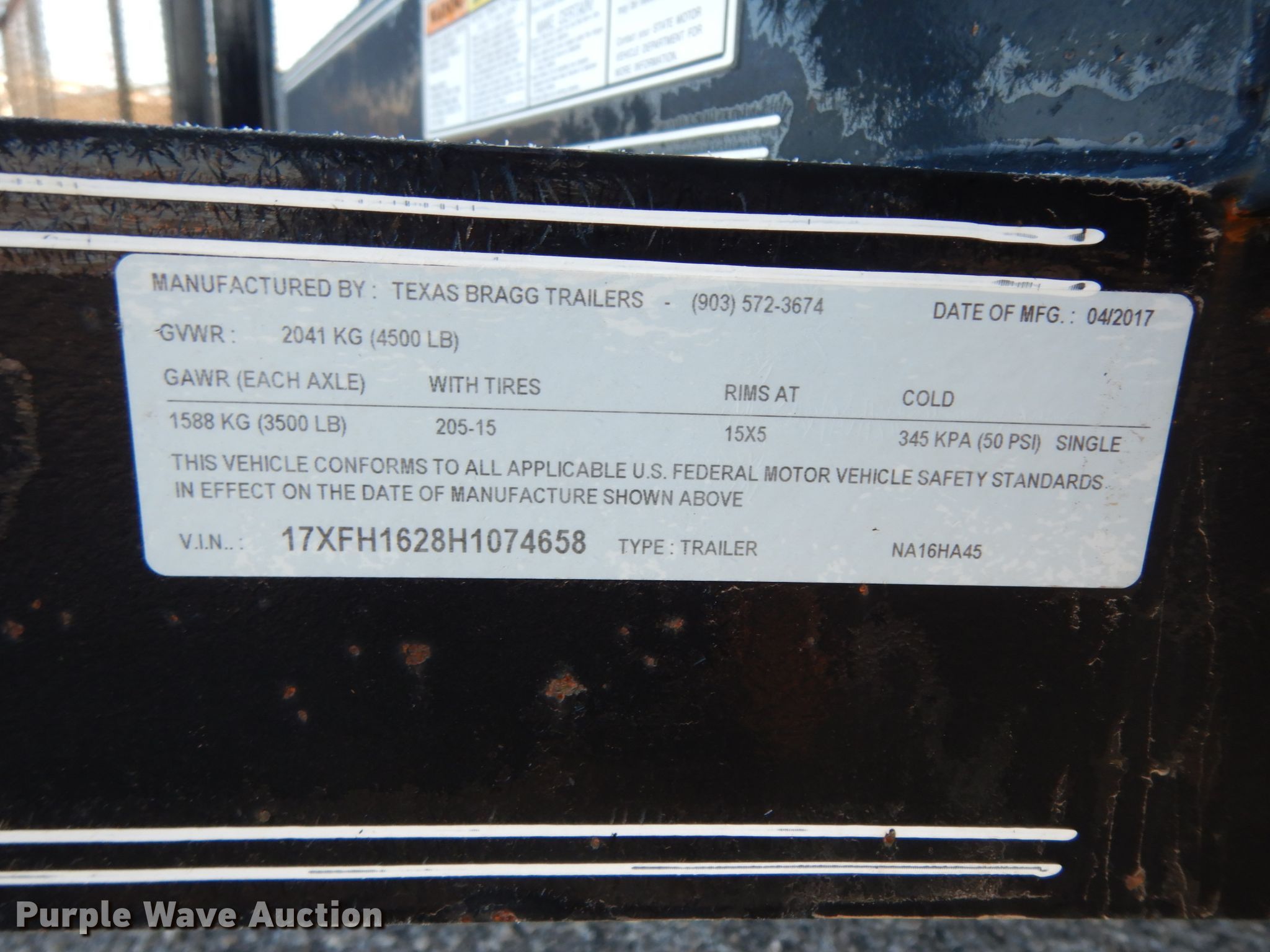 Purple Wave is selling a used Car or Utility Trailer in Texas. This item is a 2017 Texas Bragg utility trailer with the following: 20'L x 8'W overall, 5'8" side height, 2" ball hitch, Single leg landing gear, Spring suspension, Tandem axle, 205/75D15 tires, GVWR 4,500 lbs, GAWR 3,500 lbs