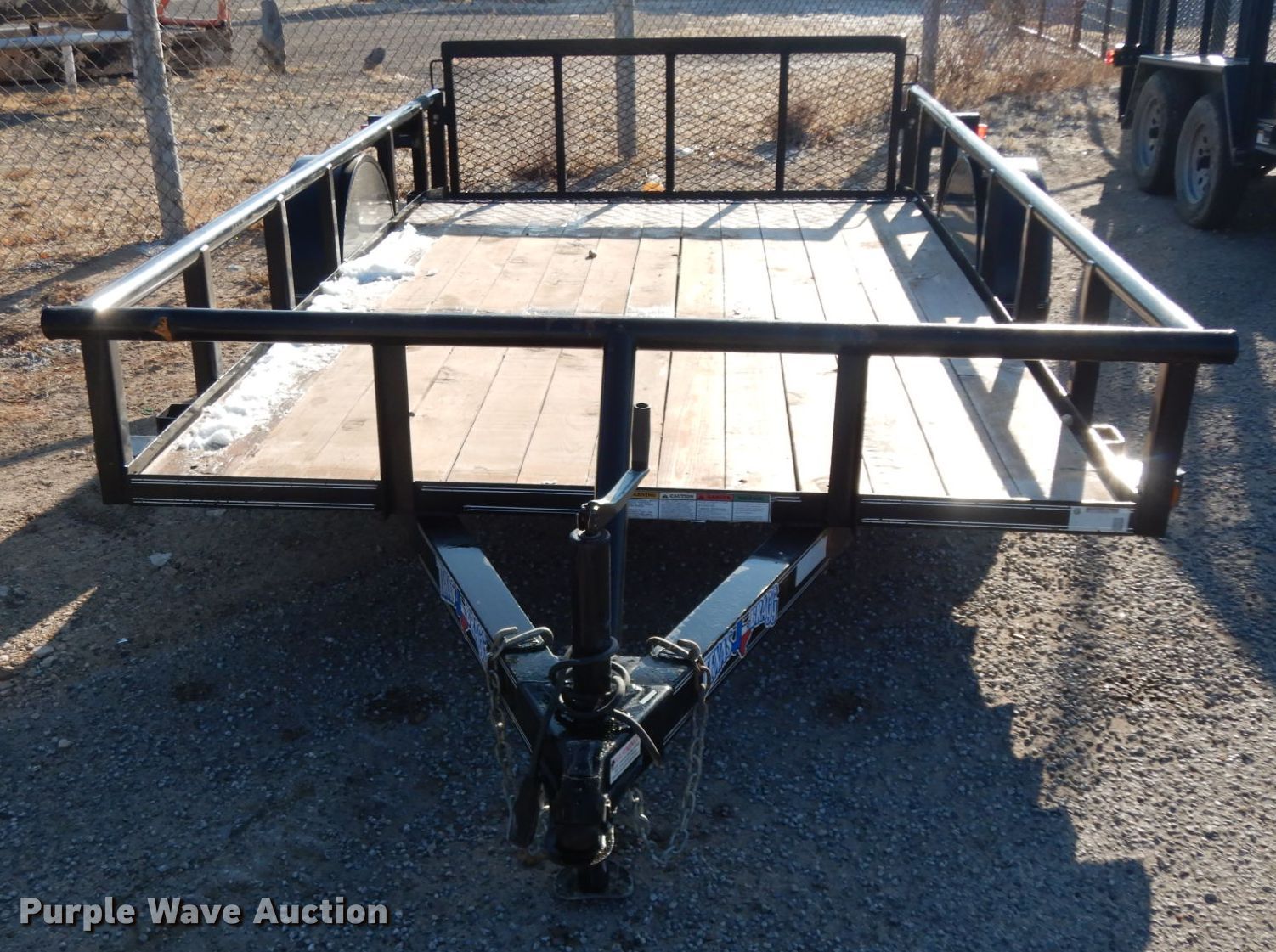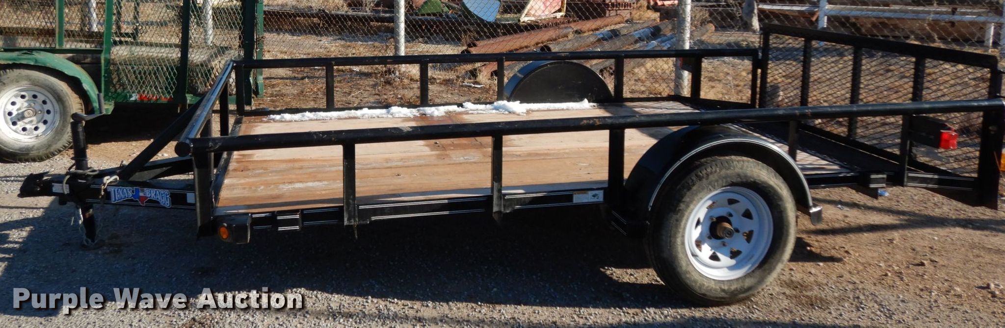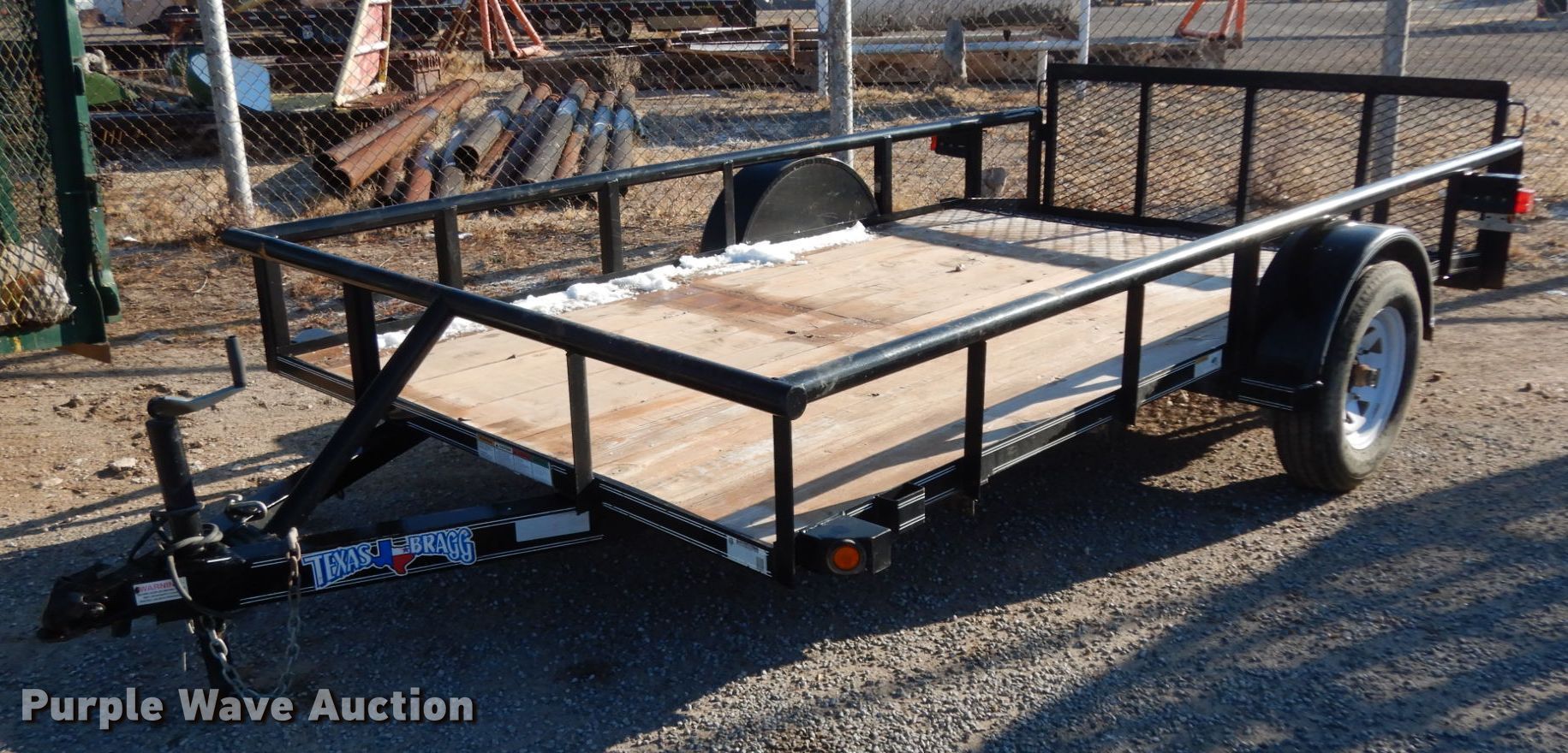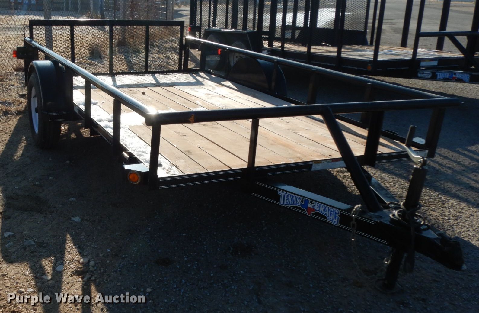 Purple Wave is selling a used Car or Utility Trailer in Texas. This item is a 2016 Texas Bragg NA612P29 utility trailer with the following: 15'5"L x 7'10"W overall, 10'2"L x 6'5"W wood deck, 2" ball hitch, Single leg landing gear, Spring suspension, Steel wheels, 205/75D15 tires, GVWR 2,995 lbs, GAWR 3,500 lbs
