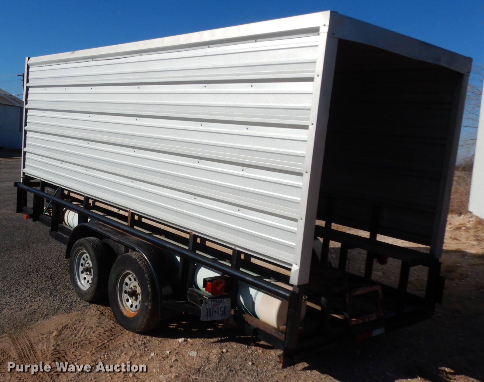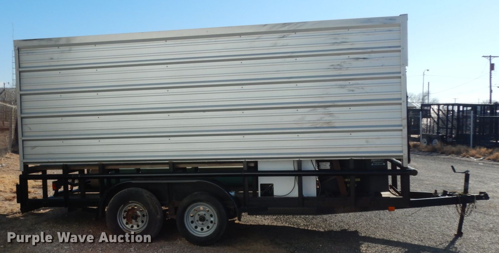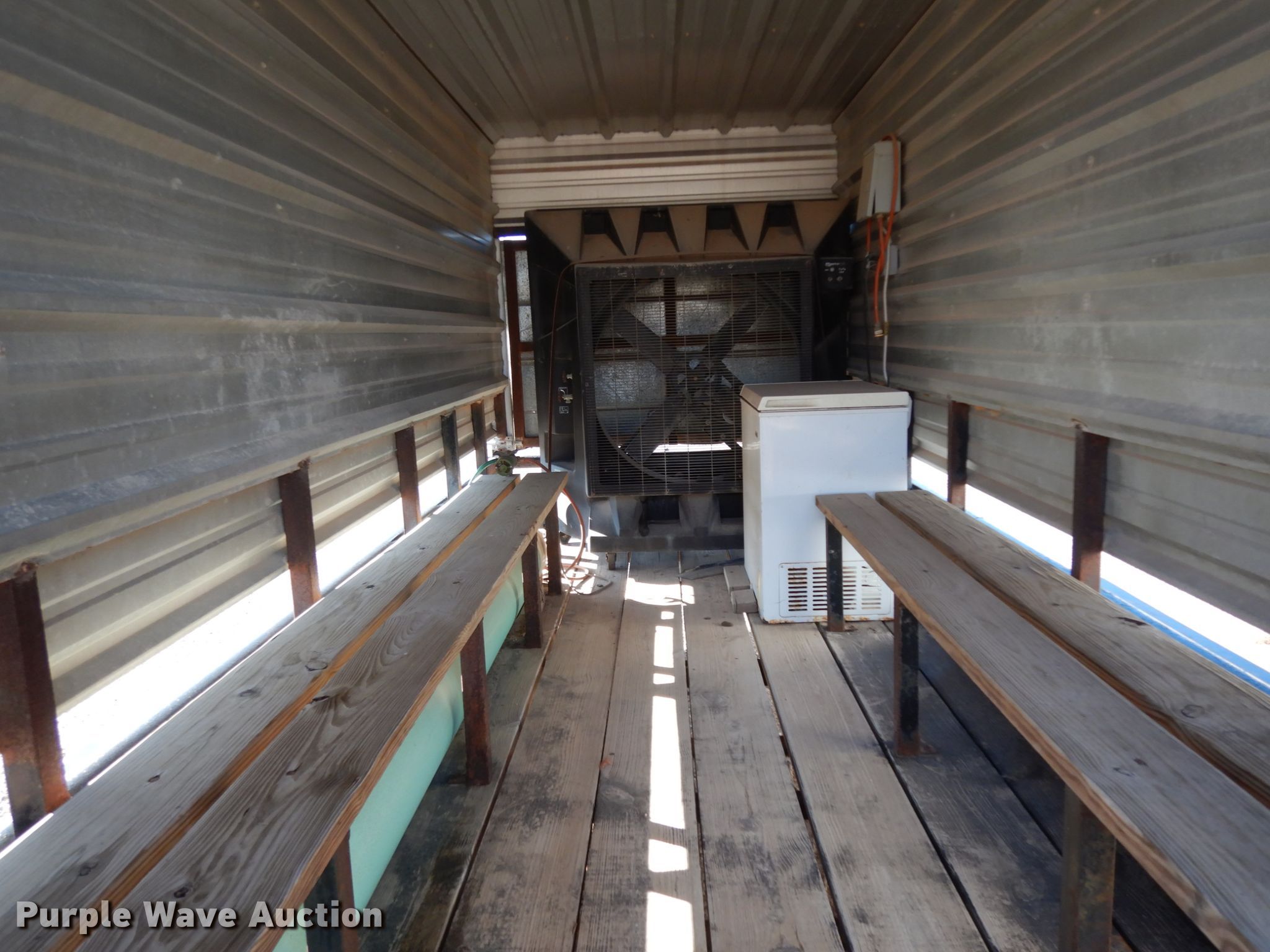 Purple Wave is selling a used Trailer Other in Texas. This item is a 2012 Carry-On cooling trailer with the following: 20'L x 8'W overall, 18'L x 6'6"W deck, 2" ball hitch, 36" PortaCool PACK361S fan, Two fuse panel box, Holiday freezer, Wooden seating, Single leg landing gear, Spring suspension, Tandem axle, 205/75D15 tires