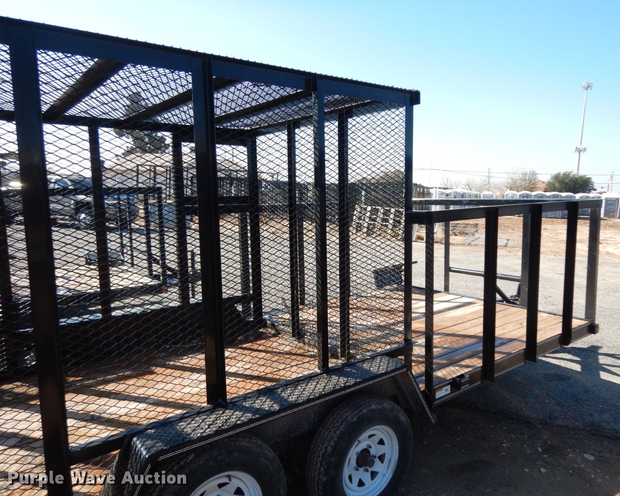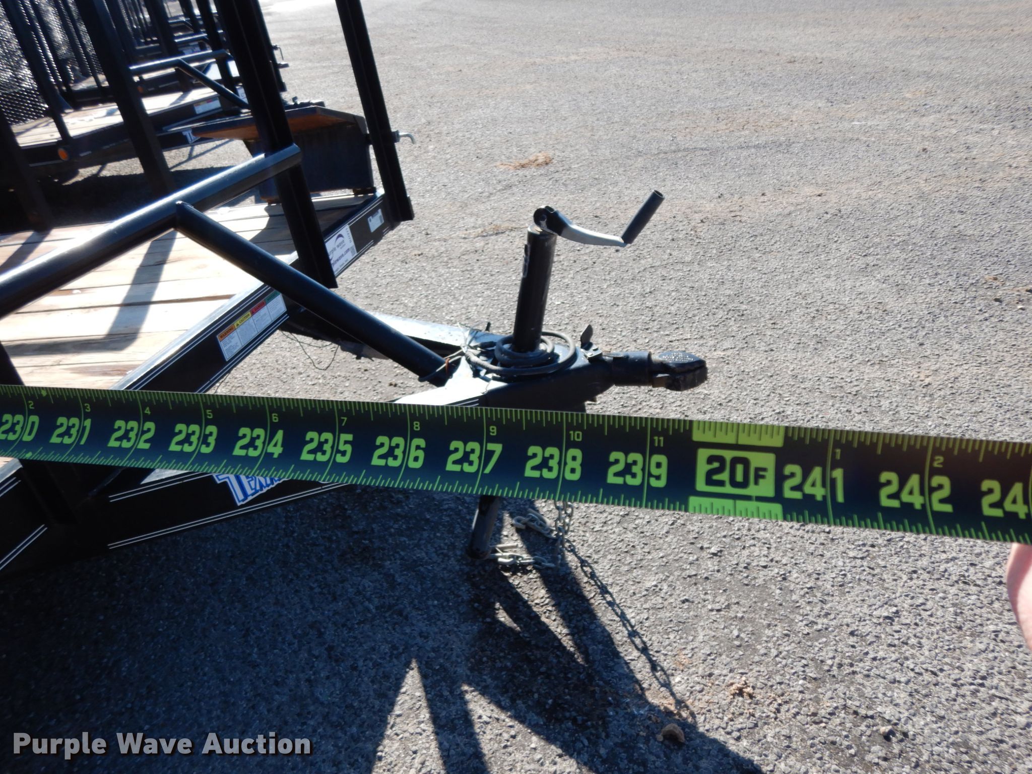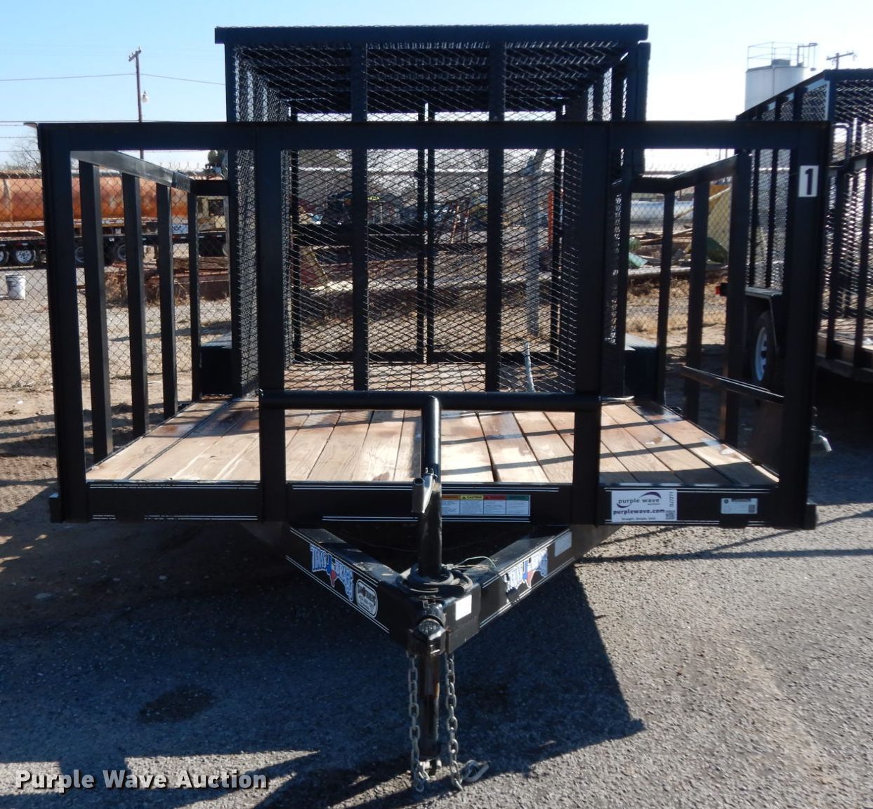 Purple Wave is selling a used Car or Utility Trailer in Texas. This item is a 2017 Texas Bragg utility trailer with the following: 20'L x 8'W overall, 5'8" side height, Single leg landing gear, Spring suspension, Tandem axle, 205/75R15 tires, GVWR 4,500 lbs, GAWR 3,500 lbs