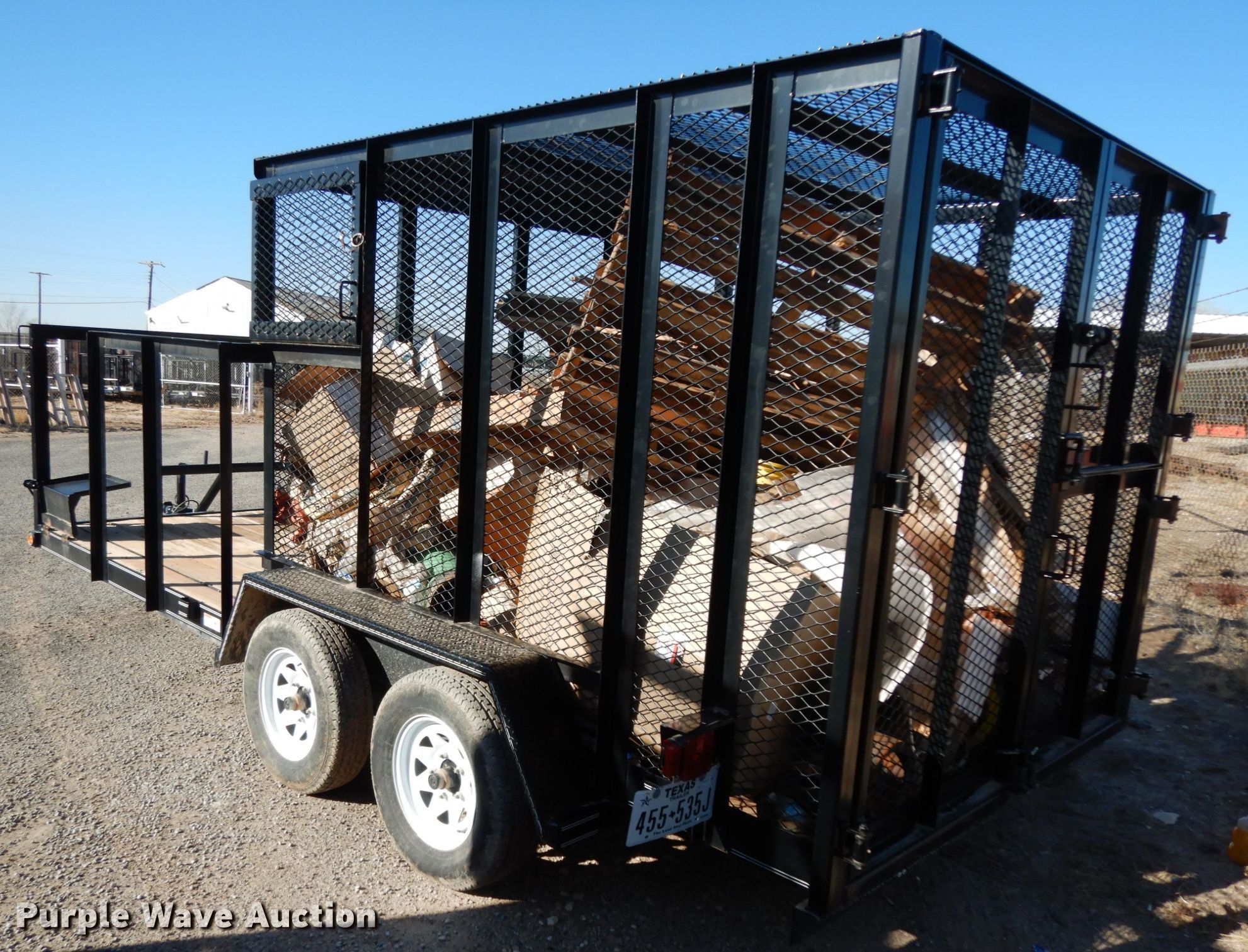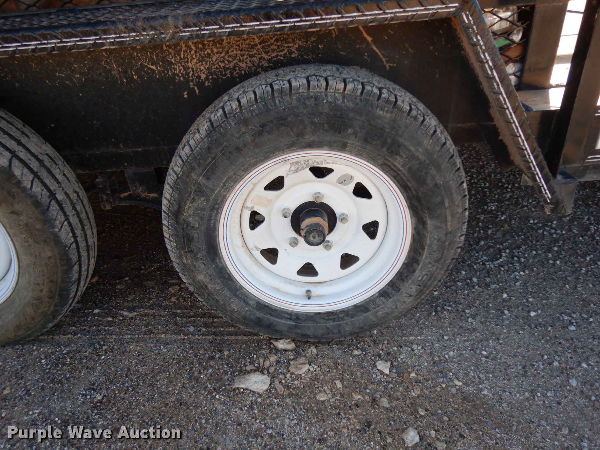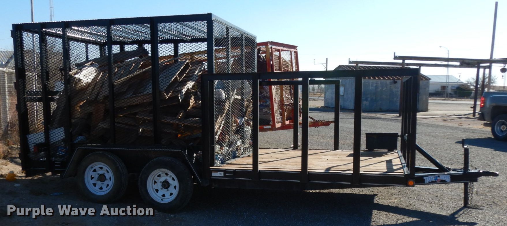 Purple Wave is selling a used Car or Utility Trailer in Texas. This item is a 2017 Texas Bragg utility trailer with the following: 20'L x 8'W overall, 5'8" side height, 2" ball hitch, Single leg landing gear, Spring suspension, Tandem axle, 205/75D15 tires, GVWR 4,500 lbs, GAWR 3,500 lbs