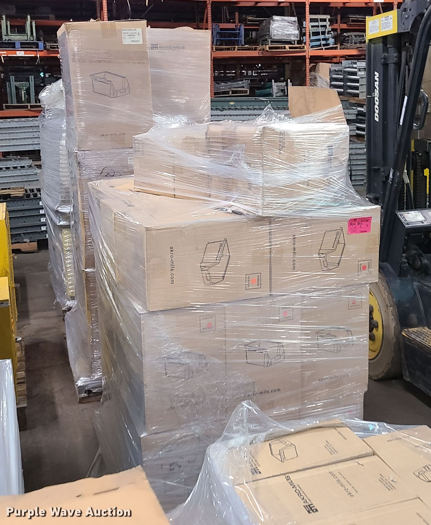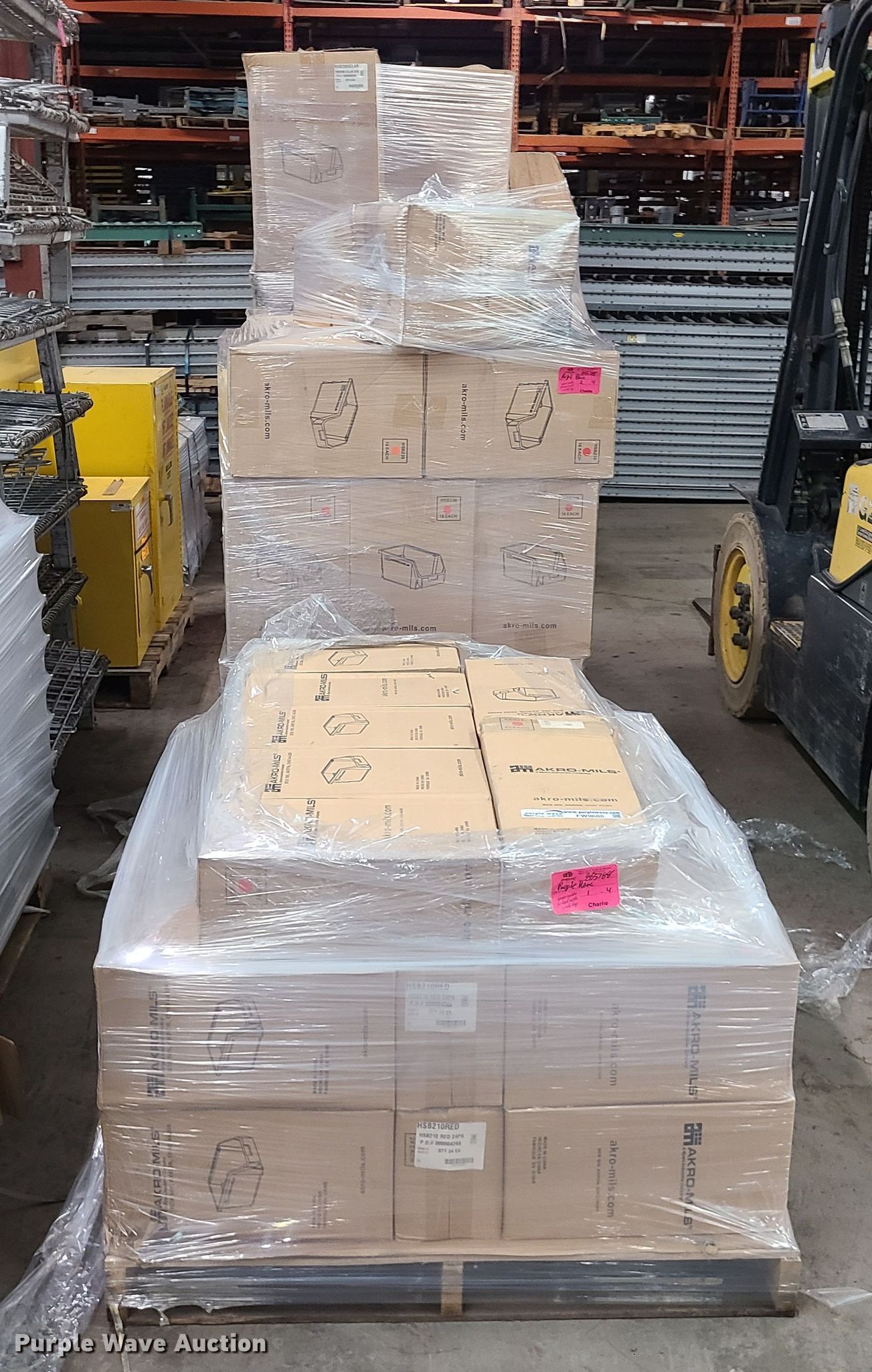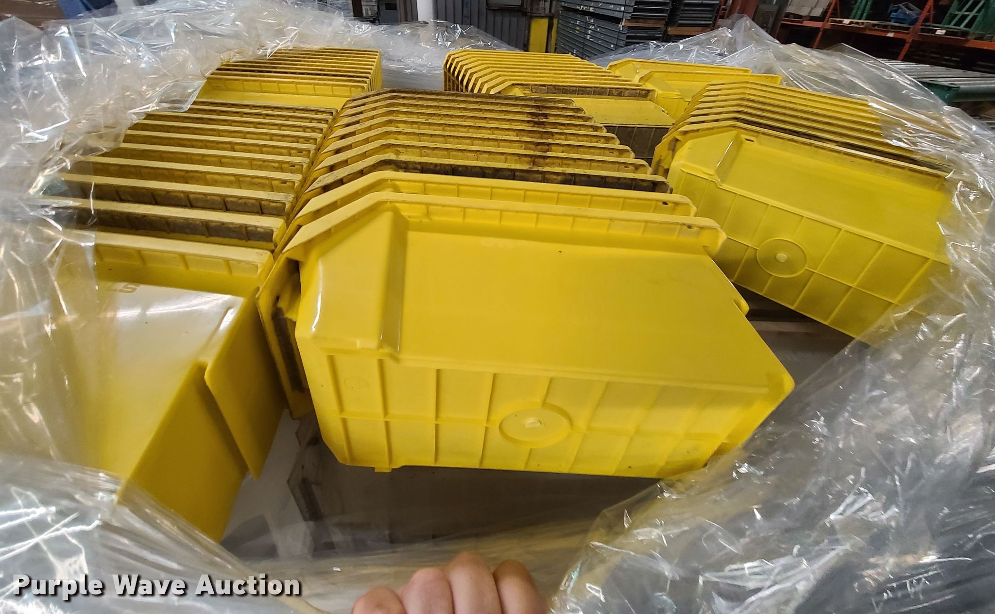 Purple Wave is selling a used Shelving and Storage in Missouri. This item is a Stackable storage bins with the following: (4) assorted pallets
