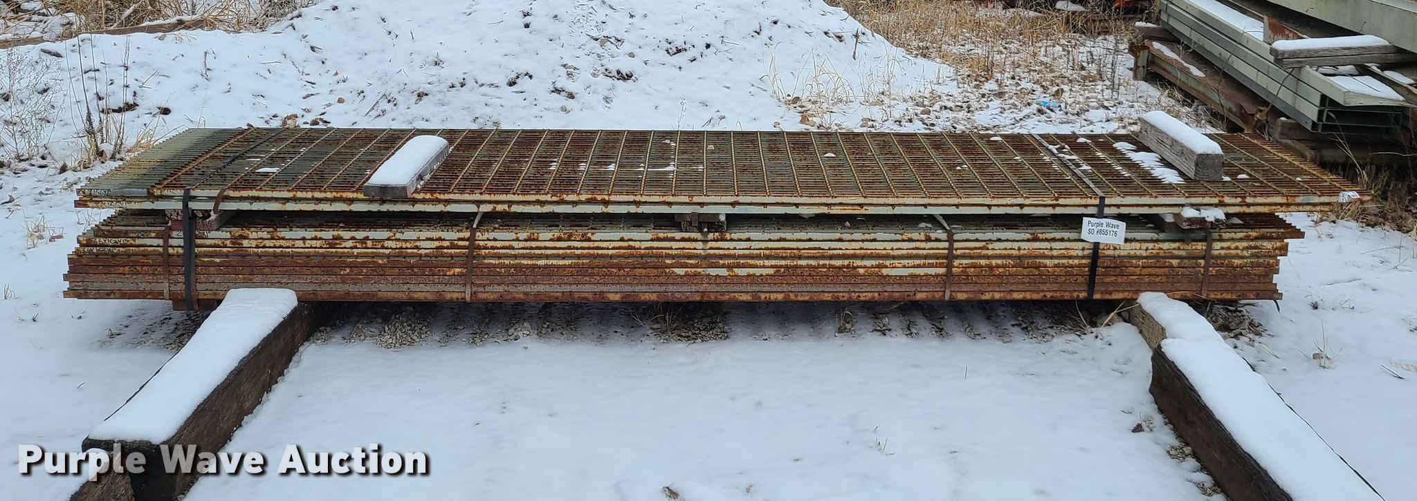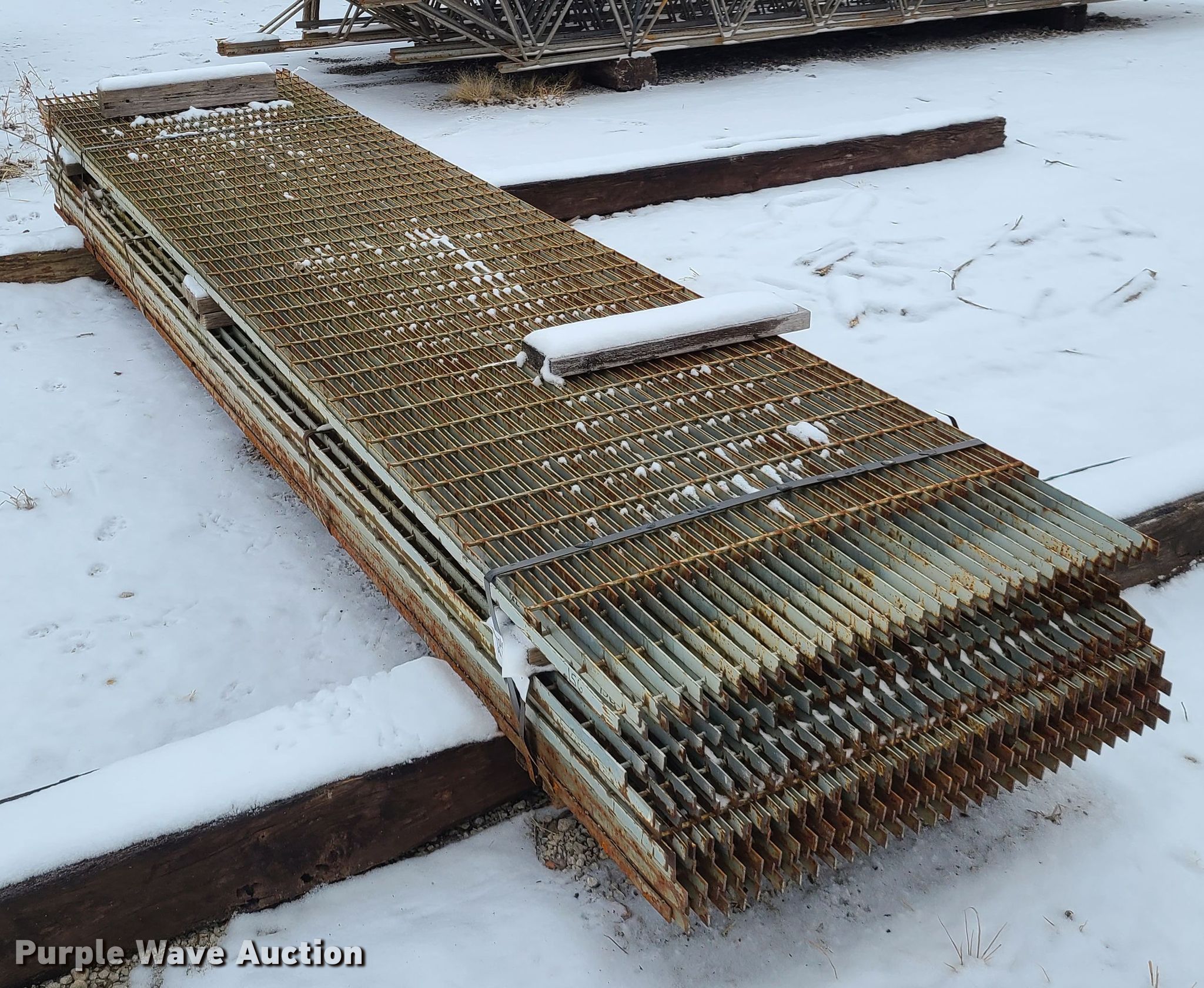 Purple Wave is selling a used Building Materials in Missouri. This item is a (12) steel grates with the following: Approximately 12'L x 3'W, 1" x 4" openings