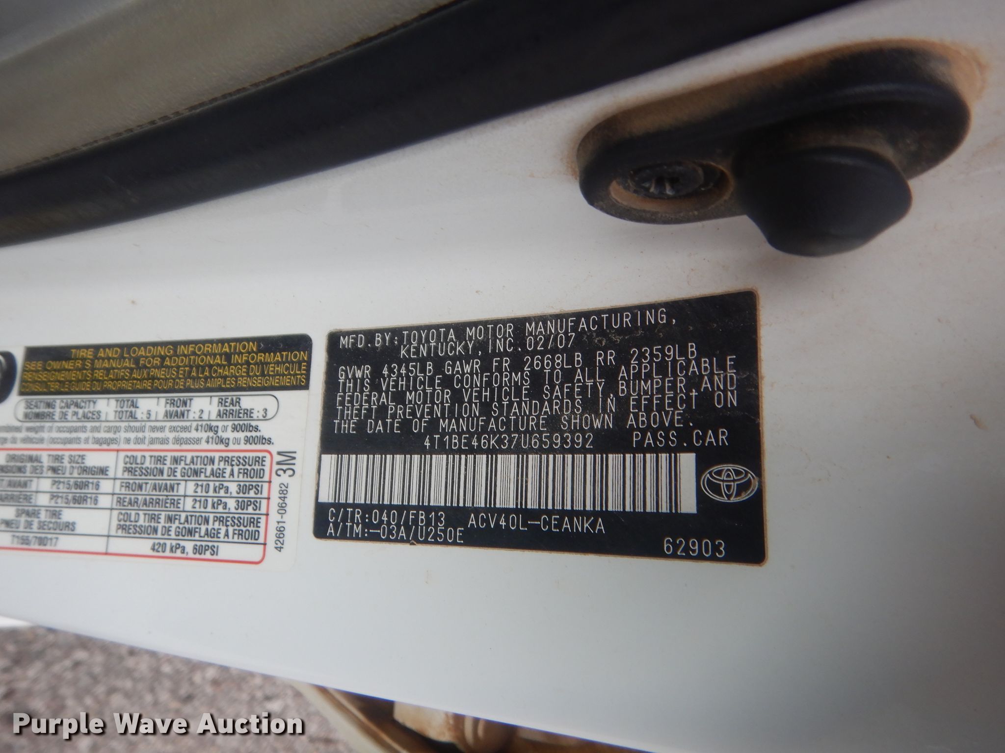 Purple Wave is selling a used Passenger Vehicle in Oklahoma. This item is a 2007 Toyota Camry with the following: 184,746 miles on odometer