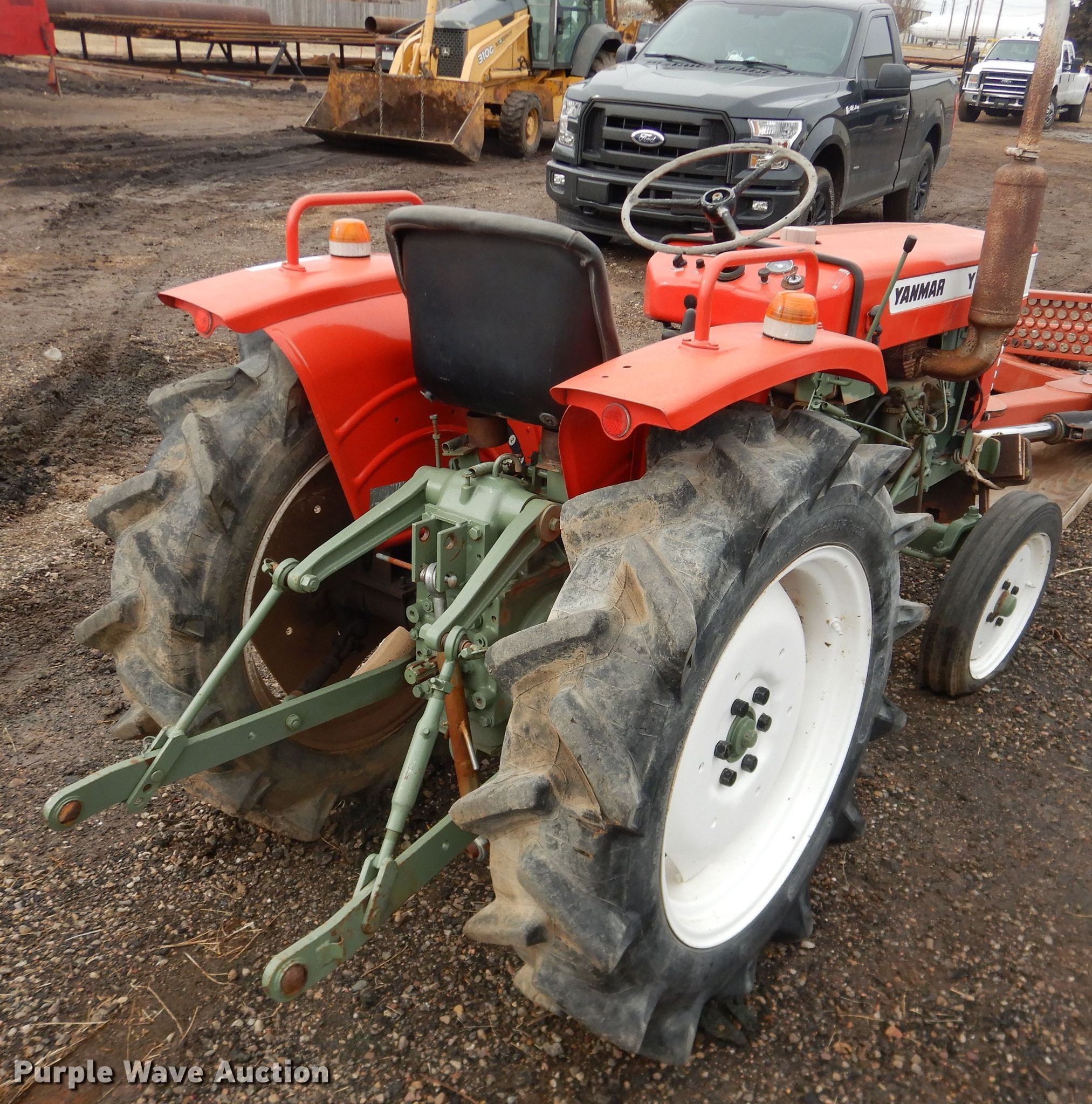 Yanmar YM2000 tractor. 745 hours on meter, Serial: 2TR20A. Engine Cylinders: 2, Fuel type: Diesel. Transmission Manual, 8F - 2R, Differential lock. Operational PTO: 540, Three point. Tires Front: 4.00x15, Rear: 9.5/9-24. Notes Unknown operating condition. J.C. Services. 1939 W 2nd St. Liberal, KS 67901
