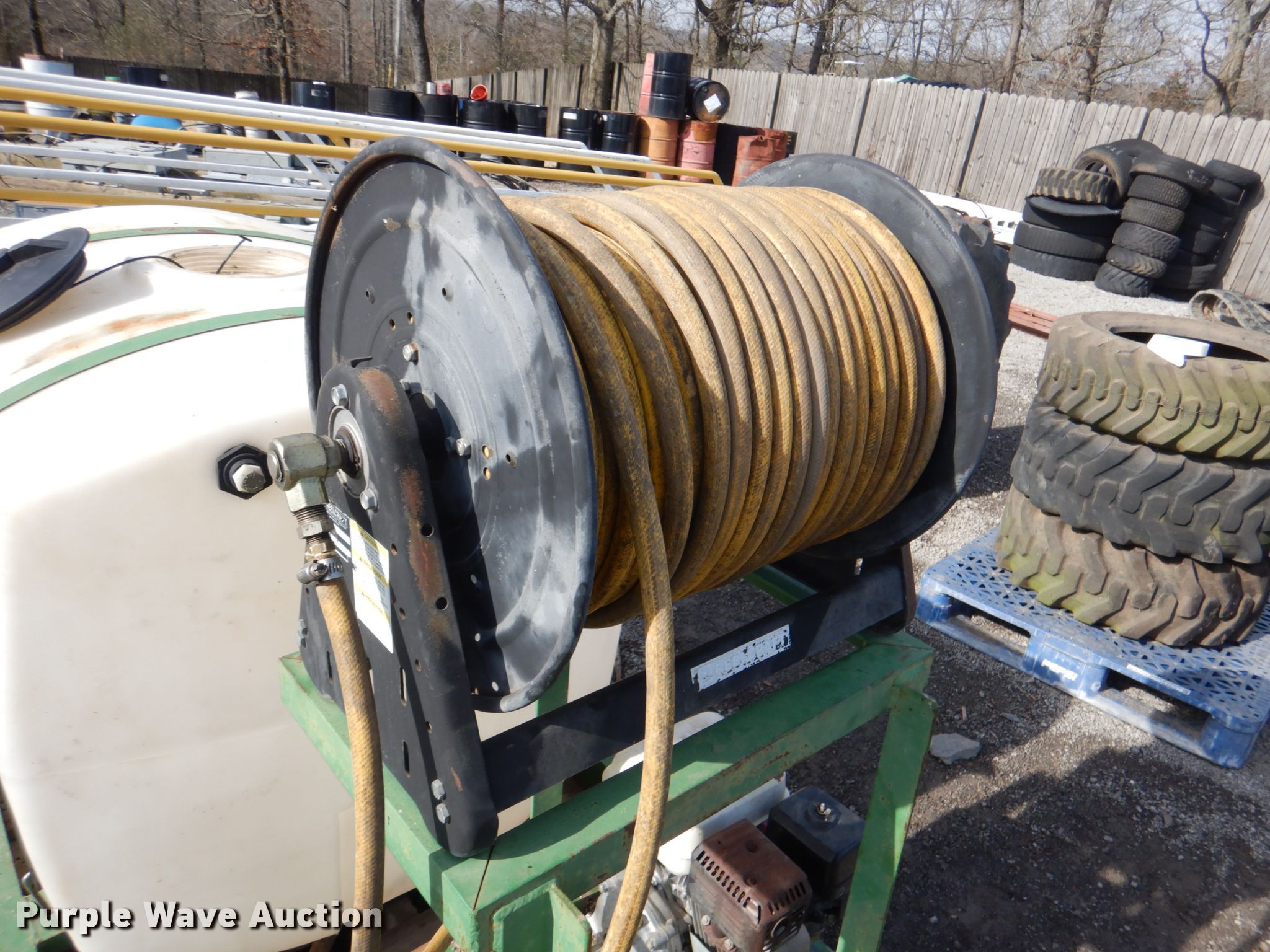 Purple Wave is selling a used Applicator Attach. in Arkansas. This item is a Sprayer with the following: Gas engine, 6.5 HP, Reelcraft CA32118L hose reel, 200 gallon tank, 72"L x 39"W skid
