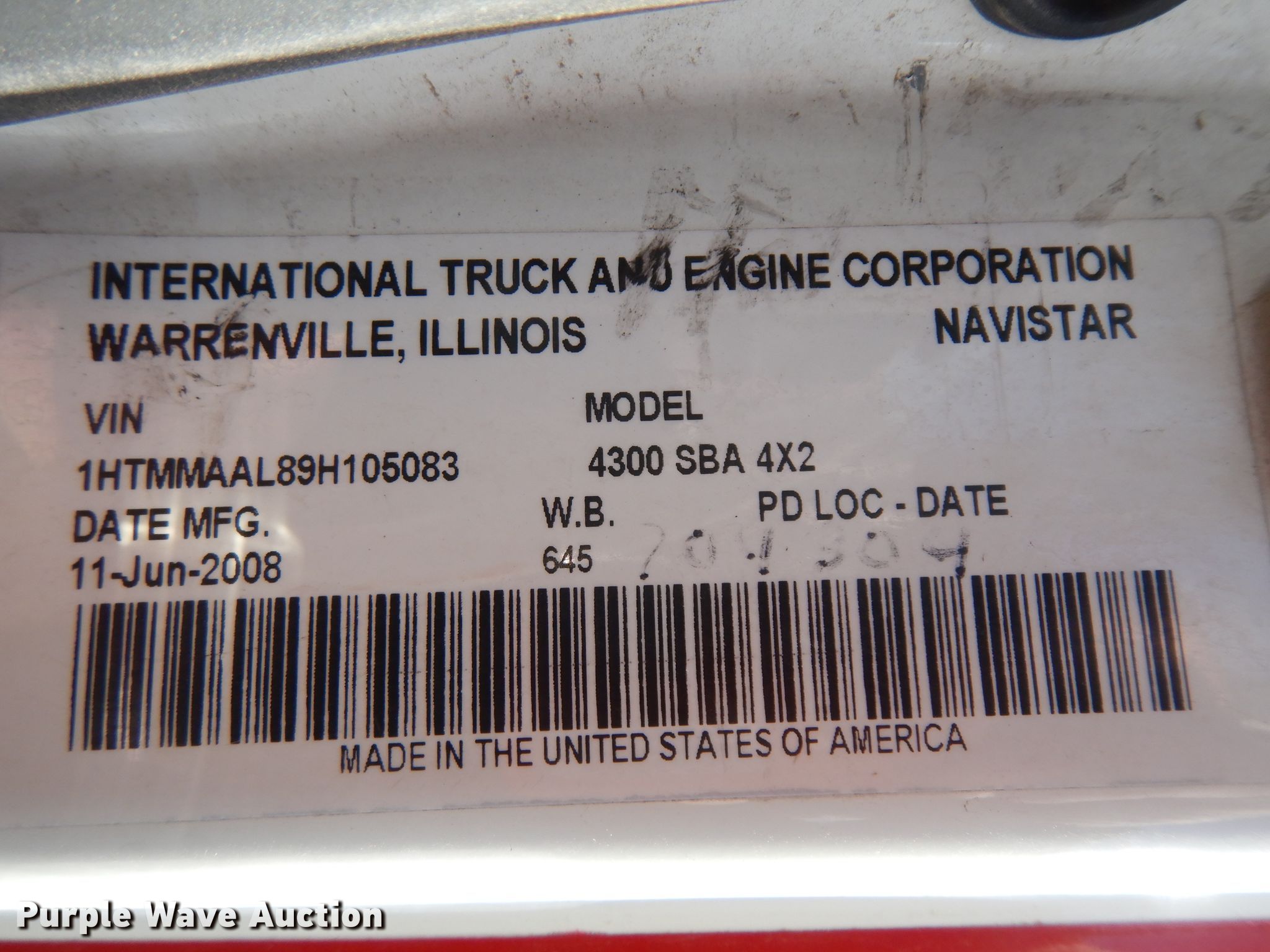2009 International DuraStar 4300 box truck. 332,765 miles on odometer, Engine hours: 8,539. Engine MaxxForce, Displacement: 7.6L L6, Cylinders: 6, Fuel type: Diesel. Transmission Manual, Speed: 6. Chassis Axles: Single, Suspension: Spring, Brakes: Air, GVWR: 25,999 lbs. Interior AC, Heat. Operational Box bed Supreme, Length: 24.5', Width: 102", Height: 100", Cube, Floor: Wood, End gate lift Maxon RC, Capacity: 3,000 lbs.. Tires Size: 11R22.5. Notes Contents not included. Colorado title. Title distribution may be delayed up to 14 days from verification of funds. 1HTMMAAL89H105083. Palisade, CO 81526