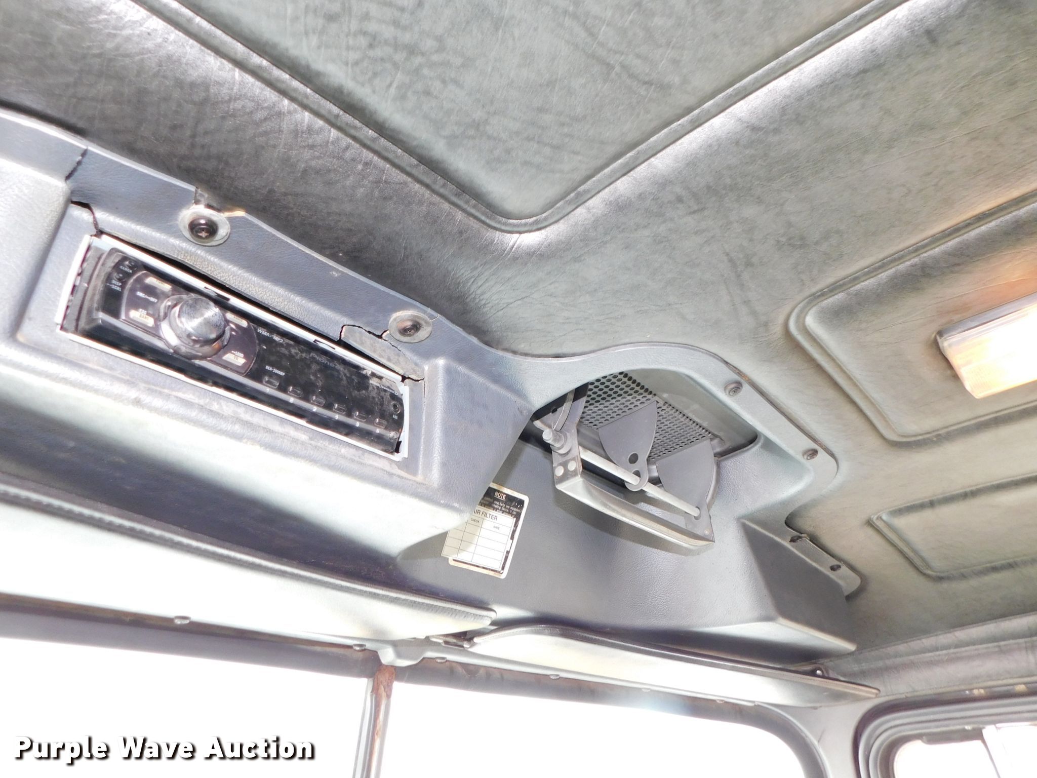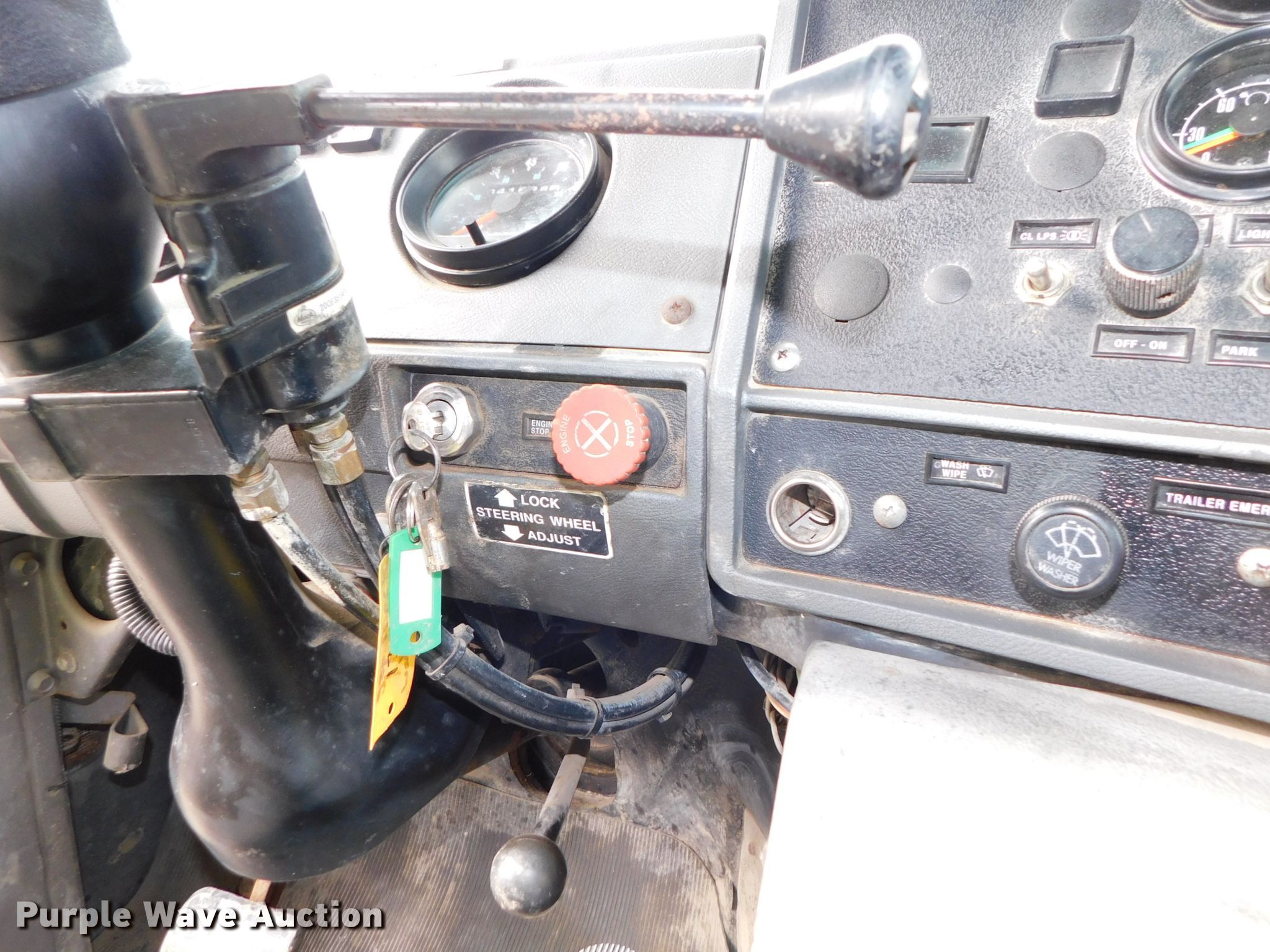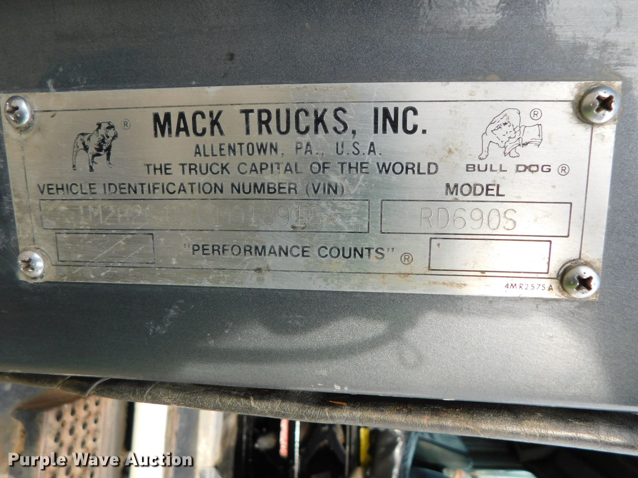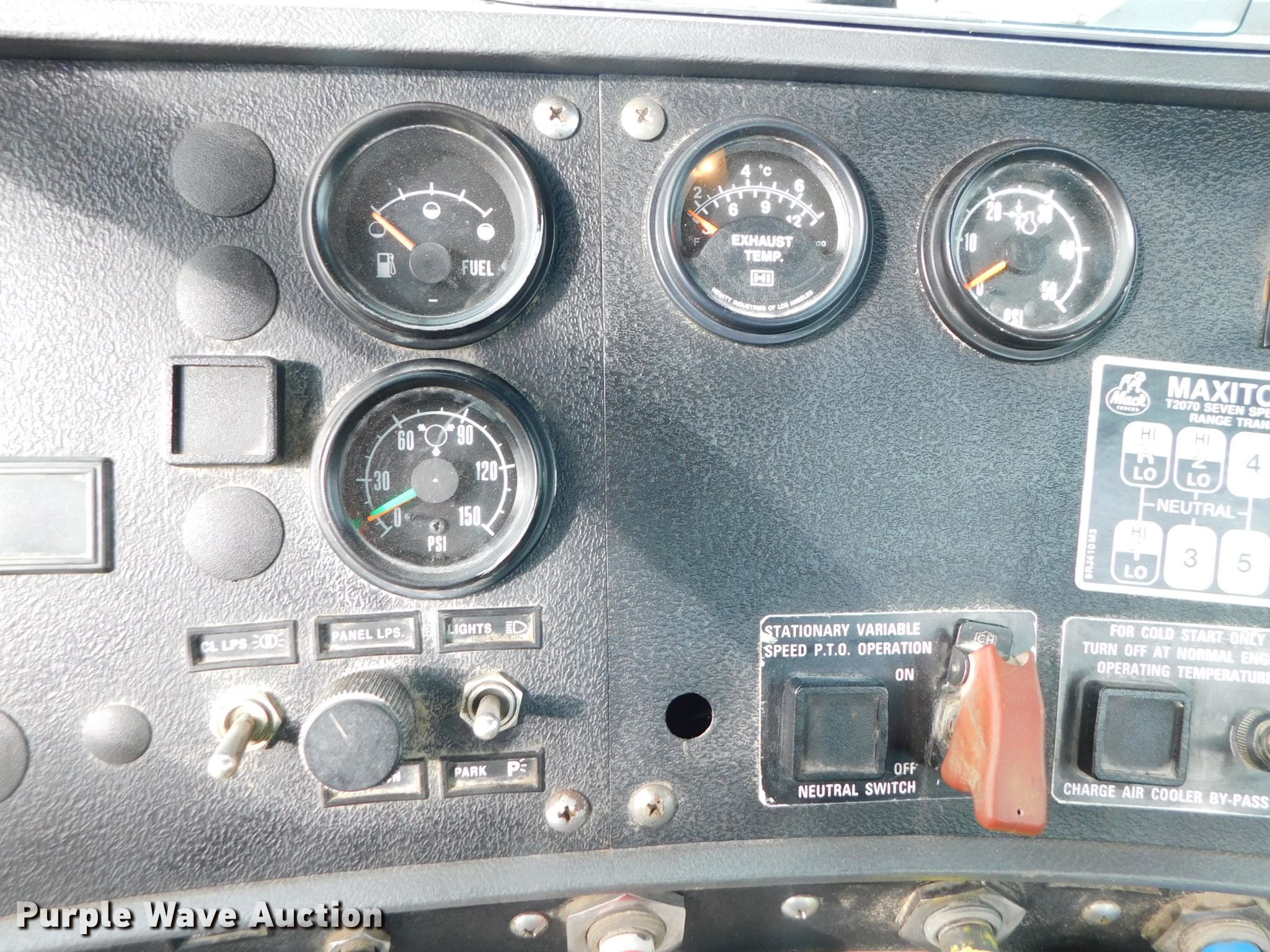 1995 Mack RD690S water truck. 41,629 miles on odometer, Engine hours: 13,659. Engine Mack EM7, Serial: 5D1555, Displacement: 12.0L, Cylinders: 6, Fuel type: Diesel, HP: 300. Transmission Mack Maxitorque T2070, Manual, Speed: 7. Chassis Axles: Triple Steerable pusher axle, Suspension: Camelback, Brakes: Air, PTO, Wheelbase: 227". Interior AC, Heat. Operational Bed / tank Capacity: 2,400 gallons, 20' 3"L. Tires Size: 11R22.5, Pusher axle: 275/80R22.5. Nebraska title. Title distribution may be delayed up to 14 days from verification of funds. 1M2P264C8SM018916. K2 Construction. 7701 Cornhusker Hwy. Lincoln, NE 68507