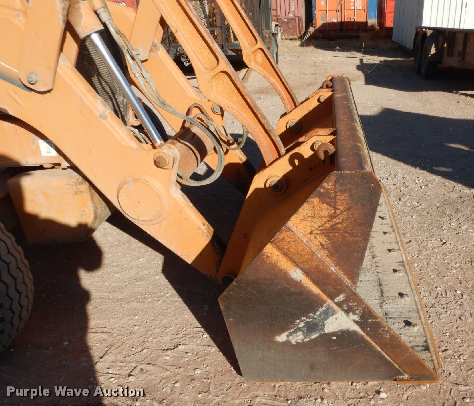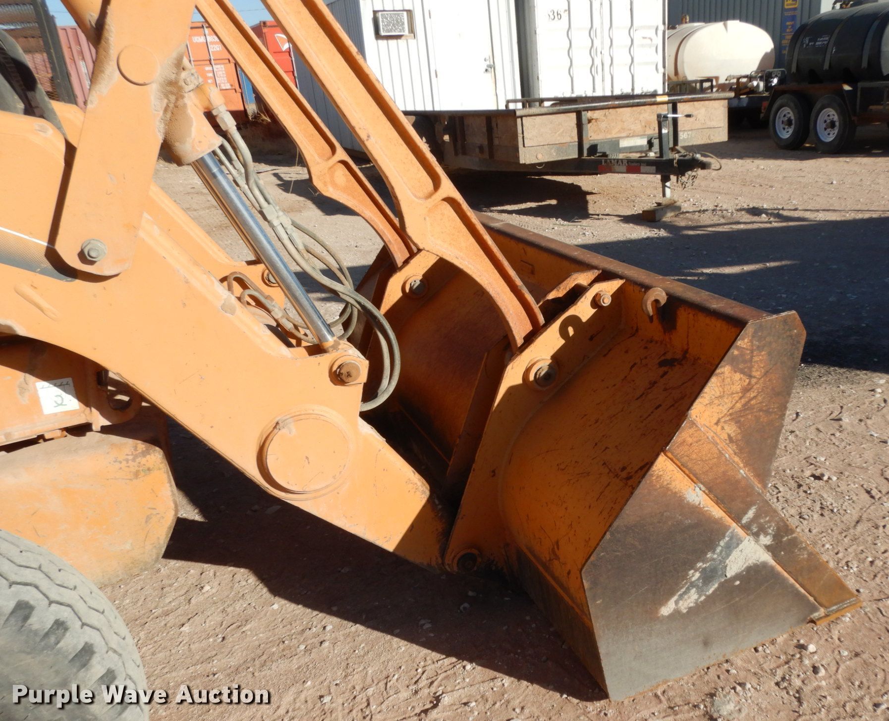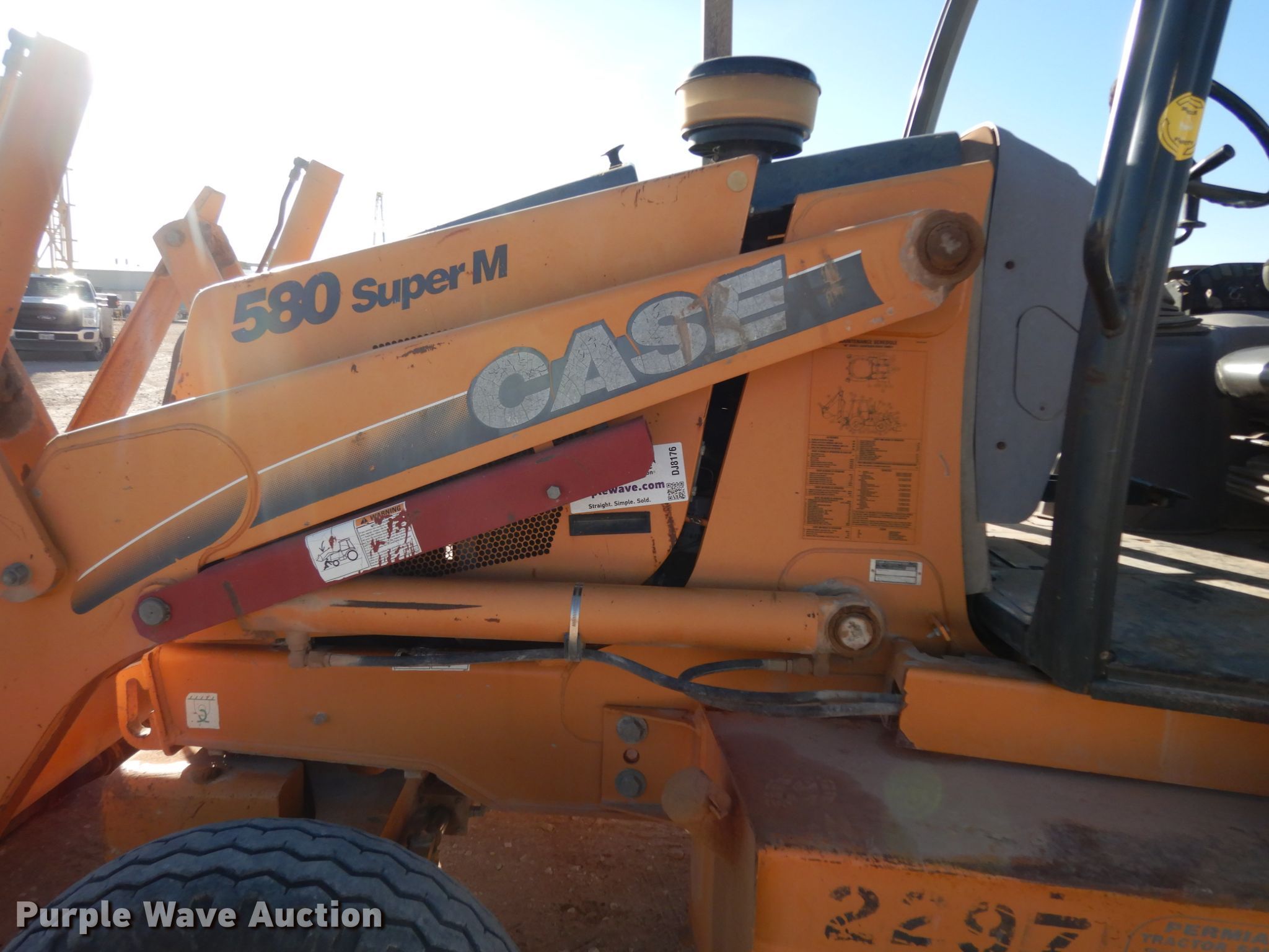 2002 Case 580 Super M backhoe. 6,964 hours on meter, Serial: JJG0282297. Engine Case 4T-390, Serial: 46143912, Displacement: 3.9L, Cylinders: 4, Fuel type: Diesel, HP: 95. Transmission Shuttle shift, 4F - 4R. Operators station OROPS, Backhoe controls: Wobble stick / two stick. Operational Loader Bucket Width: 84", Cutting edge: Bolt-on, Backhoe Quick coupler: Manual, Bucket Width: 24", Cutting edge: Weld-on.. Tires Front: 11L-16, Rear: 19.5L-24. 5407 Andrews Hwy. Odessa, TX 79762