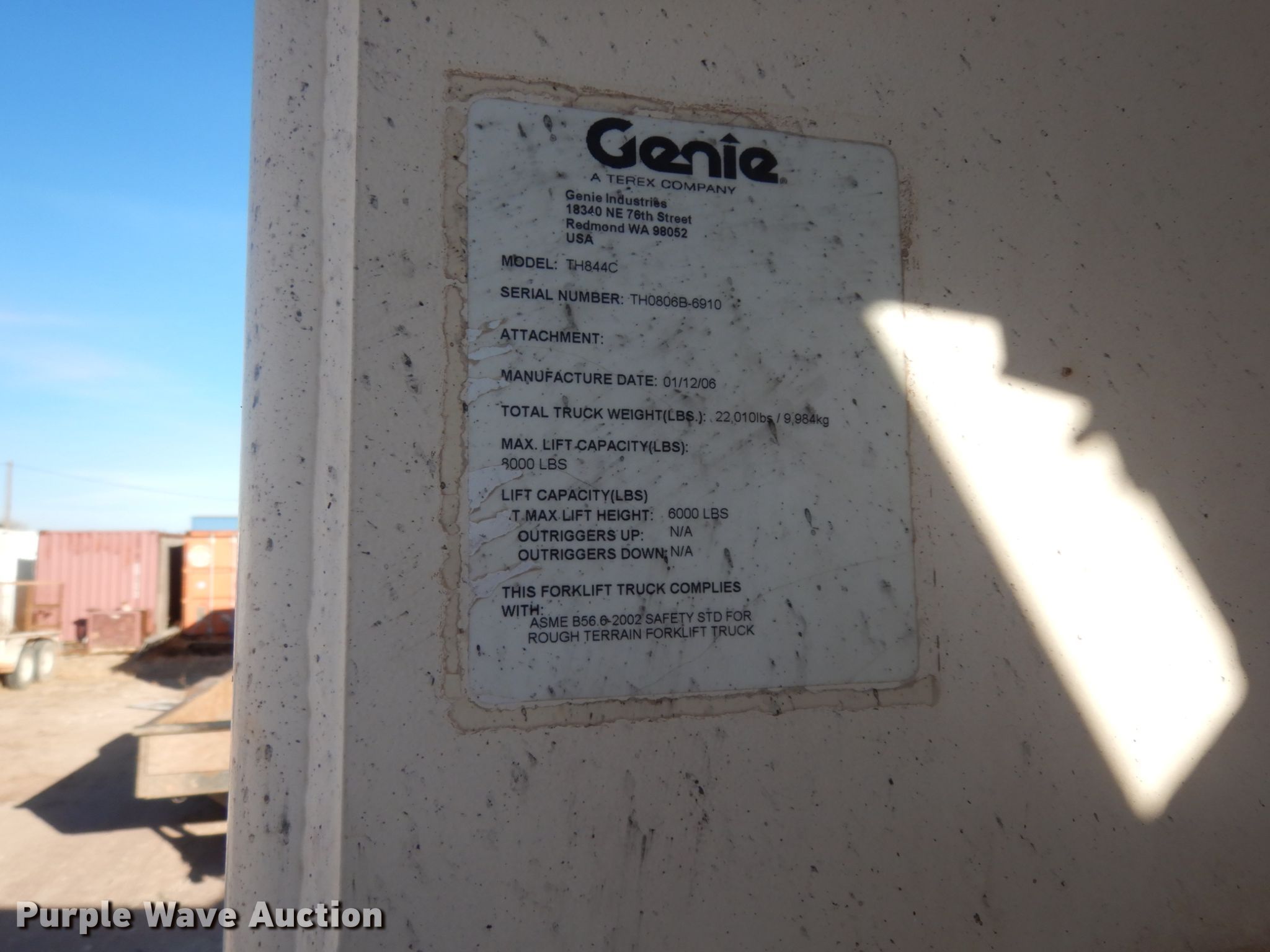 Purple Wave is selling a used Telehandler in Texas. This item is a 2006 Terex TH844C telehandler with the following: 6,277 hours on meter, Serial: TH0806B-6910