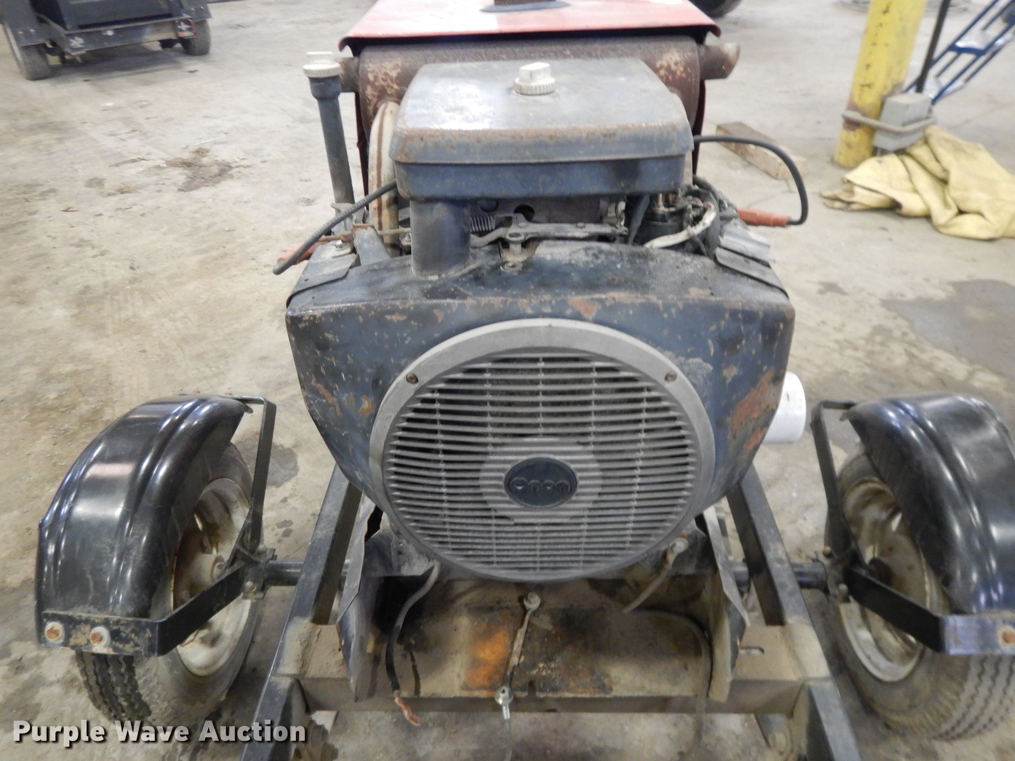 Lincoln Ranger 8 welder/generator. 2,372 hours on meter, Serial: 10338-U1960905701. Engine Onan P216G-1/11421G, Serial: G963547859, Cylinders: 2, Fuel type: Gas. Operational (4) 115V outlets, 115/230V outlet. Trailer 8' L x 54" W, Ball hitch size: 2", Tire size: 4.80-12. Notes No battery, Possible carburetor issues, Unknown operating condition. Transfer of ownership documentation will be a bill of sale. 10338U1960905701. Kissick Construction Company. 8131 Indiana Ave. Kansas City, MO 64132