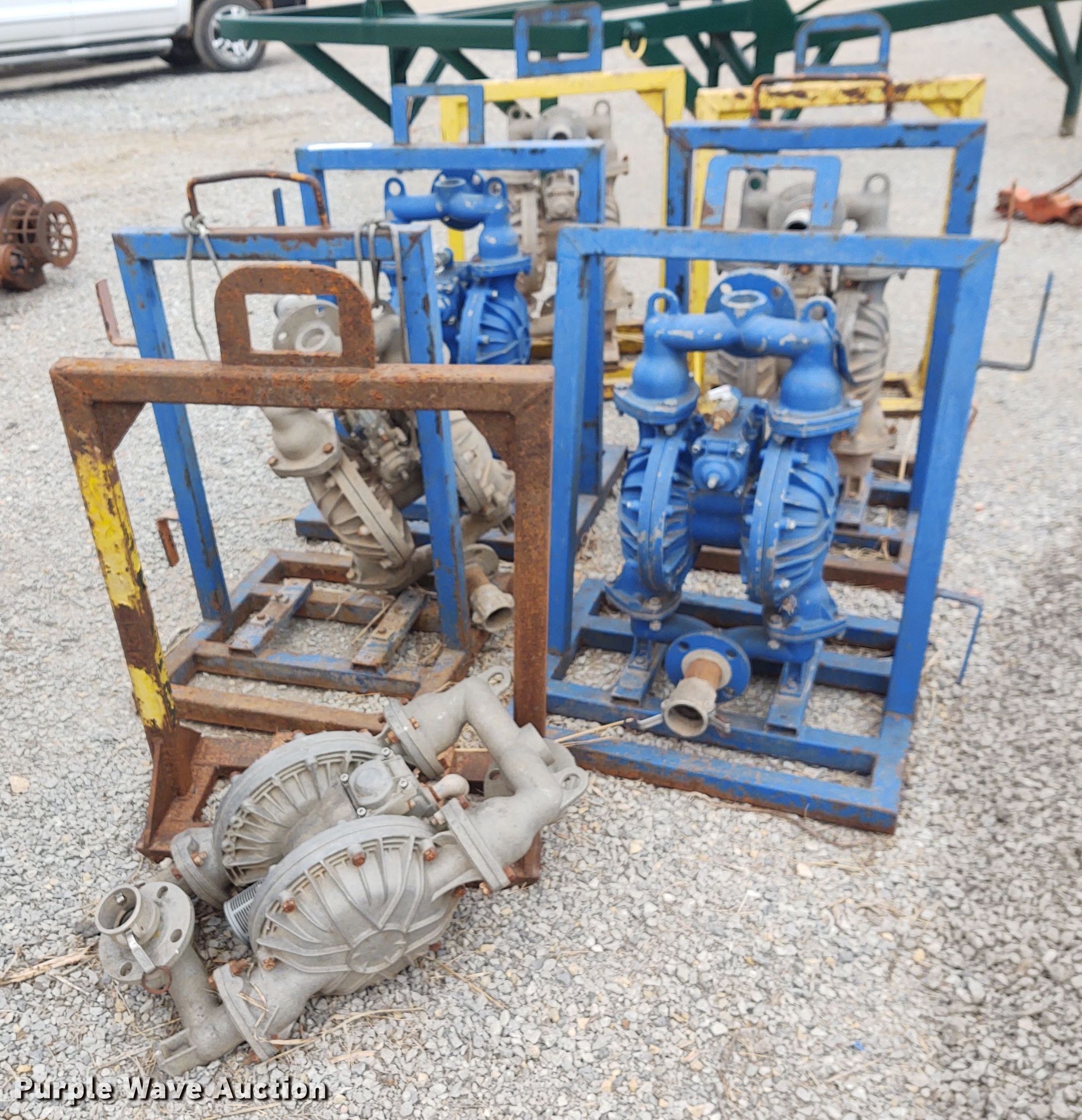 Purple Wave is selling a used Pump in Oklahoma. This item is a (7) Diaphragm pumps with the following: 2" diameter inlet/outlet