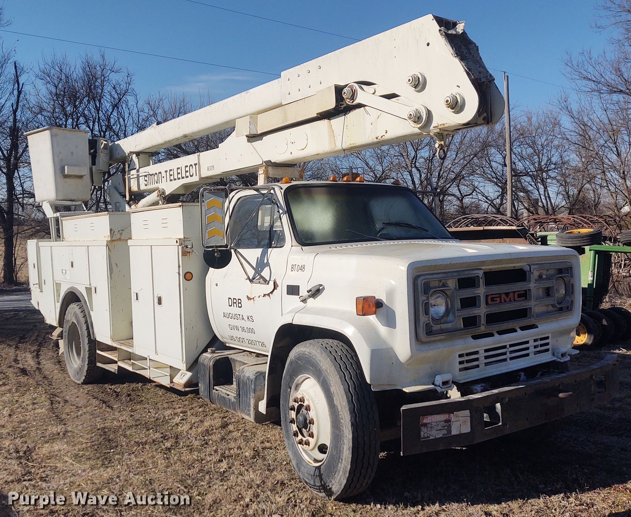 Purple Wave is selling a used Bucket Truck in Kansas. This item is a 1988 GMC TopKick bucket truck with the following: 103,436 miles on odometer