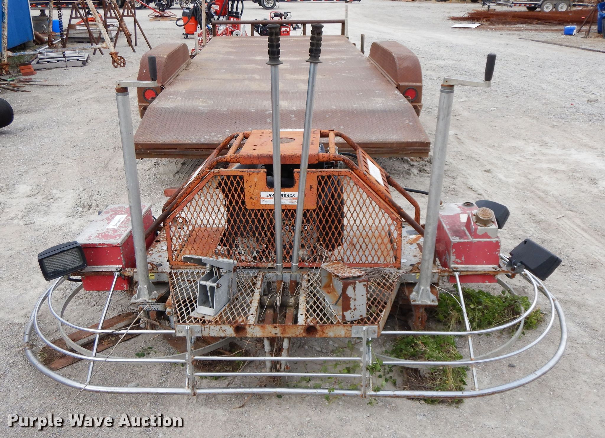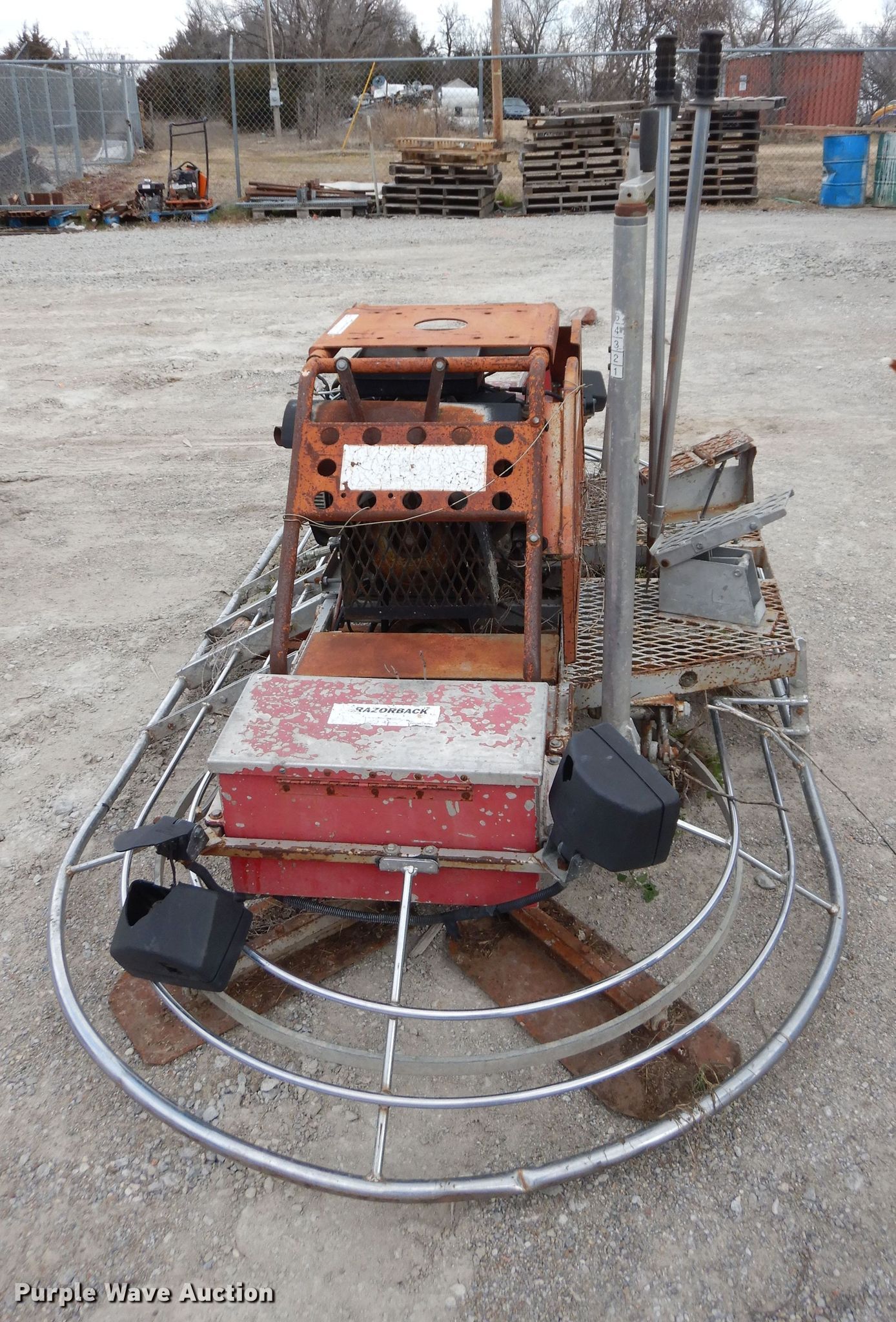Purple Wave is selling a used Concrete Equip. or Acces. in Oklahoma. This item is a Razorback power trowel with the following: Onan Performer 20 782cc gas engine, Model P220G/11126G, 8'W, Non-operational unit