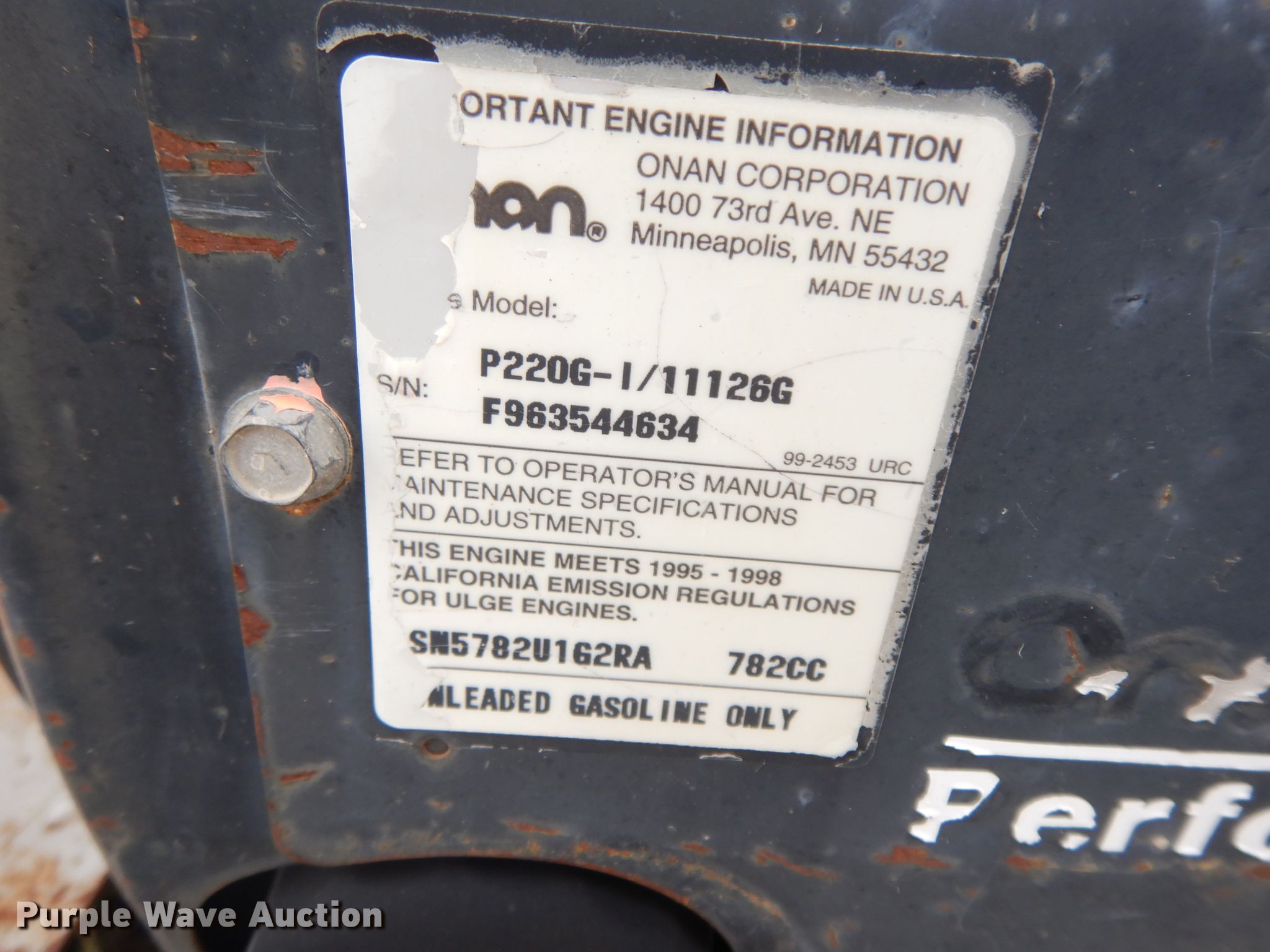 - Onan Performer 20 782cc gas engine