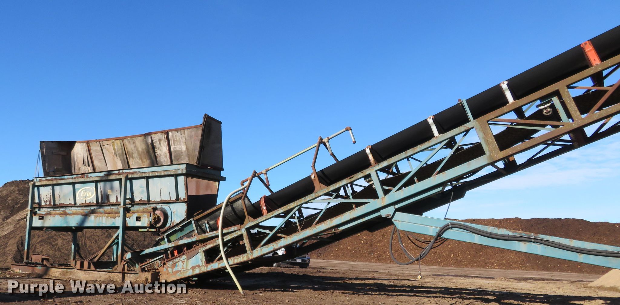 Erin radial stacking conveyor. 51,230 hours on meter, Serial: 00-066. Engine Caterpillar, Cylinders: 4, Fuel type: Diesel. Operational Conveyor Length: 80', Width: 46", Hydraulic lift, Erin input hopper Length: 20', Width: 50", Serial: 00-082, Erin hydraulic power pack Serial: 00-066. Tires Tire size: 11R22.5. Notes Unknown operating condition. St. Louis Composting. Florissant, MO 63034