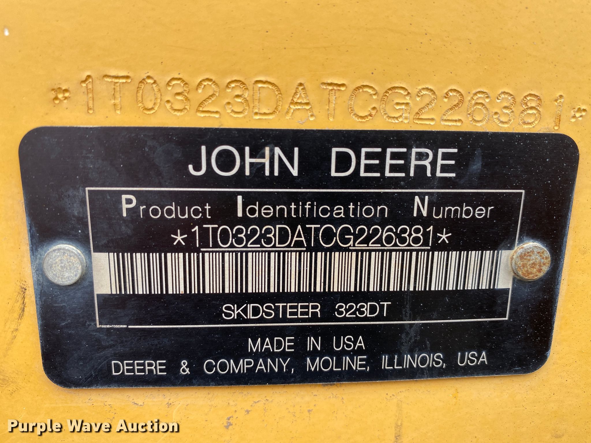 Purple Wave is selling a used Tracked Skid Steer Loader in Missouri. This item is a 2012 John Deere 323DT tracked skid steer loader with the following: 2,312 hours on meter, Serial: 1T0323DATCG226381