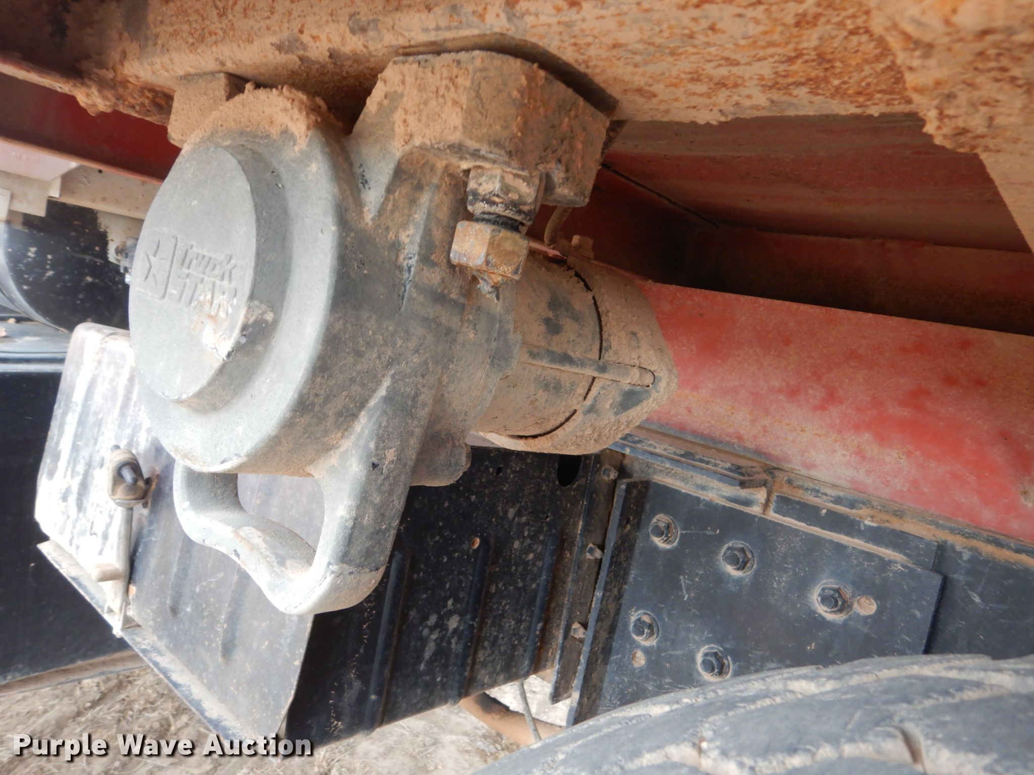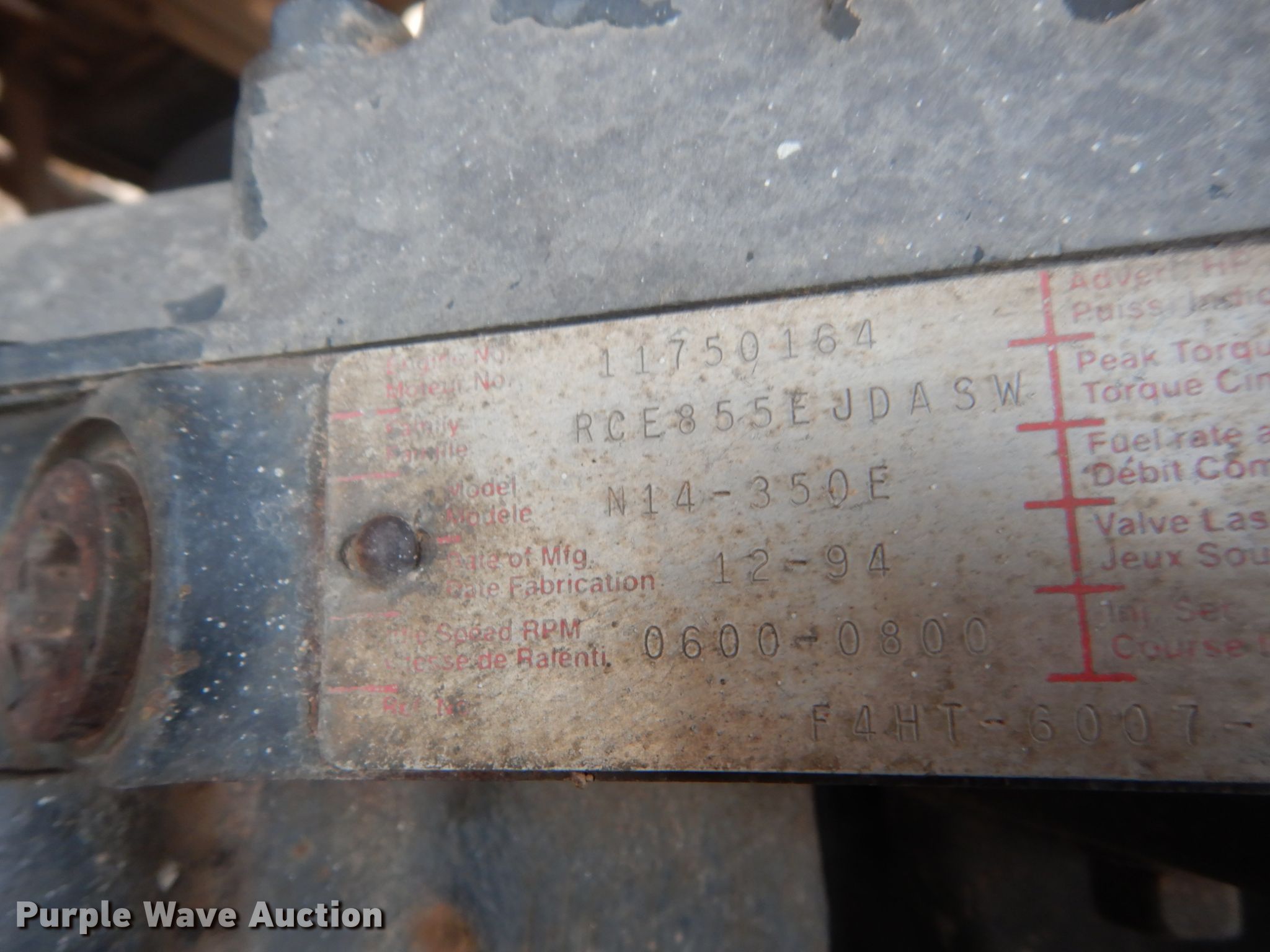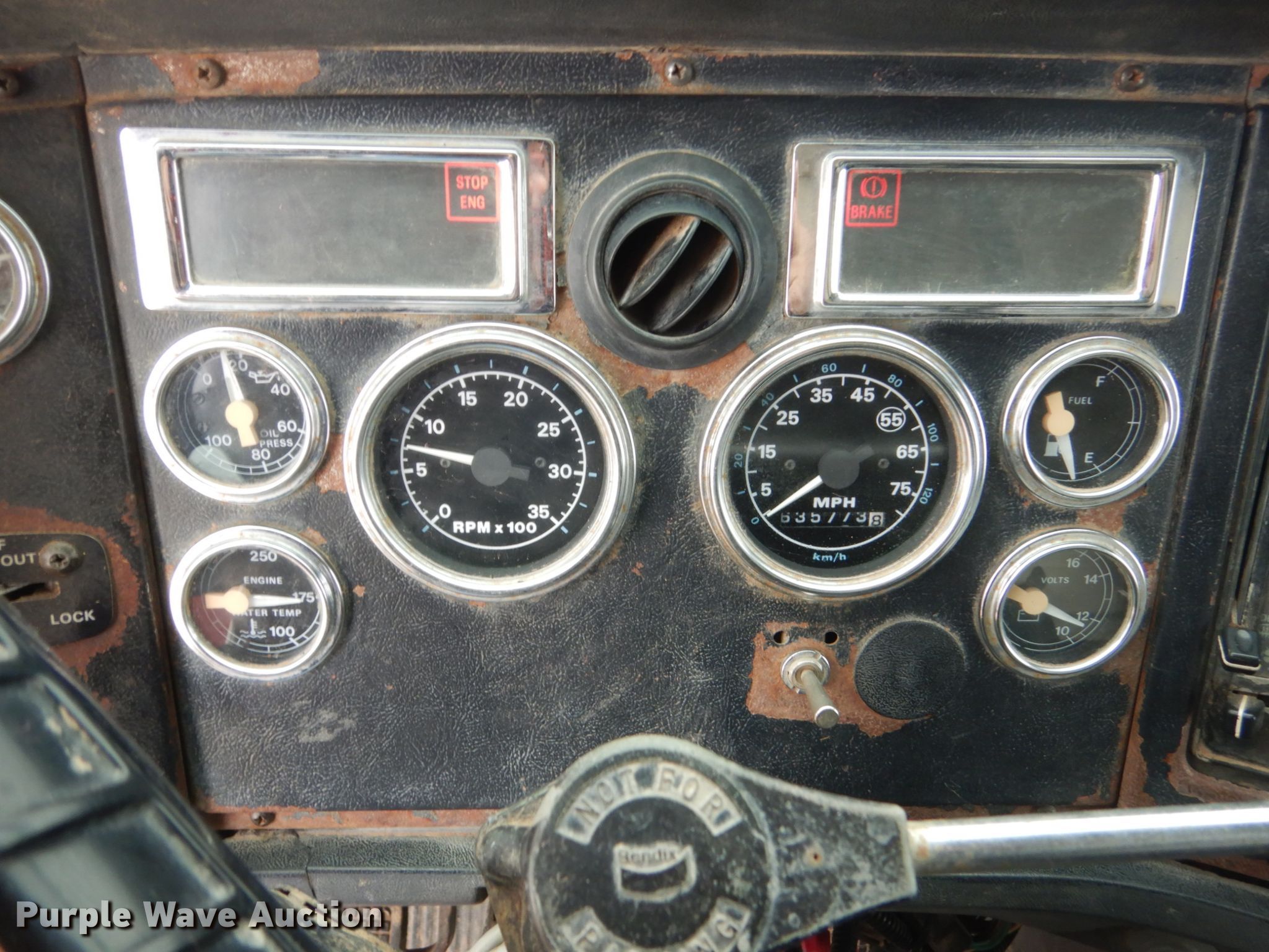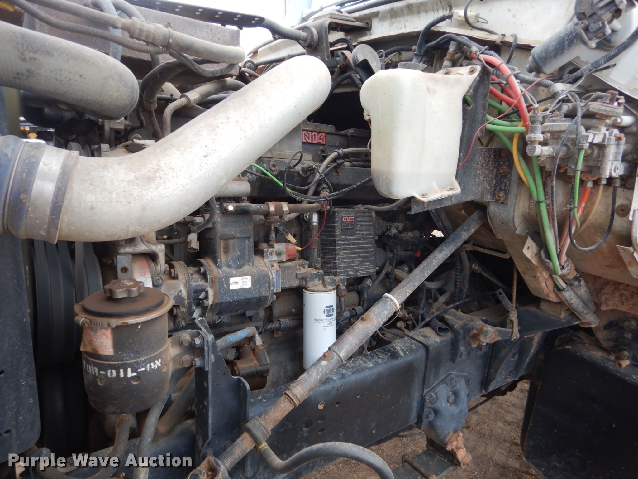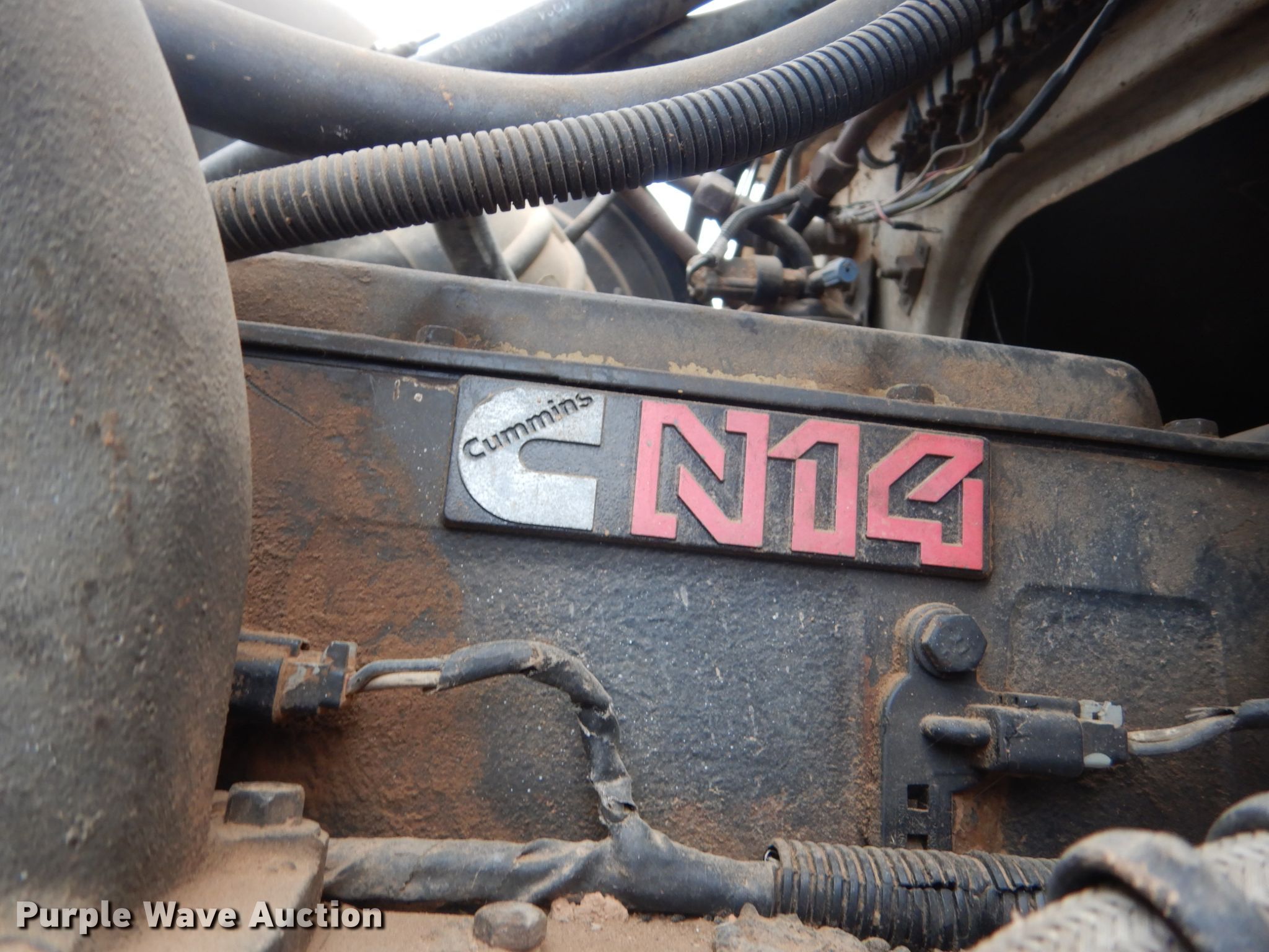 1995 Ford LT9000 dump truck. 635,774 miles on odometer. Engine Cummins N14-350E, Displacement: 14.0L L6, Cylinders: 6, Fuel type: Diesel. Transmission Rockwell, Manual, Speed: 10. Chassis Axles: Triple, Pusher axle, Differential lock: Inter-axle, Suspension: Spring over walking beam, Brakes: Air, PTO, GVWR: 52,000 lbs FAWR: 12,000 lbs, IAWR: 20,000 lbs, RAWR: 20,000 lbs, Wheelbase: 162". Interior AC, Heat. Operational Dump bed 15.6' L x 96" W, Side height: 47", Side board height: 12", Bed type: Steel, Bed vibrator, Ram: Single , End gate: Air operated. Tires Front: 11R22.5, Pusher: 275/80R22.5, Rear: 11R22.5. Notes Dash warning indicator: Check engine, Windshield chipped or cracked. South Dakota title. 1FTYU90U9SVA44065. Young Gun Construction. 10544 Tufte Rd. Ludlow, SD 57755
