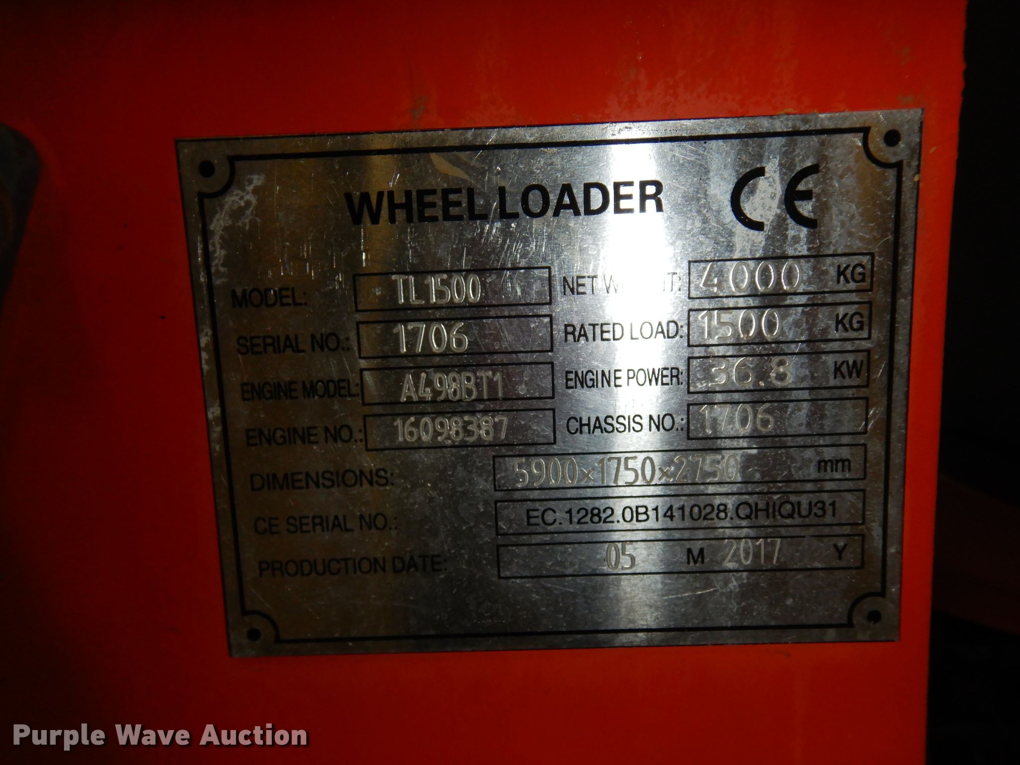 Purple Wave is selling a used Wheel Loader in Colorado. This item is a 2017 Tuff TL1500 wheel loader with the following: 223 hours on meter, Serial: 1706