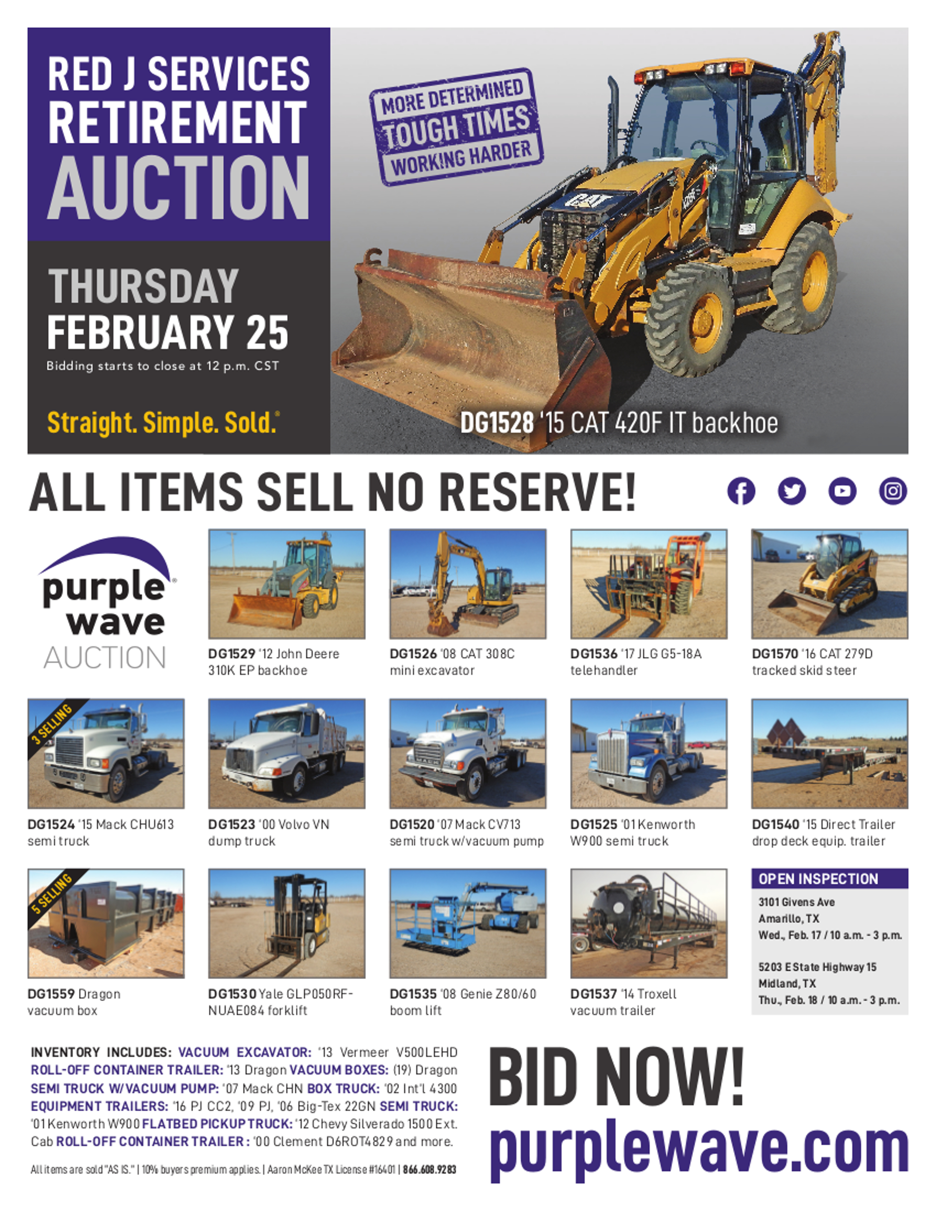 SOLD! Red J Services Retirement Auction | 2-25-2021