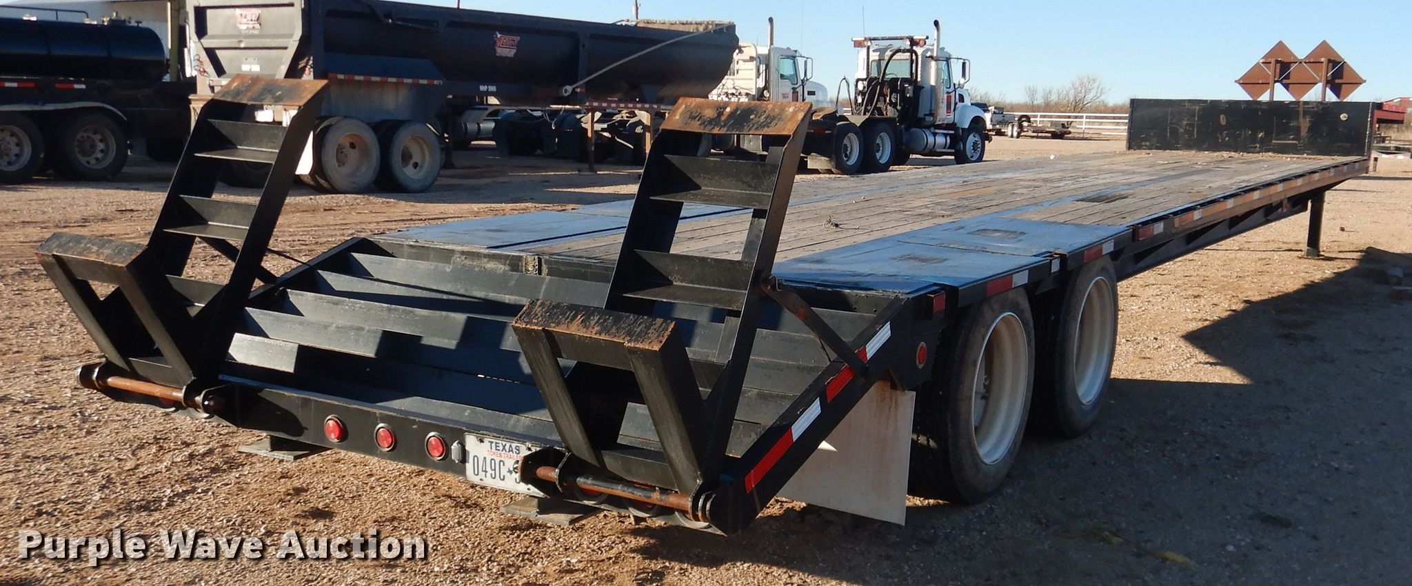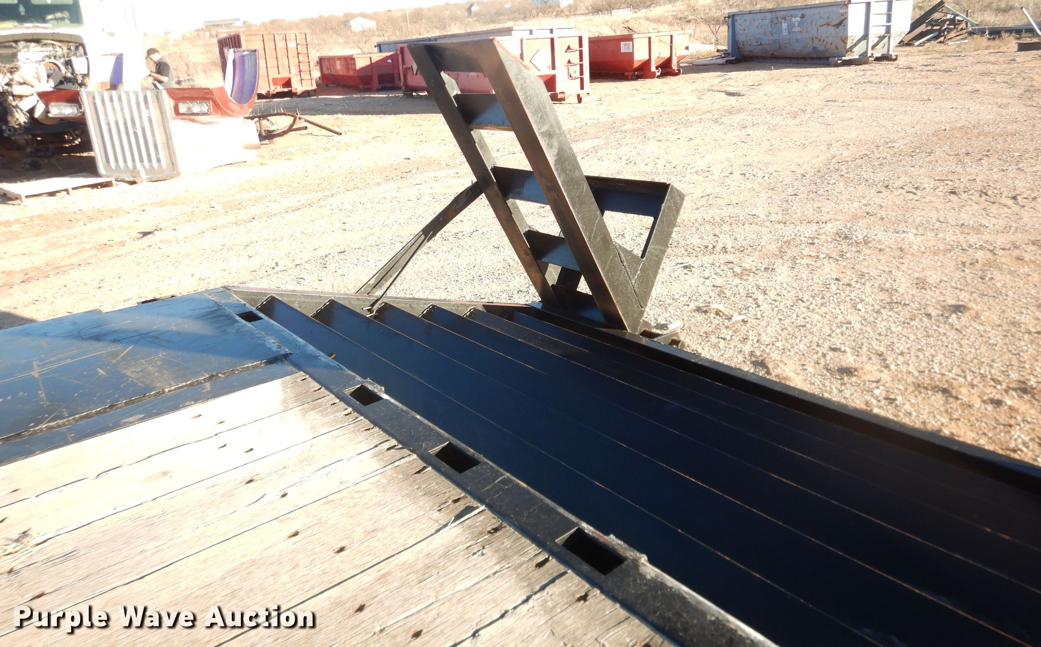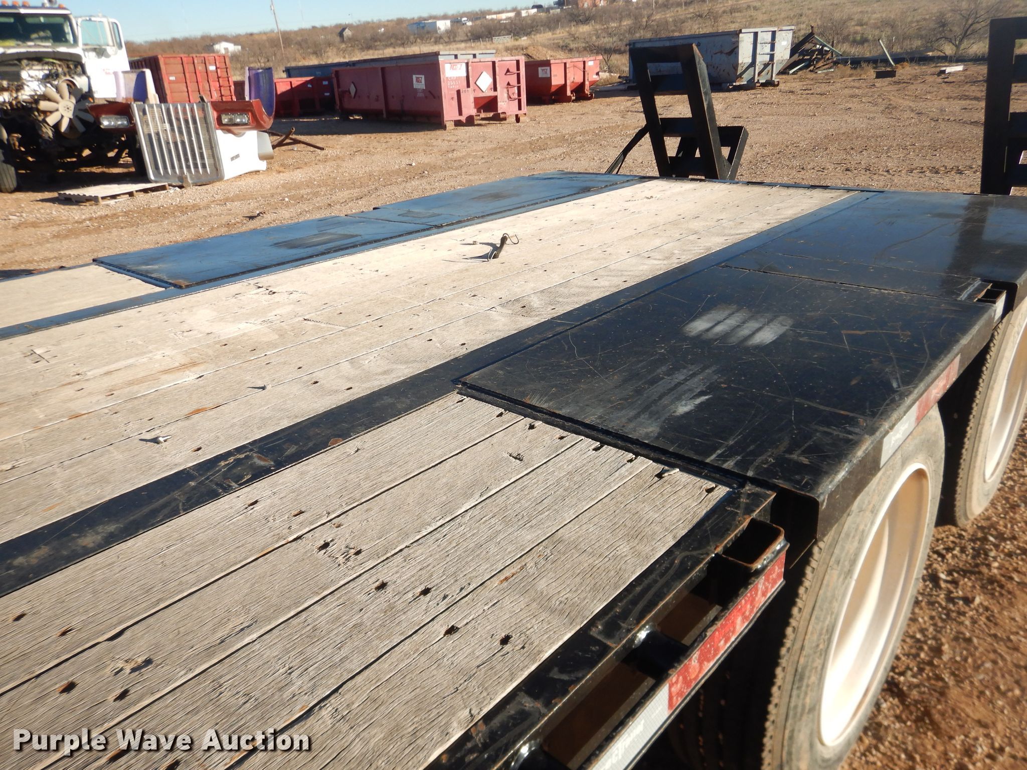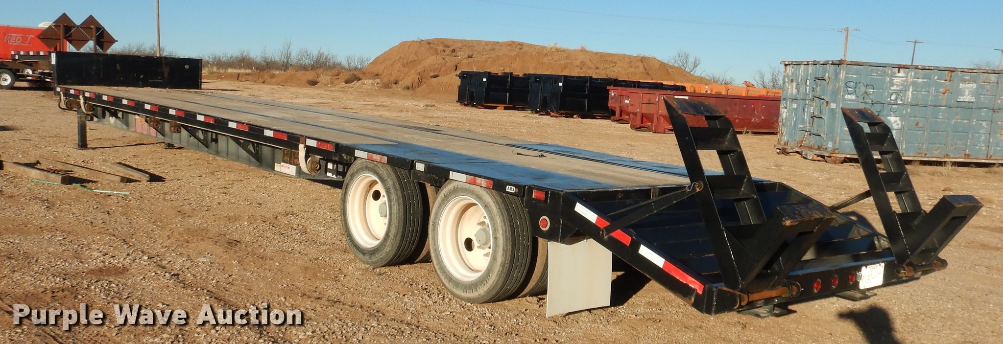 2015 Direct Trailer DT48SLDTCRA drop deck equipment trailer. 48'L x 102"W overall, 9.5'L top deck, 38'L x 97.5"W wood deck, 42" floor height, 4' tail length, 4'L ramps, Dual leg landing gear, Air suspension, Air brakes, Tandem axle, Steel wheels, 255/70R22.5 tires, GVWR 70,852 lbs, GAWR 20,000 lbs. Texas title. 5UJDS4824FE002413. Red J Services LLC - Open inspection Feb. 17 and Feb. 18. 3101 Givens Ave. Amarillo, TX 79108